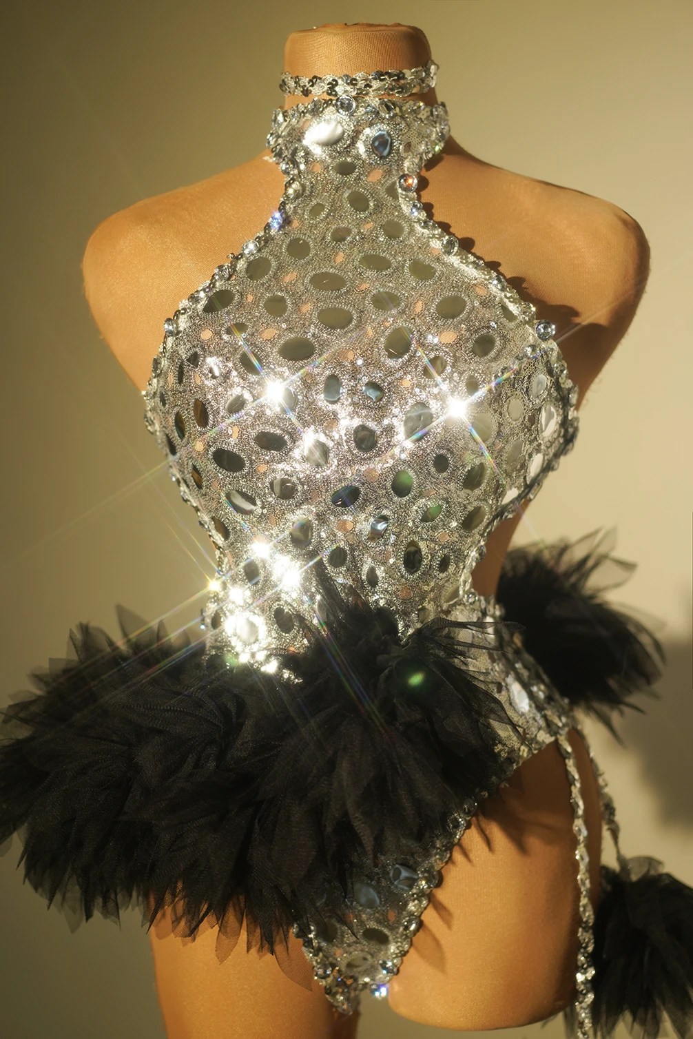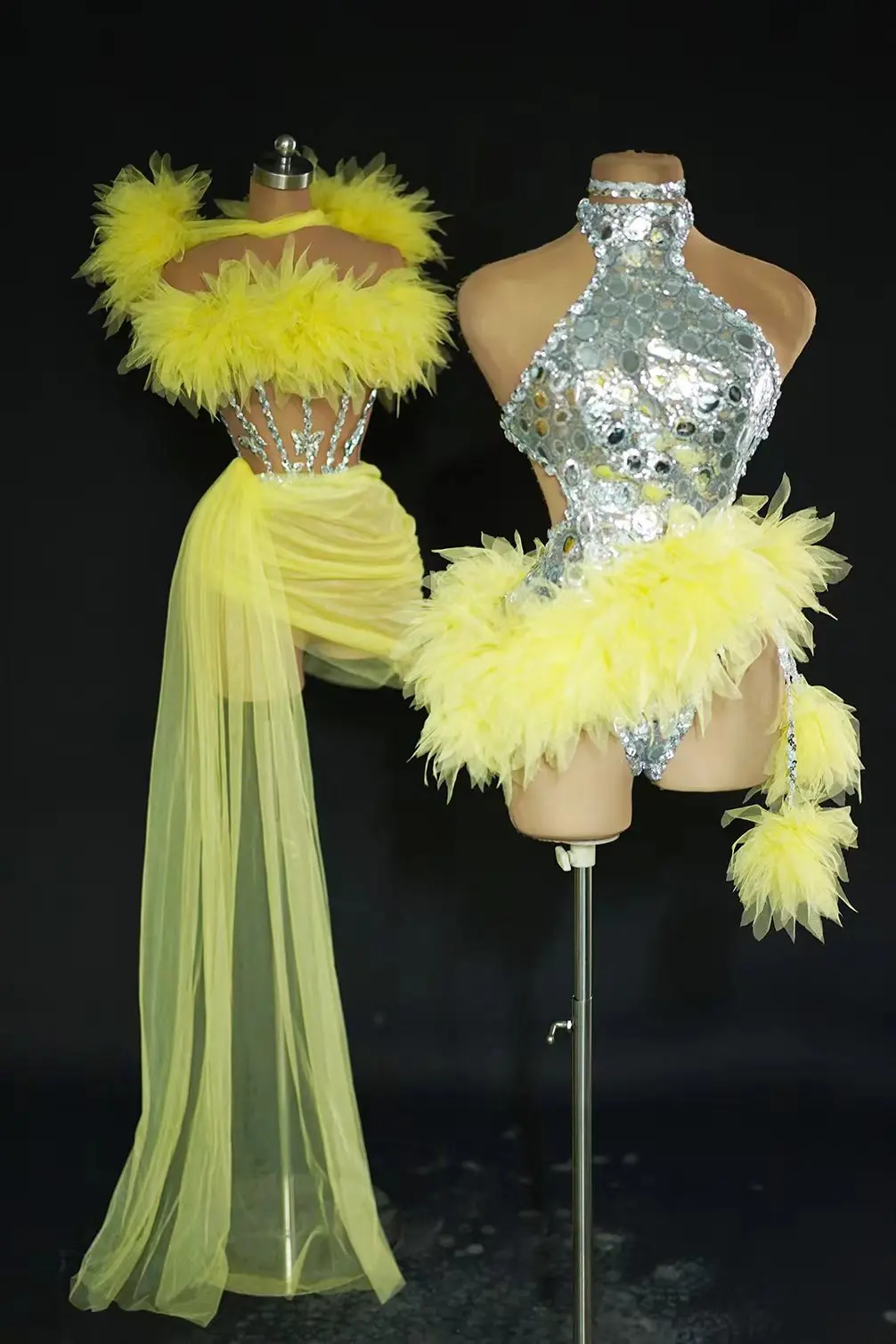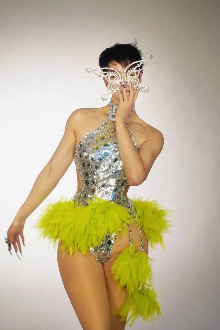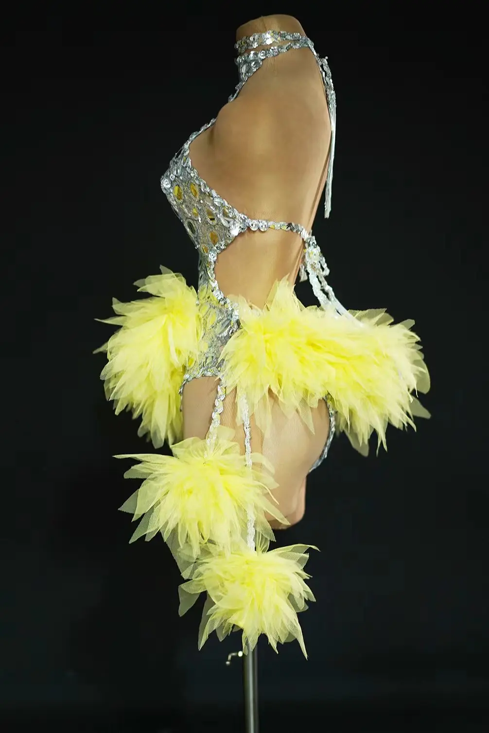 Sequins Bodysuit Nightclub Bar Outfit Dancer Show Stage Wear Sexy Halter Backless Performance Dance Costume for Women Yuanjing
