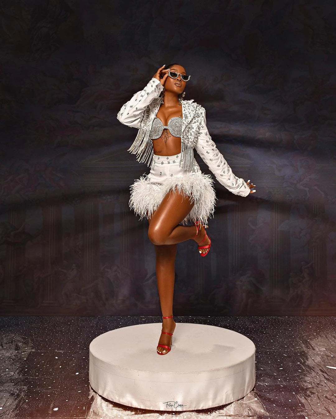 Turn heads at your next event with our Sexy 2 Pieces Mini Skirt Dress, designed for the bold and stylish woman. This exquisite set features a stunning top adorned with shimmering beads and sparkling crystals, complemented by playful feather details for a touch of glamour. The mini skirt adds a flirty flair, making it perfect for parties, proms, or any special occasion. Custom-made for a perfect fit, this modern suit set combines elegance and confidence, ensuring you stand out in any crowd.