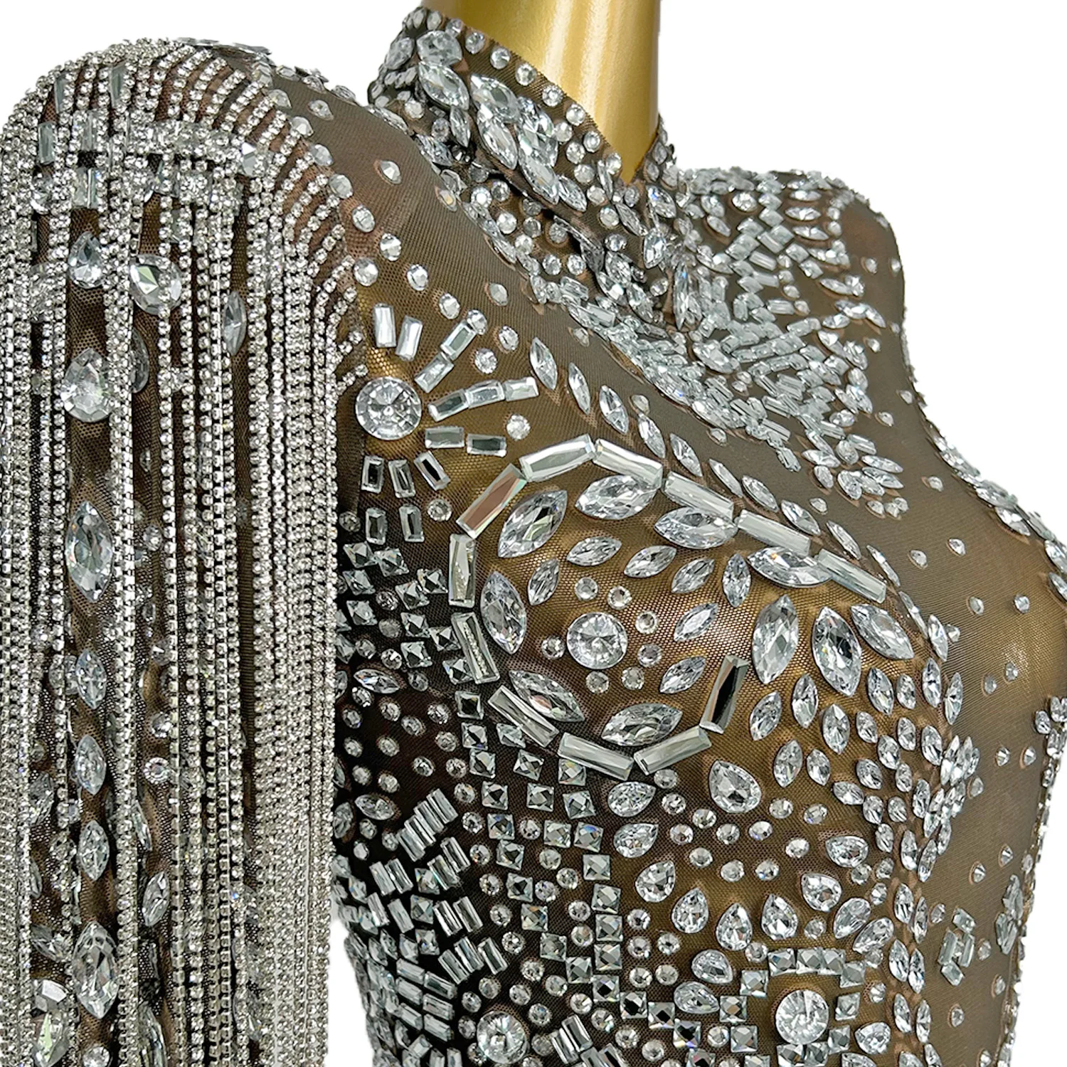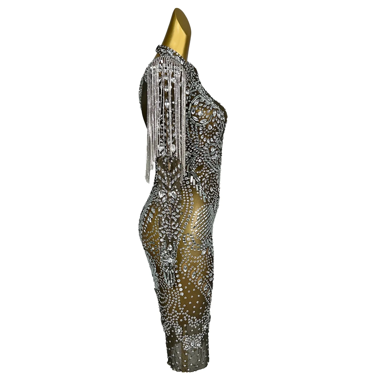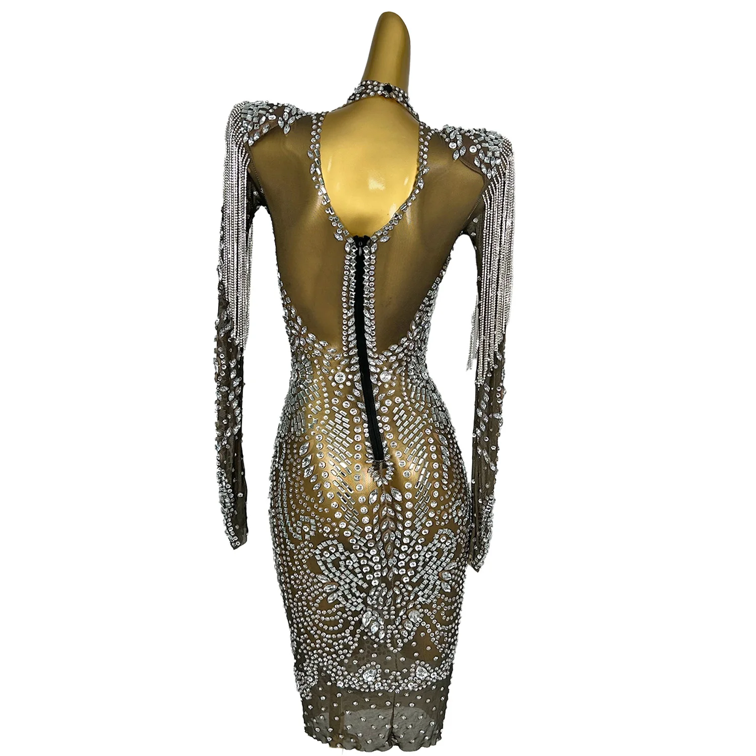 Sexy Black See Thru Rhinestone Prom Dress for Blackgirls Dress Party Birthday Elegant Celebrity Formal Illusion Dresses Piaochong