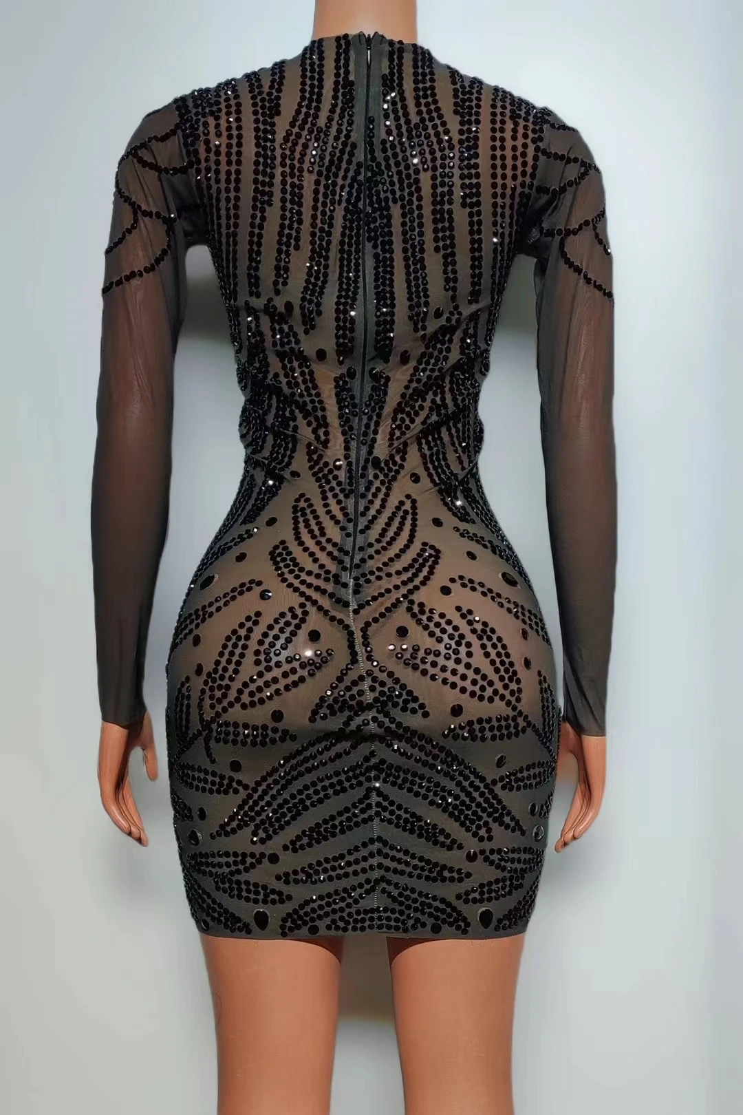 Sexy Black Sparkling Mesh Thin Mysterious Dress for Women Weddings Dances Birthdays Party Nightclubs Stage Short Dress Heihu
