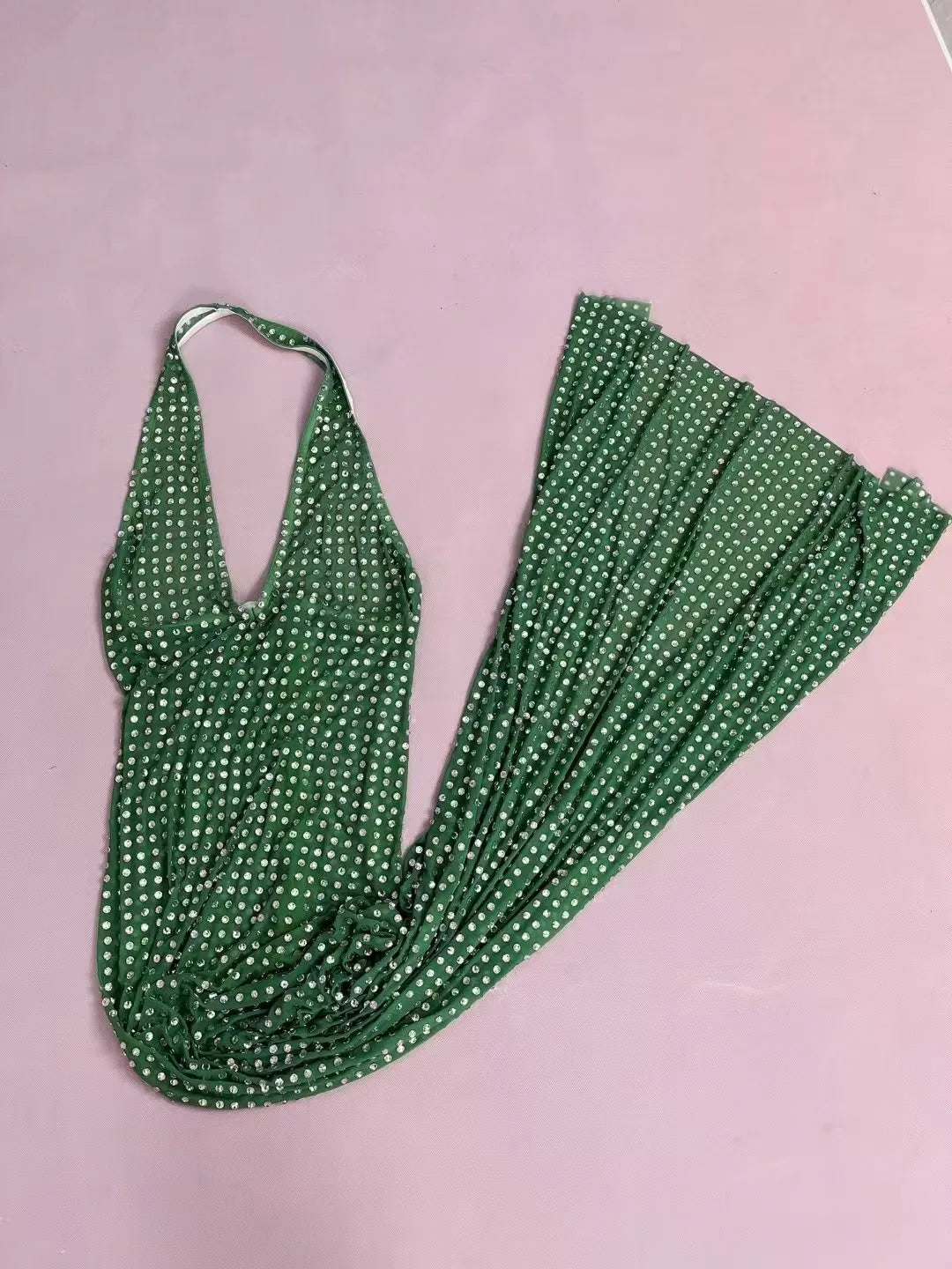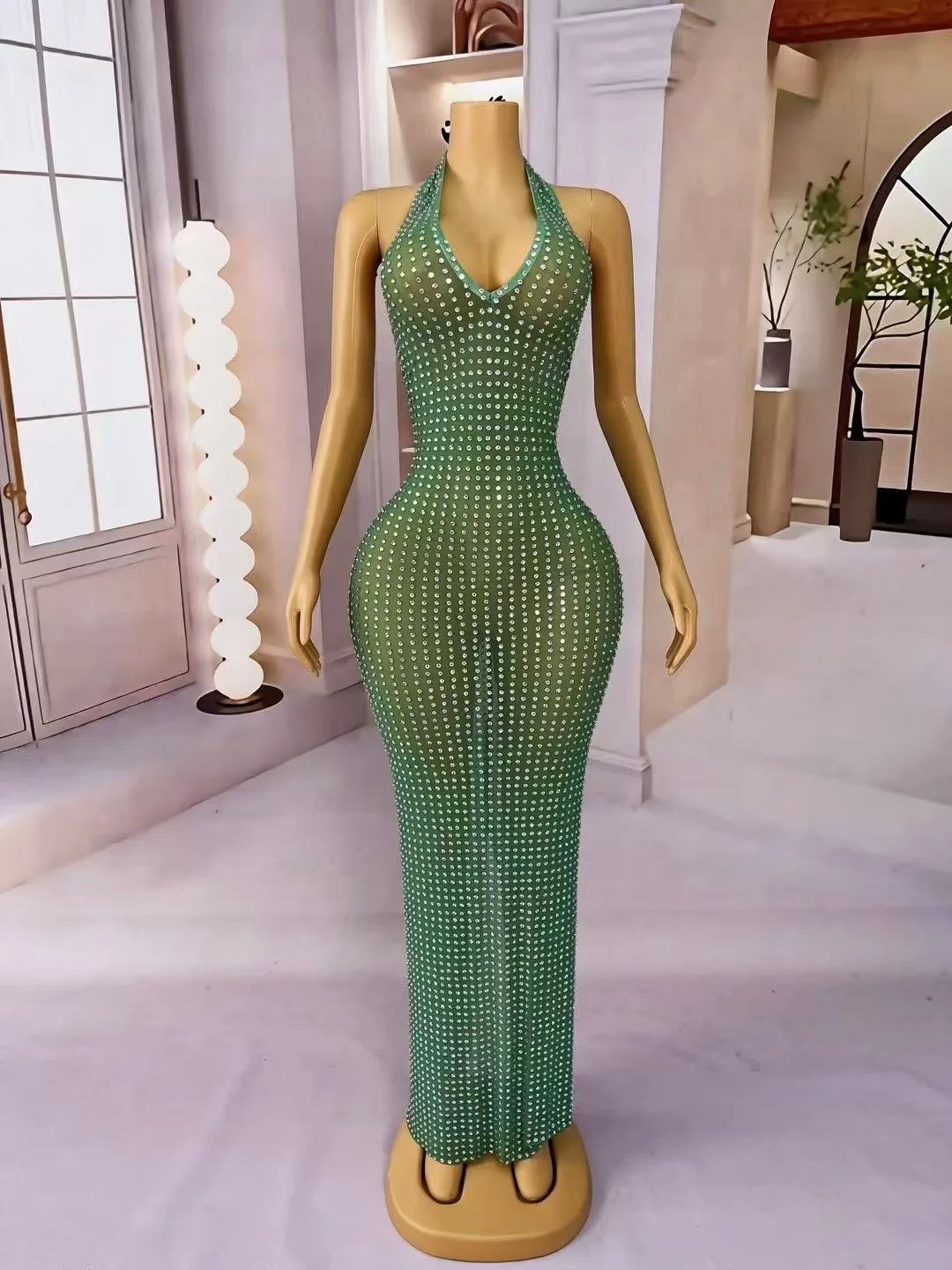 Turn heads and steal the spotlight with this Sexy Blingbling Rhinestones Halterneck Gown — a dazzling statement piece designed for women who want to shine at evening events, proms, parties, stage performances, and photoshoots. The gown features a sultry V-neckline that flatters the décolletage while an elegant halterneck strap supports the bodice and frames the shoulders. Fully backless, the dress reveals a dramatic sweep of skin that pairs perfectly with minimalist jewelry and an updo hairstyle, creating a bold, sensual silhouette that photographs beautifully