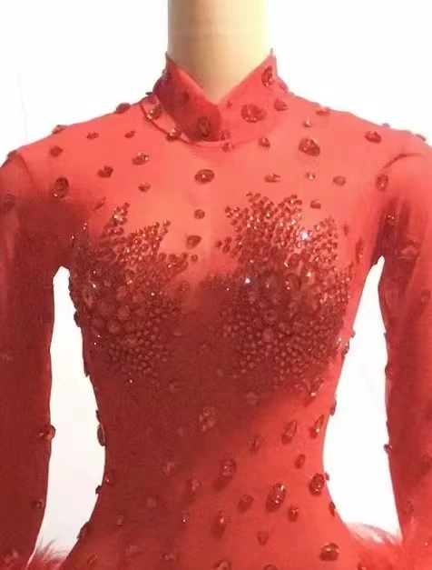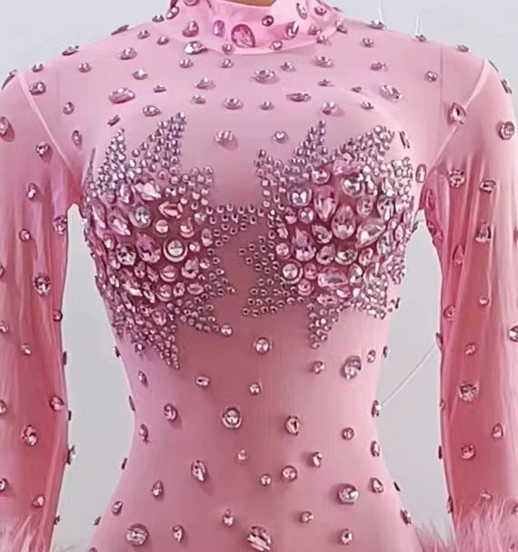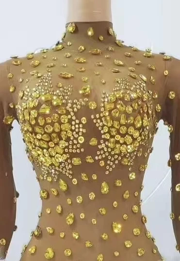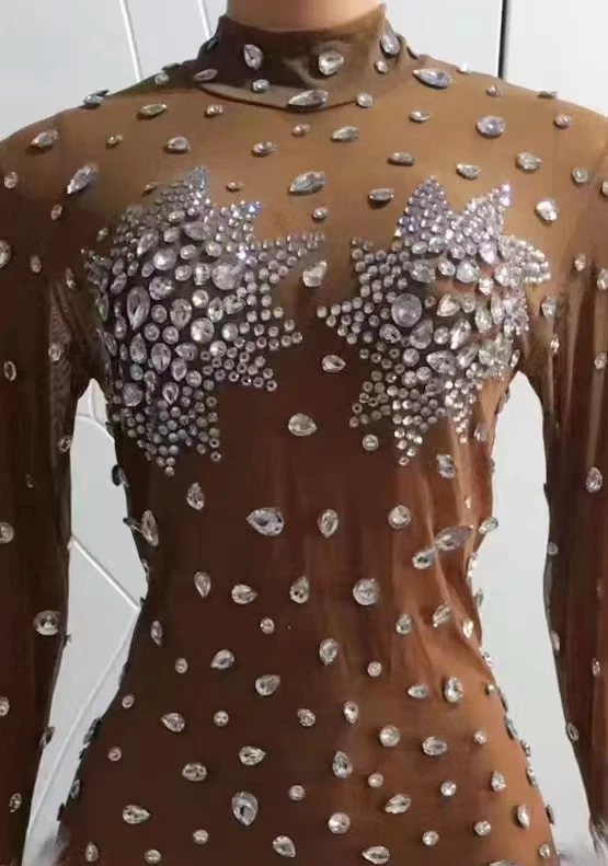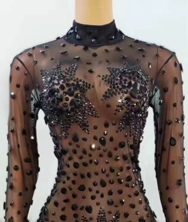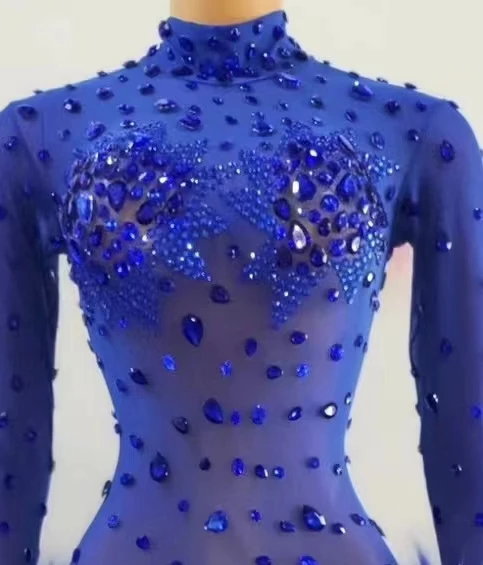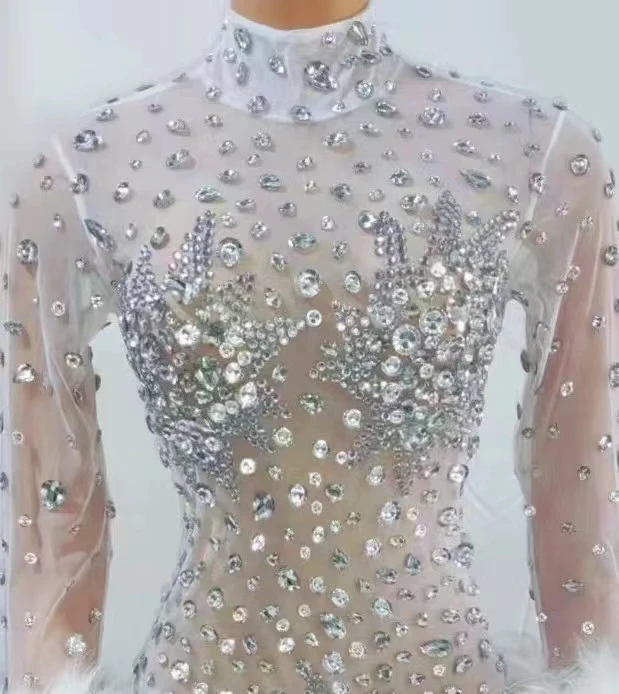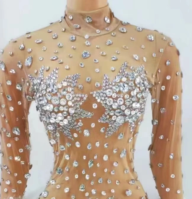 Sexy Crystal Slim Fit Dress Stage Performance Shinny Rhinestones Dress Women Evening Birthday Celebrate Party Outfit Guibin