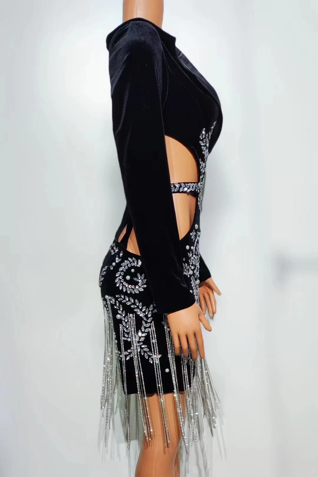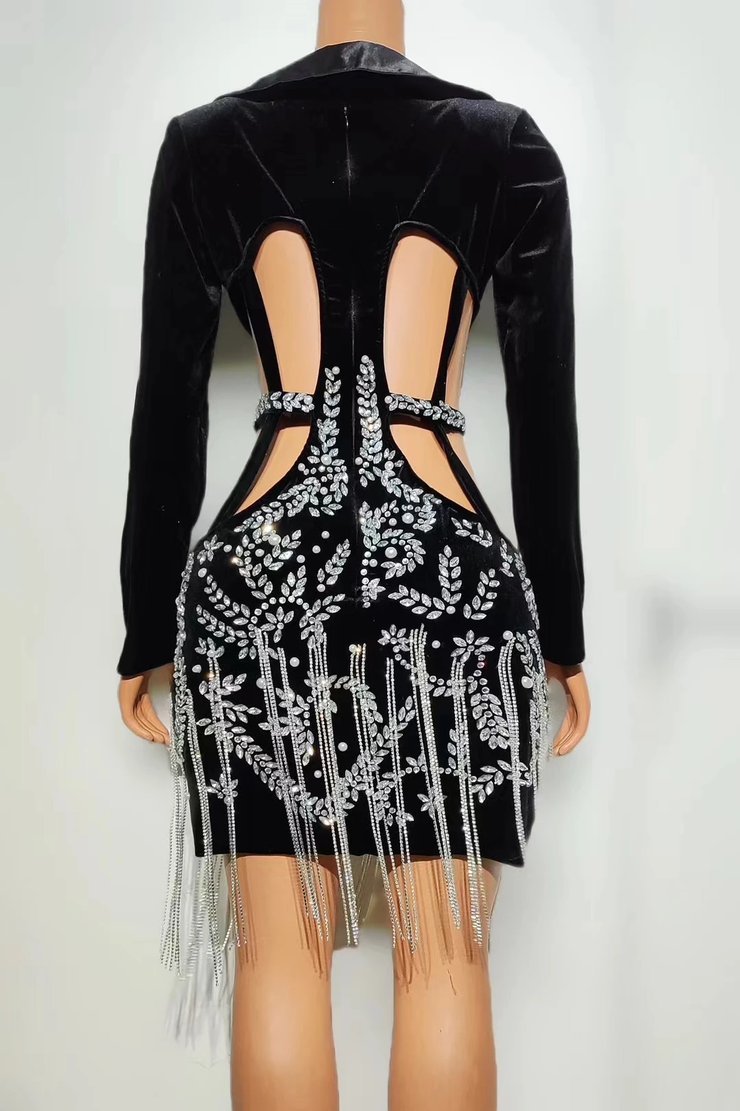 Sexy Crystal Suit Jacket Stage Performance Wear Formal Club Mini Dress Evening Party Blazer Coats Women Blazer Dress Shangguhei