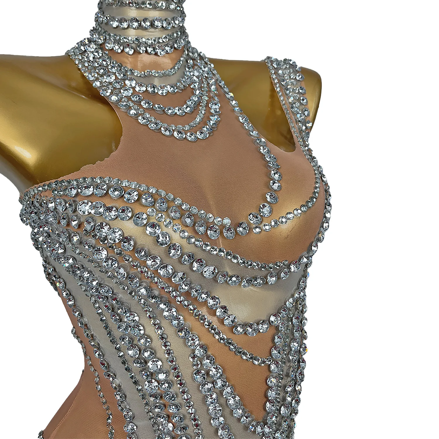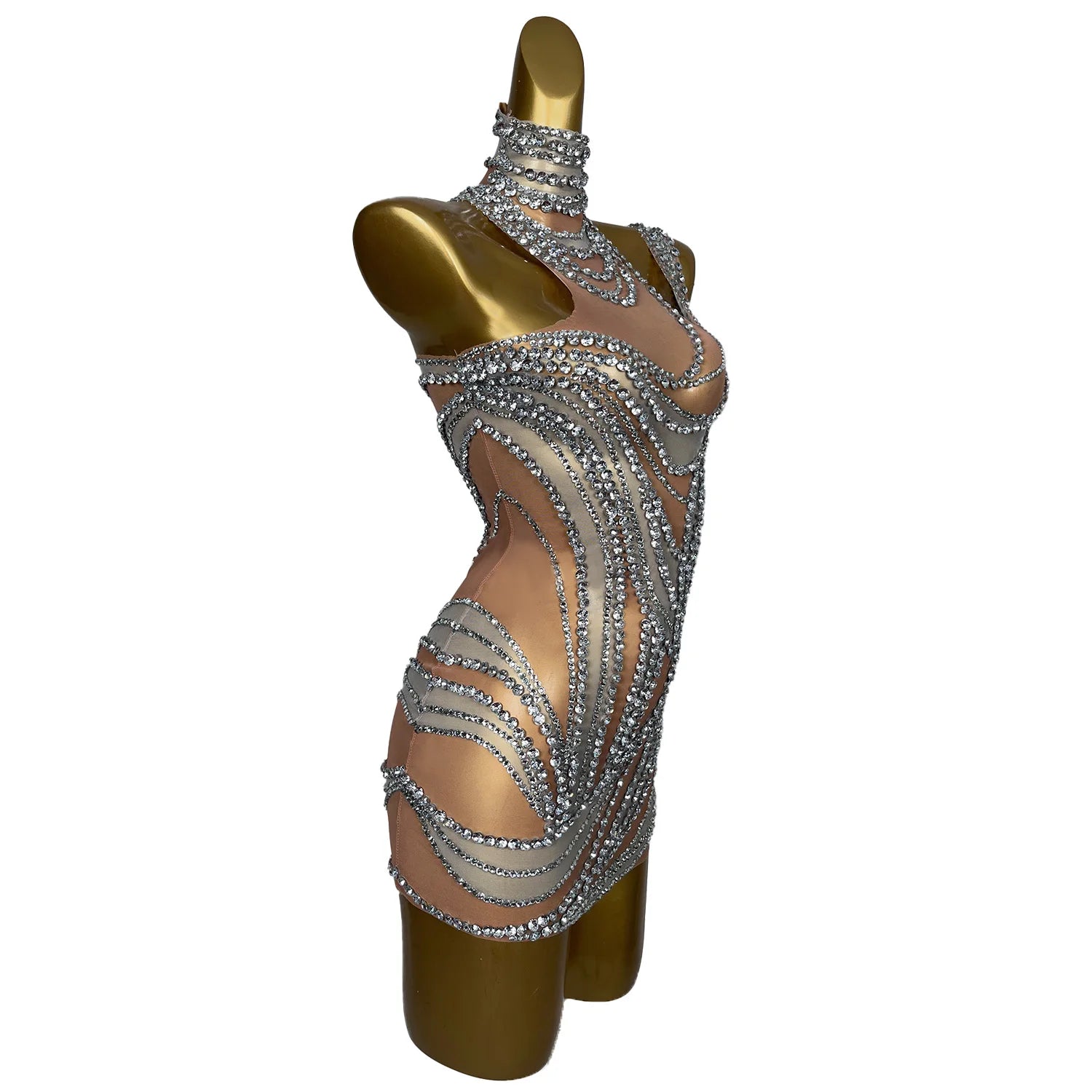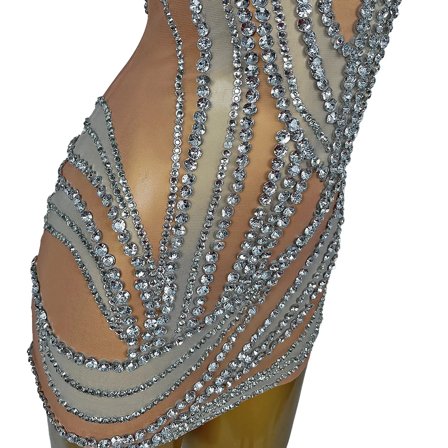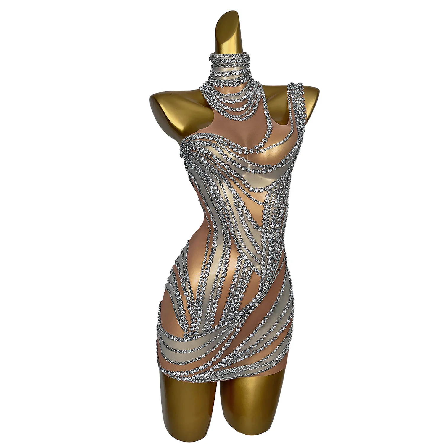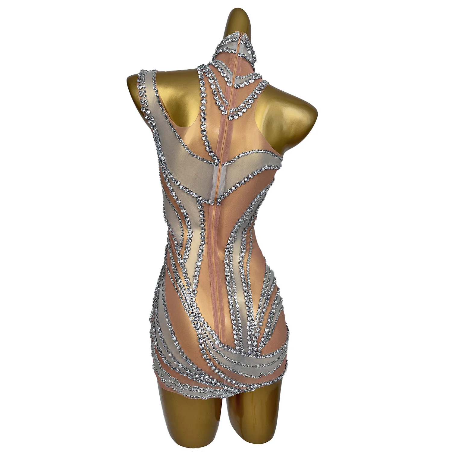 Sexy Crystals Skirts Lady Backless Rhinestone Outfit Party Celebration Mini Dress Evening Prom Dress Stage Show Wear Liuzhuan