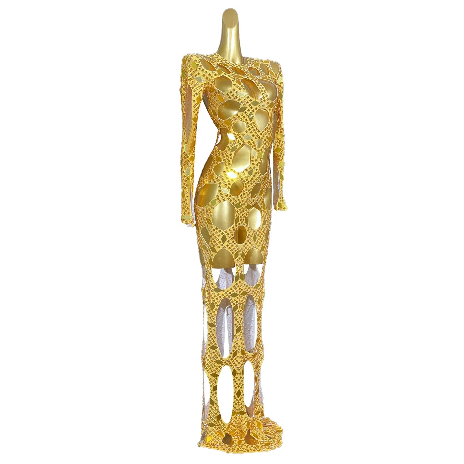 Sexy Enchant Hollow Out Rhinestones Long Dress Birthday Prom Shining Sequins Dinner Celebrate Gowns Lady Princess Dress