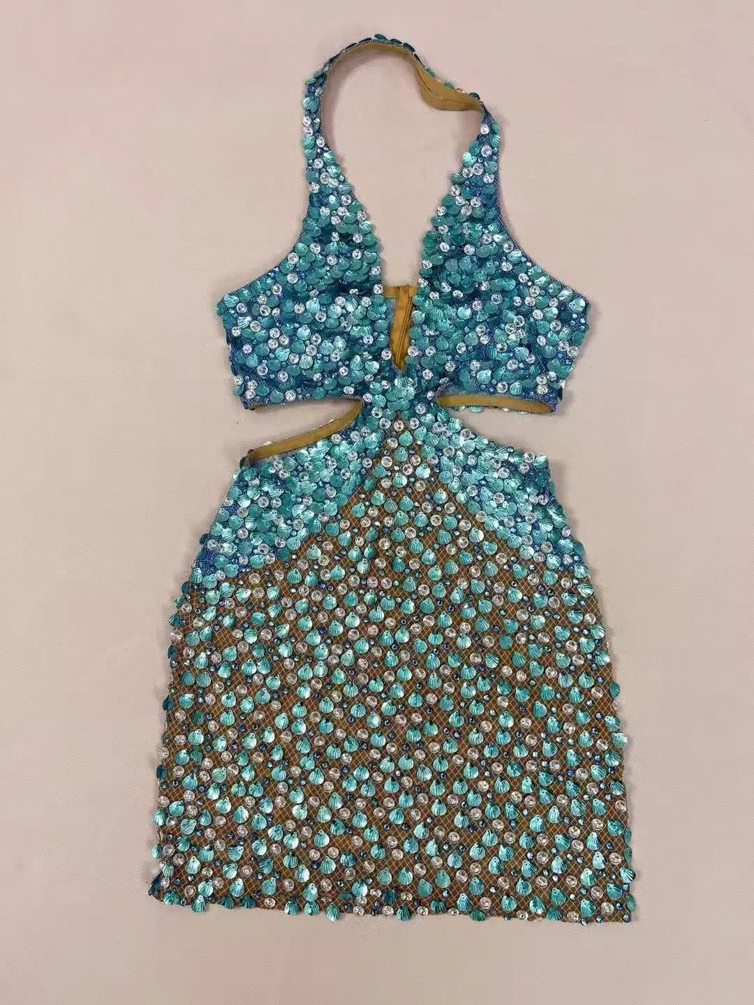 Make a dramatic, ocean-inspired entrance with this Sexy Flashing Seashell Sequins Rhinestones Halterneck Backless Dress 鈥?a dazzling gown designed to shimmer under stage lights, camera flashes, and club spotlights. Combining mermaid motifs with high-fashion construction, this dress is perfect for evening events, birthday celebrations, performances, photoshoots, and any occasion where you want to be the center of attention.