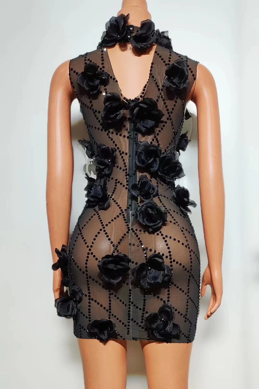 Sexy Flower Dress Sleeveless Side Hollow Slimming Fit Short Skirt Wedding Prom Gown Women Birthday Dresses Photograph Wear Huahai