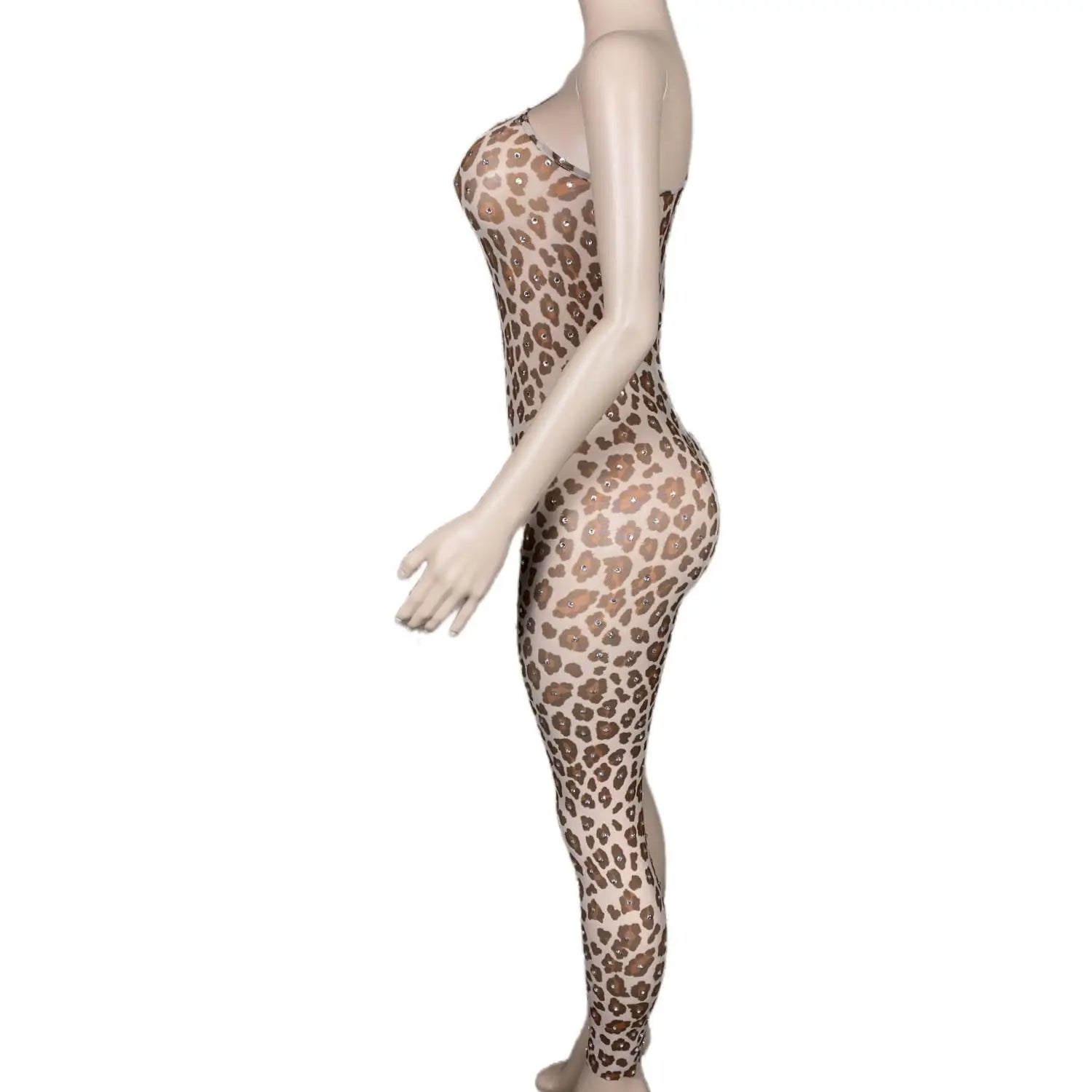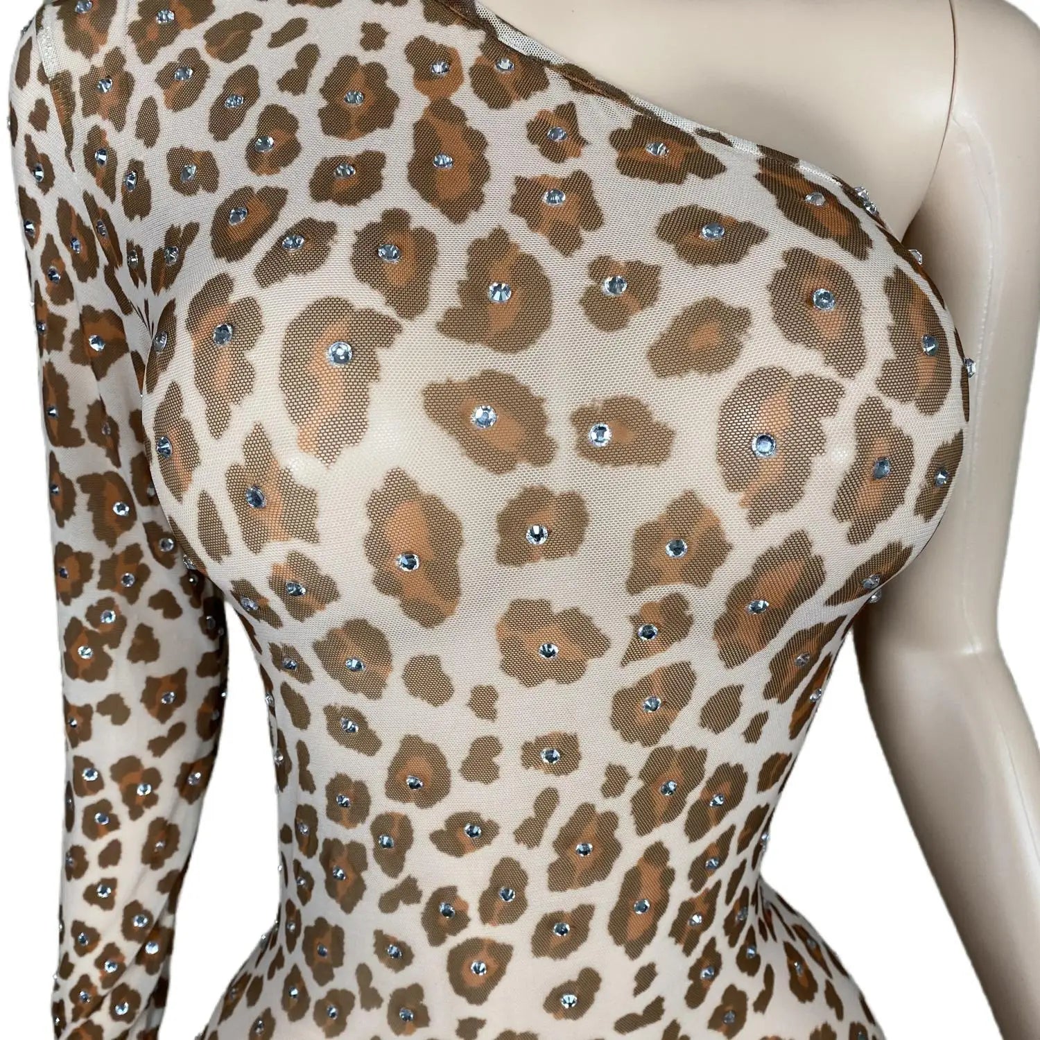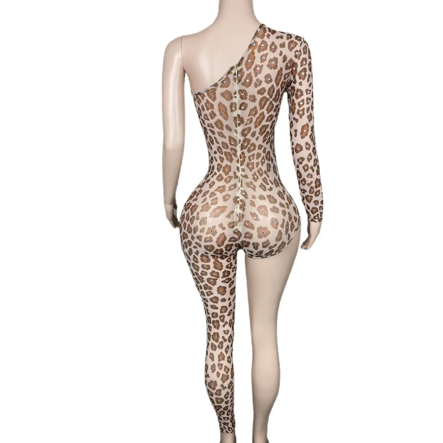 Sexy Leopard Print Jumpsuit Women Unilateral design Performance Costume Party Nightclub Party Outfit Dancer Stage Wear