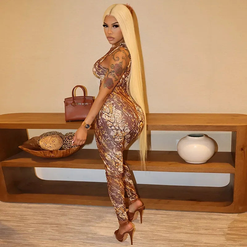 Command attention with this sexy leopard print one-piece jumpsuit for women. Featuring an elegant, bodycon fit, this luxurious romper is perfect for club nights and special occasions. The bold pattern combines with sleek tailoring to create a chic, confident look, making it an ideal choice for those who want a show-stopping, fashionable playsuit or bodysuit outfit.