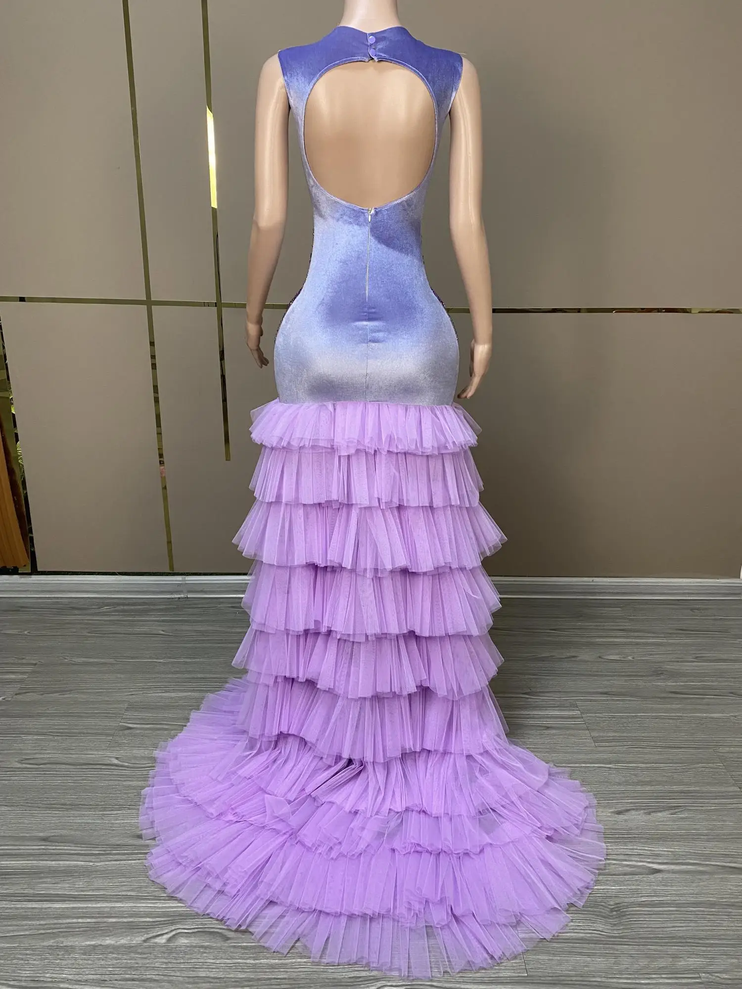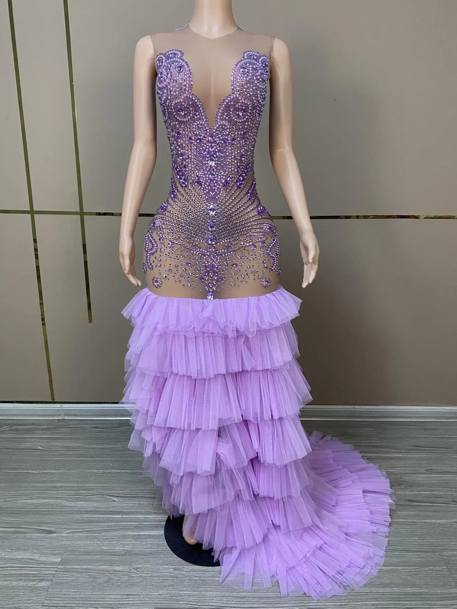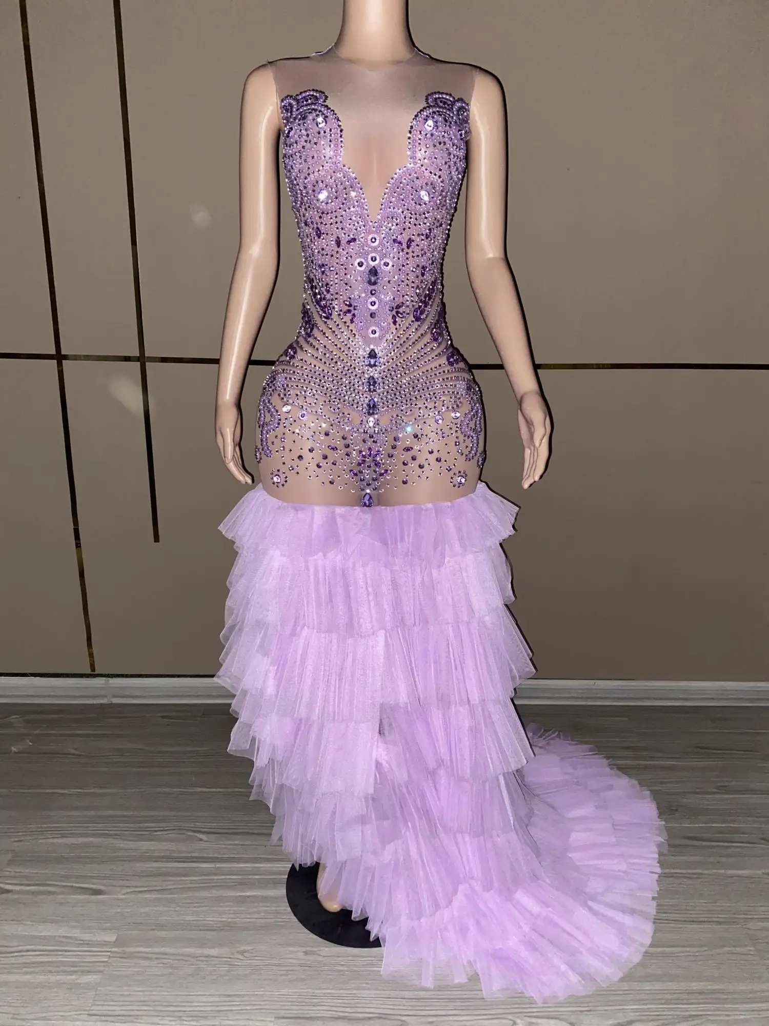 Sexy Long Sparkly Prom Dresses Sheer O-neck Luxury Purple Crystals Diamond Sequin Mermaid Black Girl Prom Party Gowns Ziluolan