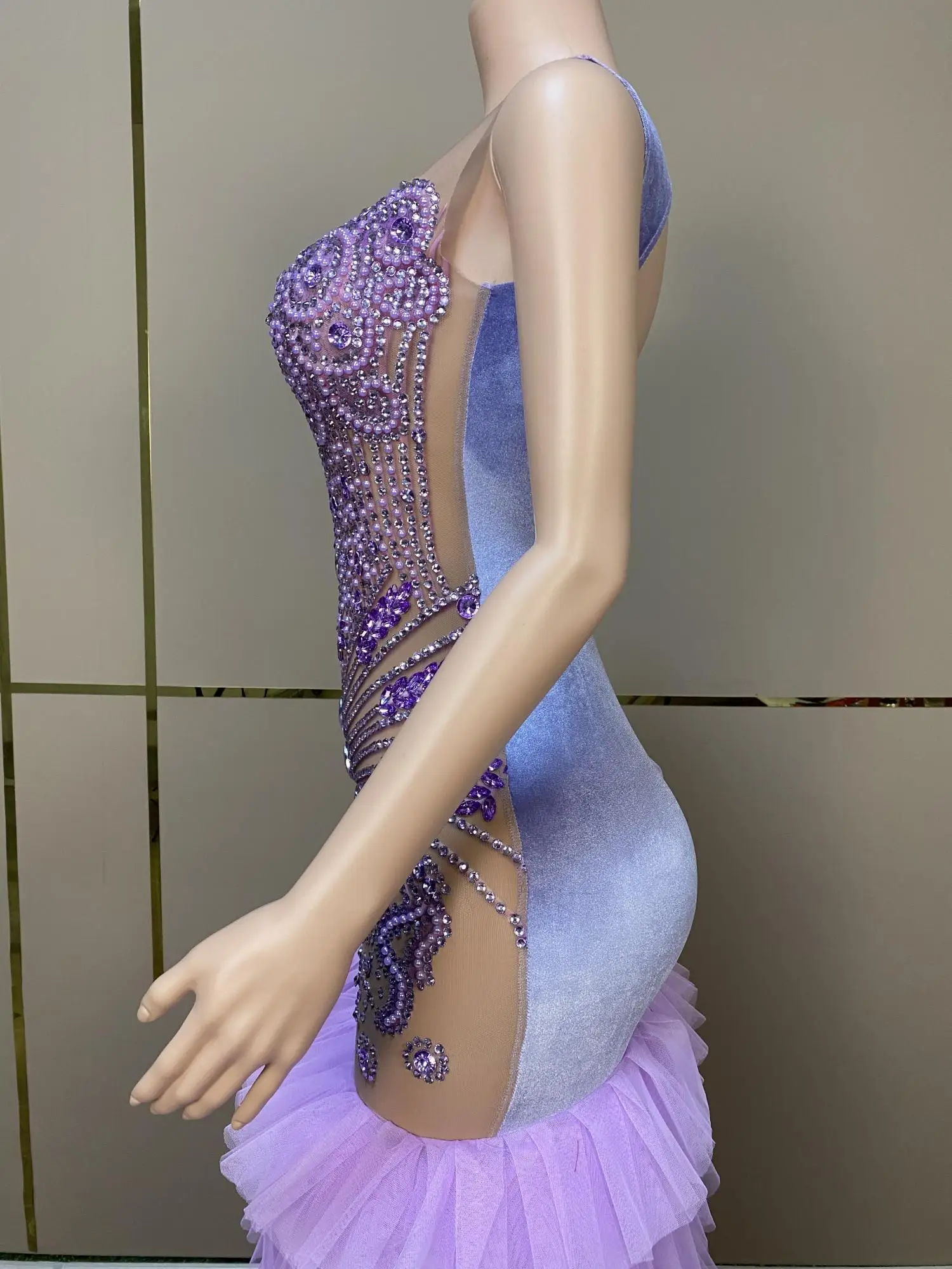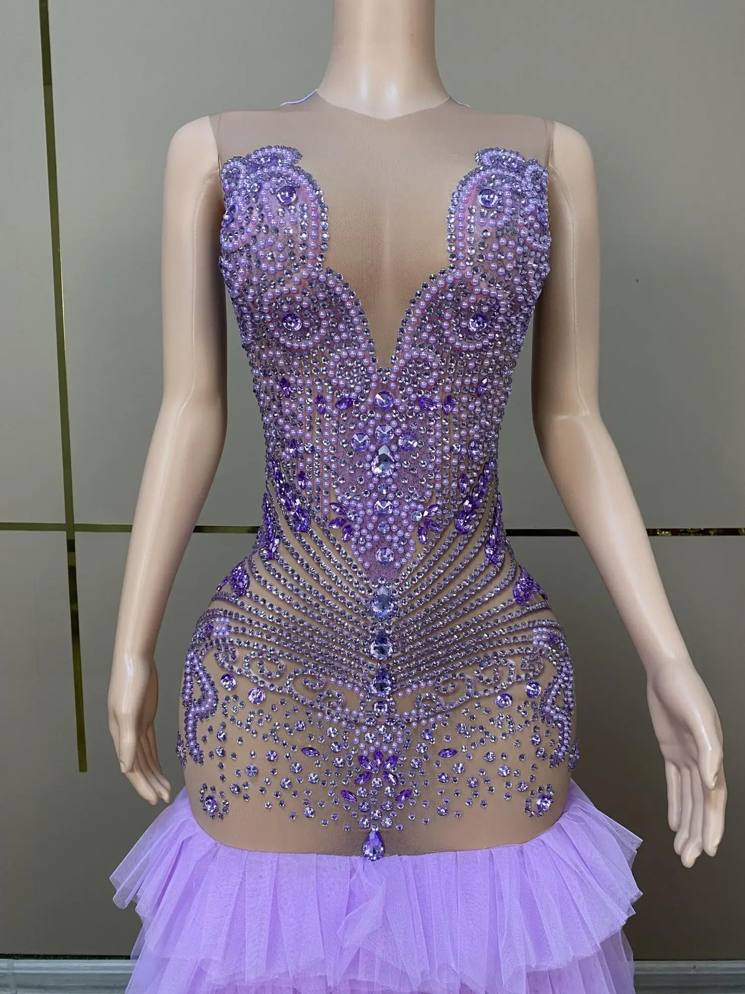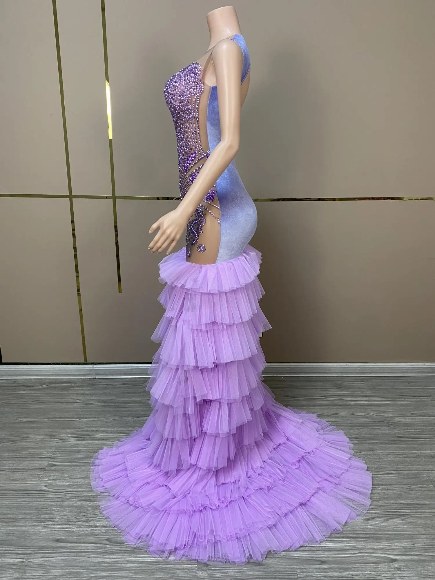 Sexy Long Sparkly Prom Dresses Sheer O-neck Luxury Purple Crystals Diamond Sequin Mermaid Black Girl Prom Party Gowns Ziluolan