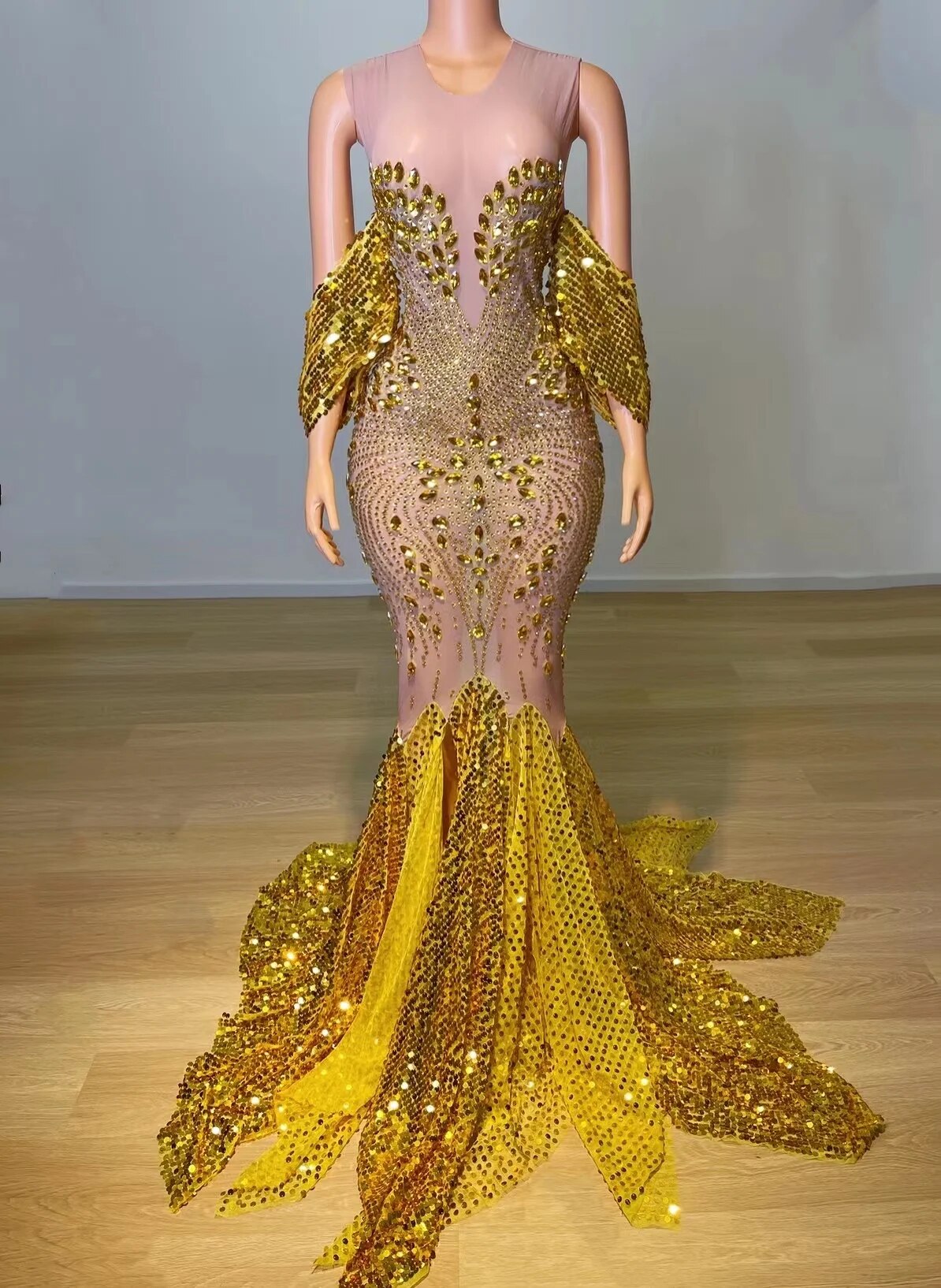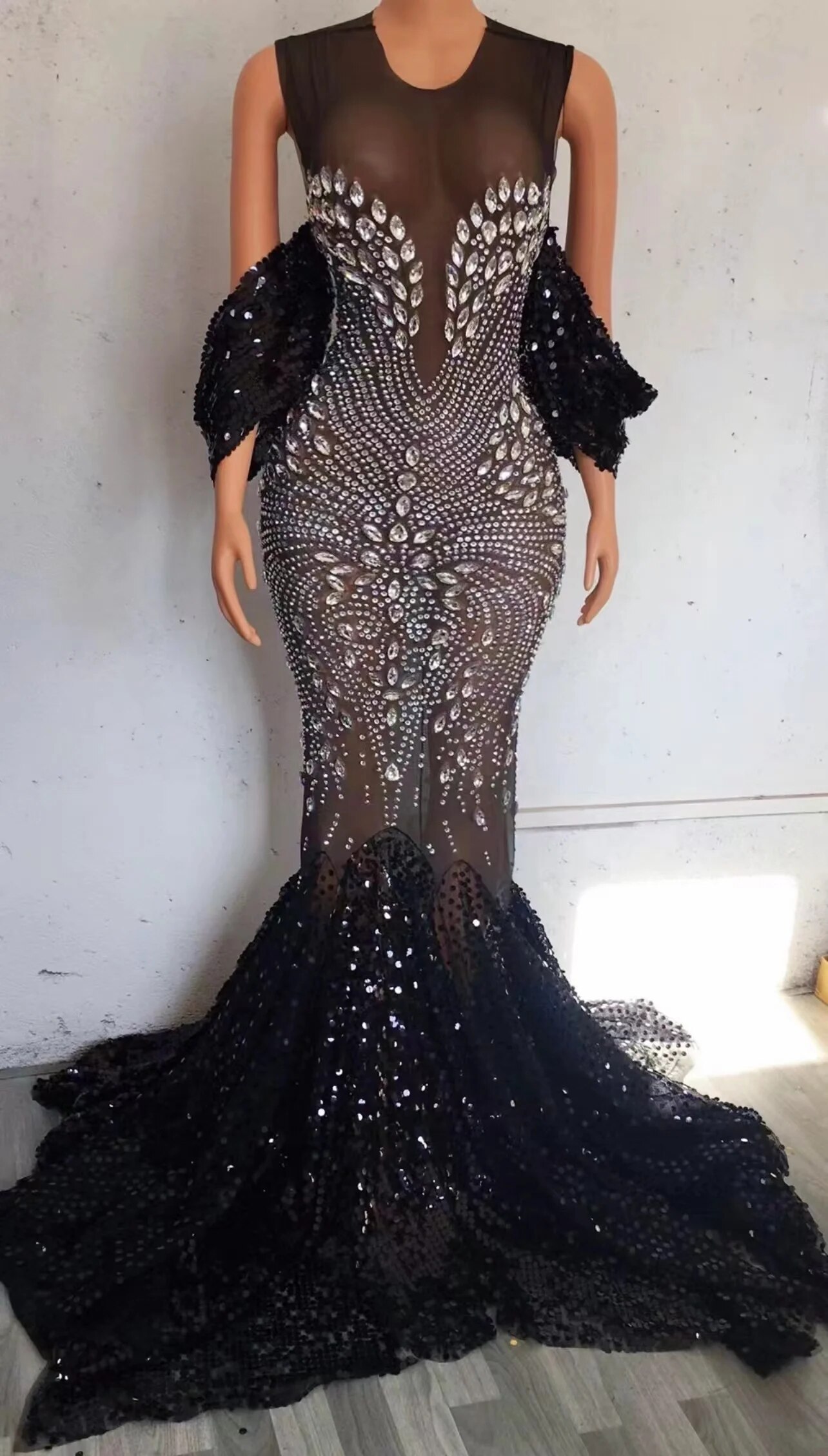 Sexy Luxury Mermaid Diamonds Embellished Deep V Dress Accentuate Chest&hip Evening Dress Bridesmaid Wedding Party Dresses