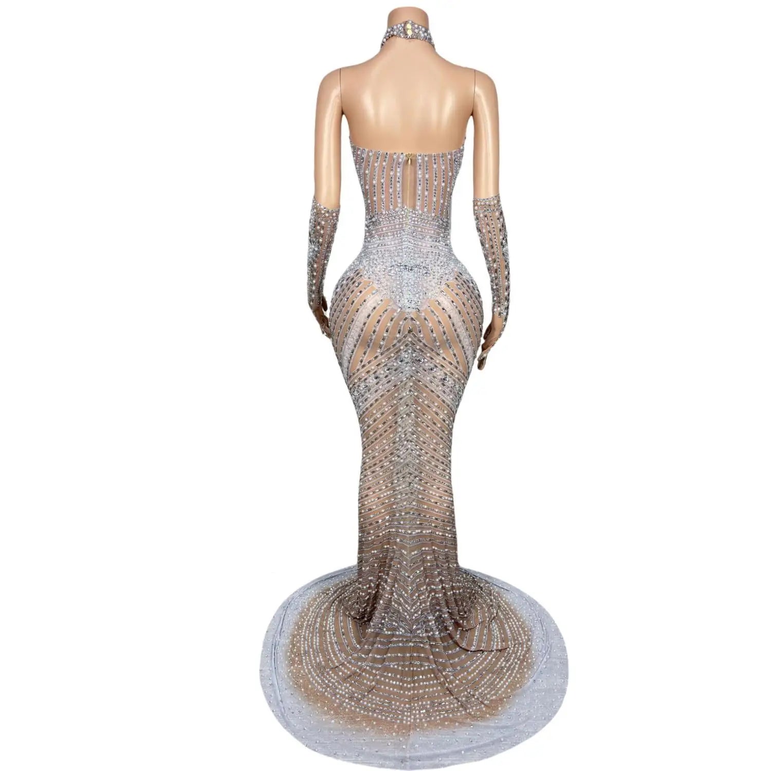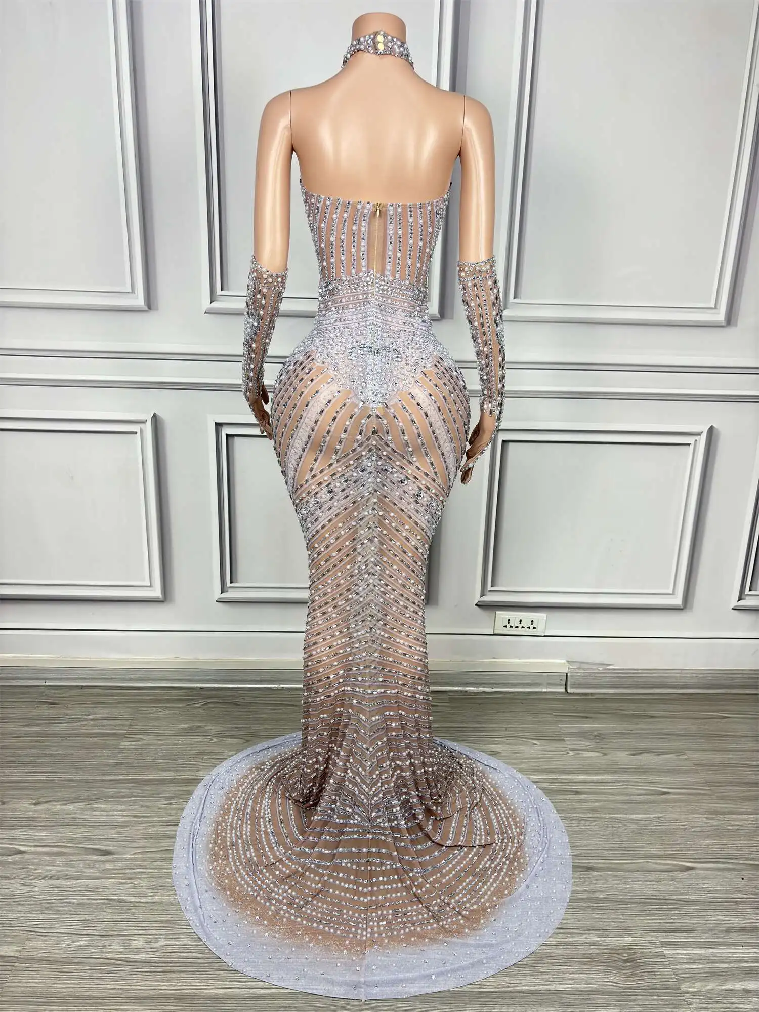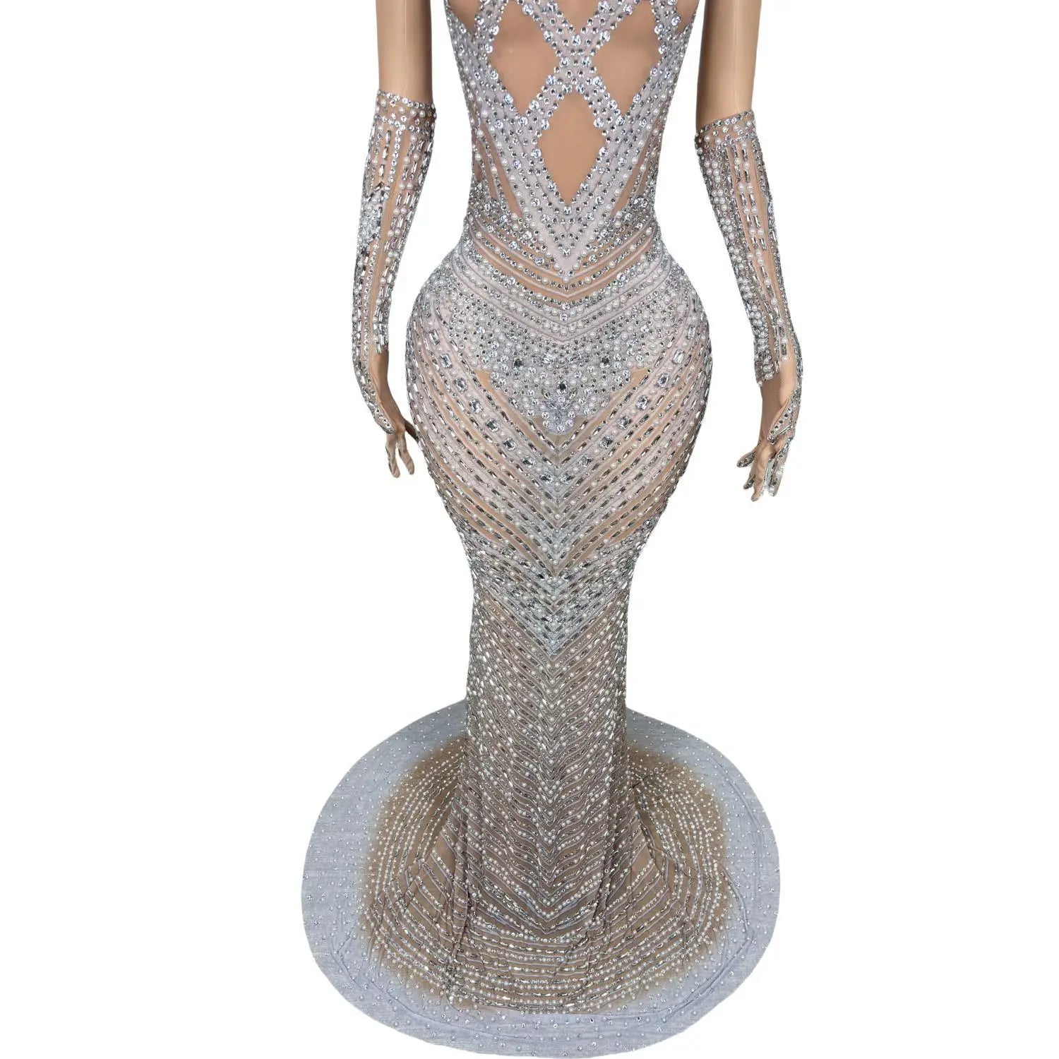 Sexy Mermaid Style Fitted Women Prom Formal Gowns Luxury Sparkly Silver Diamonds Black Girls Long Prom Dresses 2024 Renyugongzhu