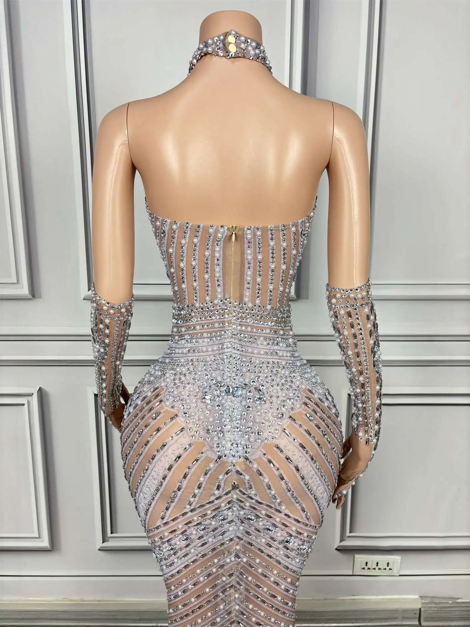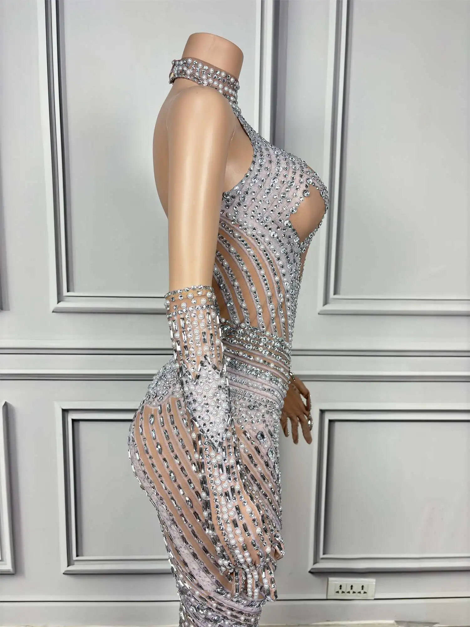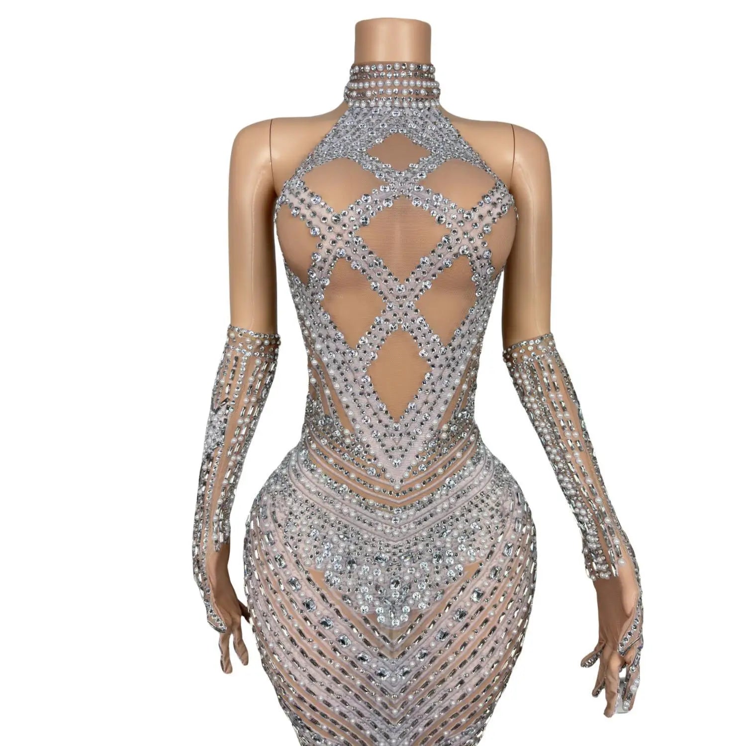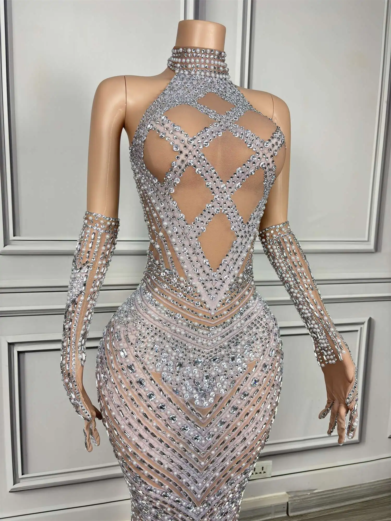 Sexy Mermaid Style Fitted Women Prom Formal Gowns Luxury Sparkly Silver Diamonds Black Girls Long Prom Dresses 2024 Renyugongzhu