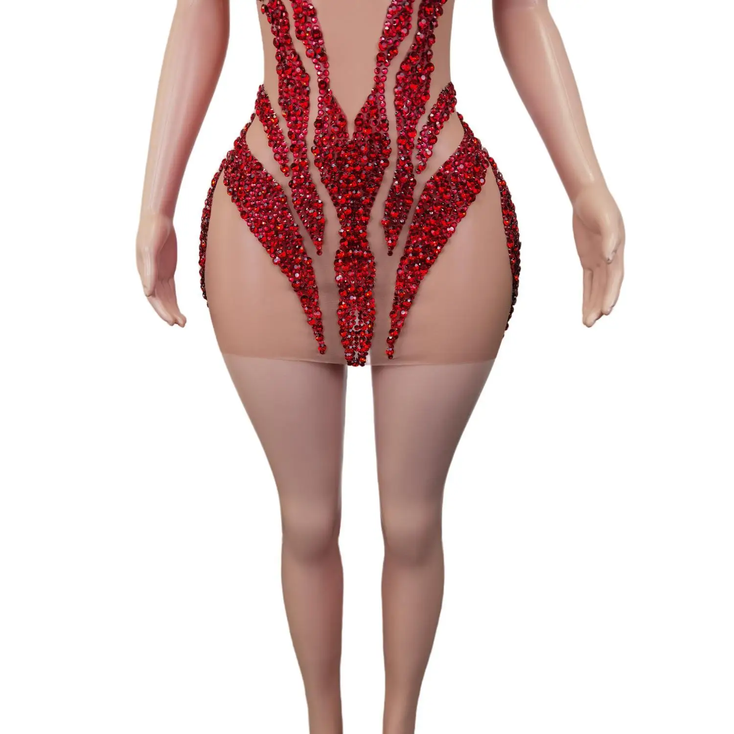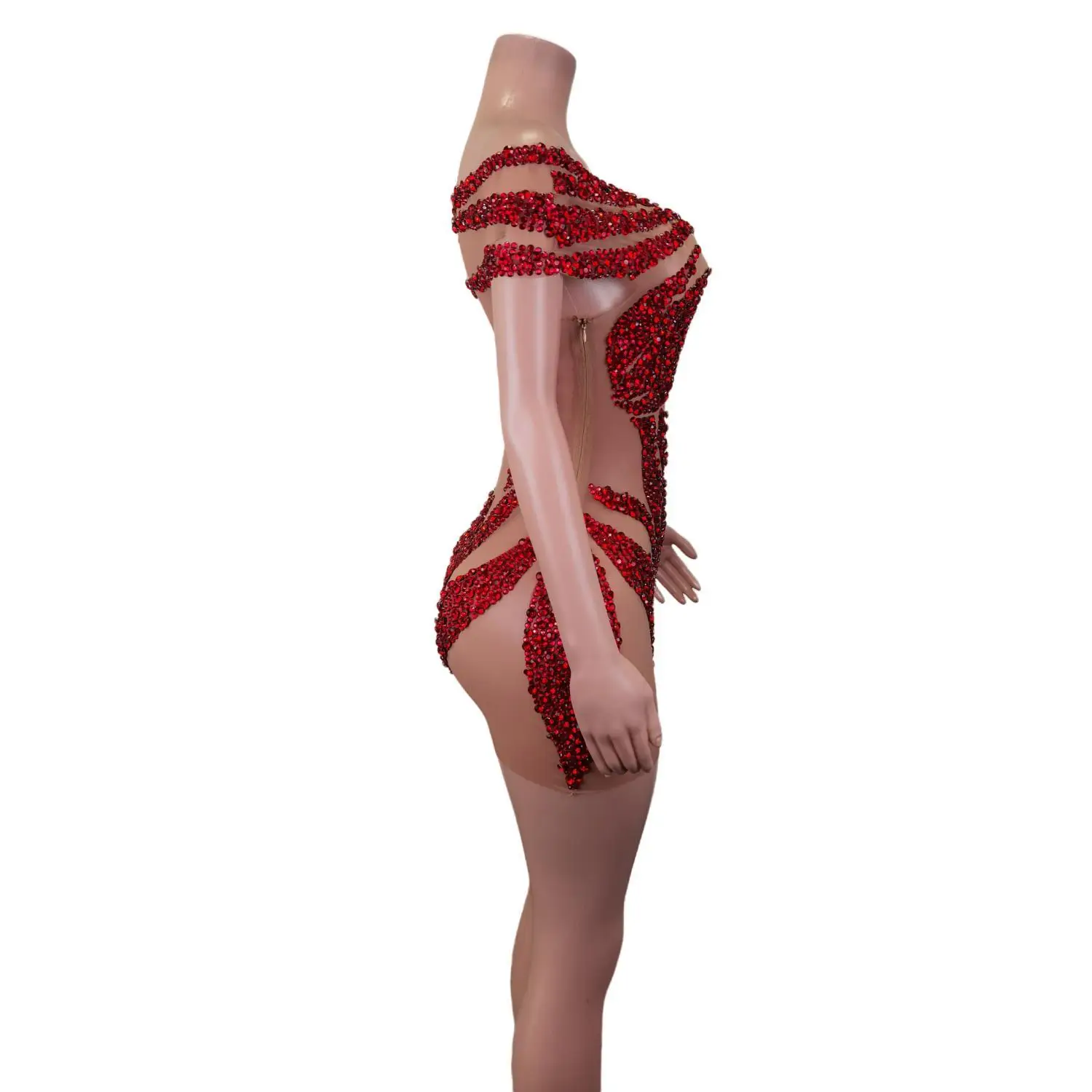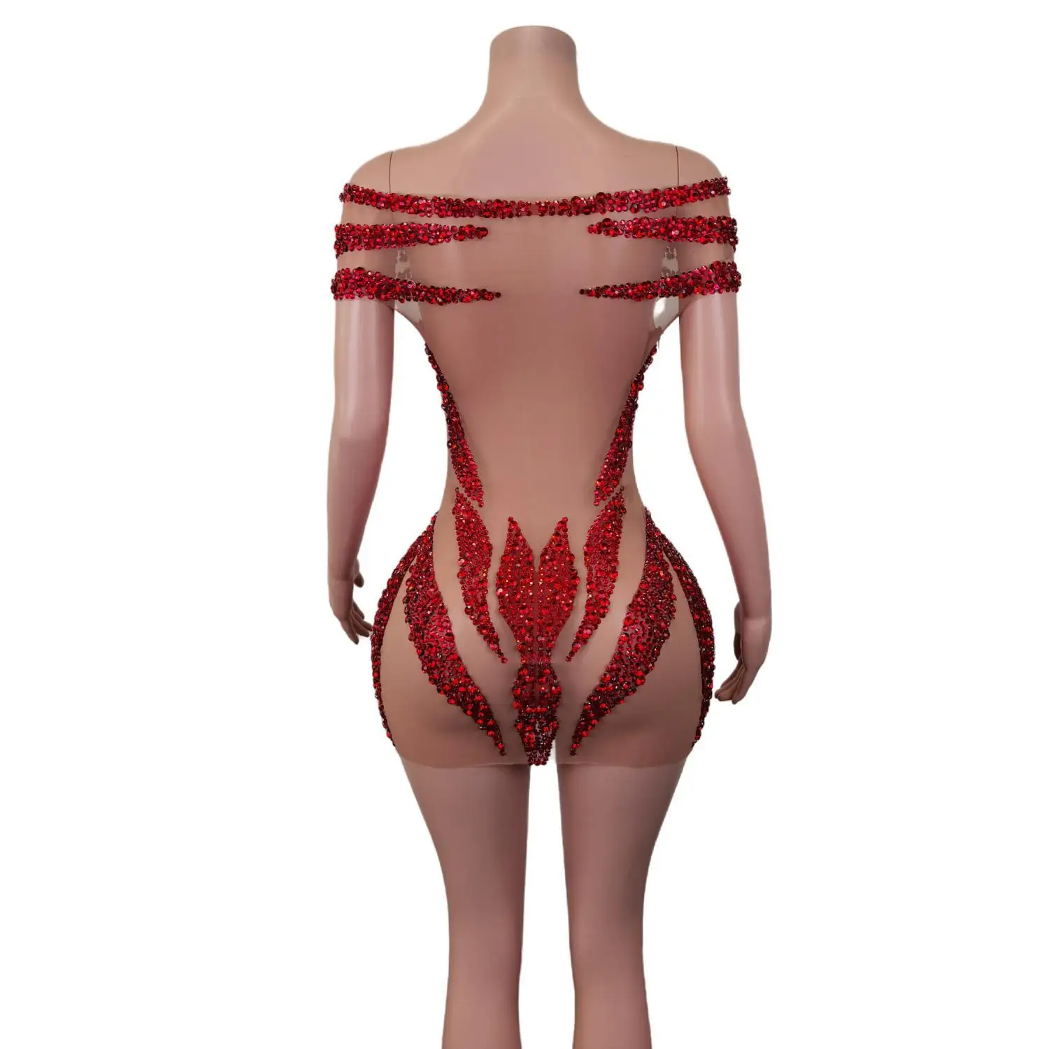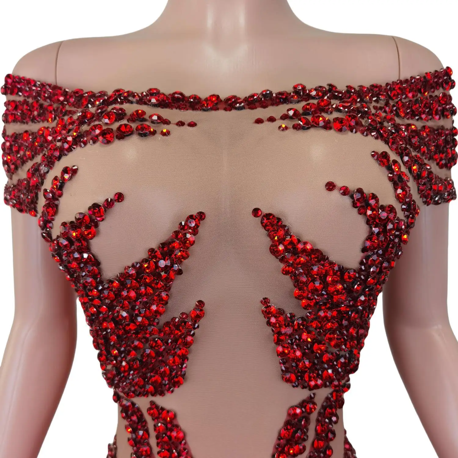 Sexy Mesh Party Celebrate Birthday Off Shoulder Dress Sparkly Rhinestones Dress Women Photo Shoot Wear Stage Costumes Xuelian