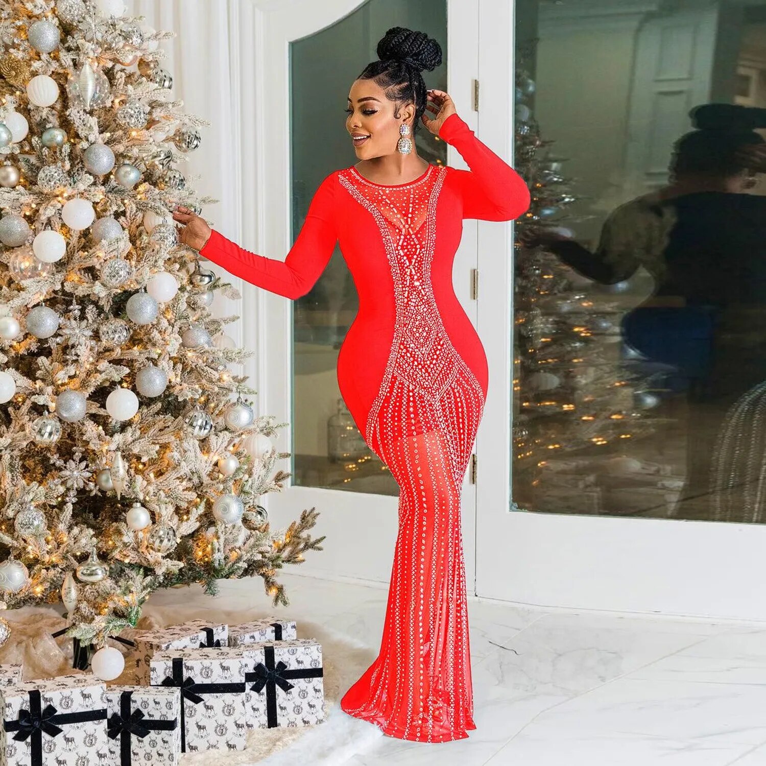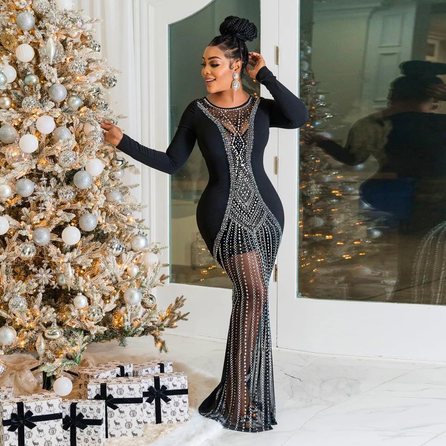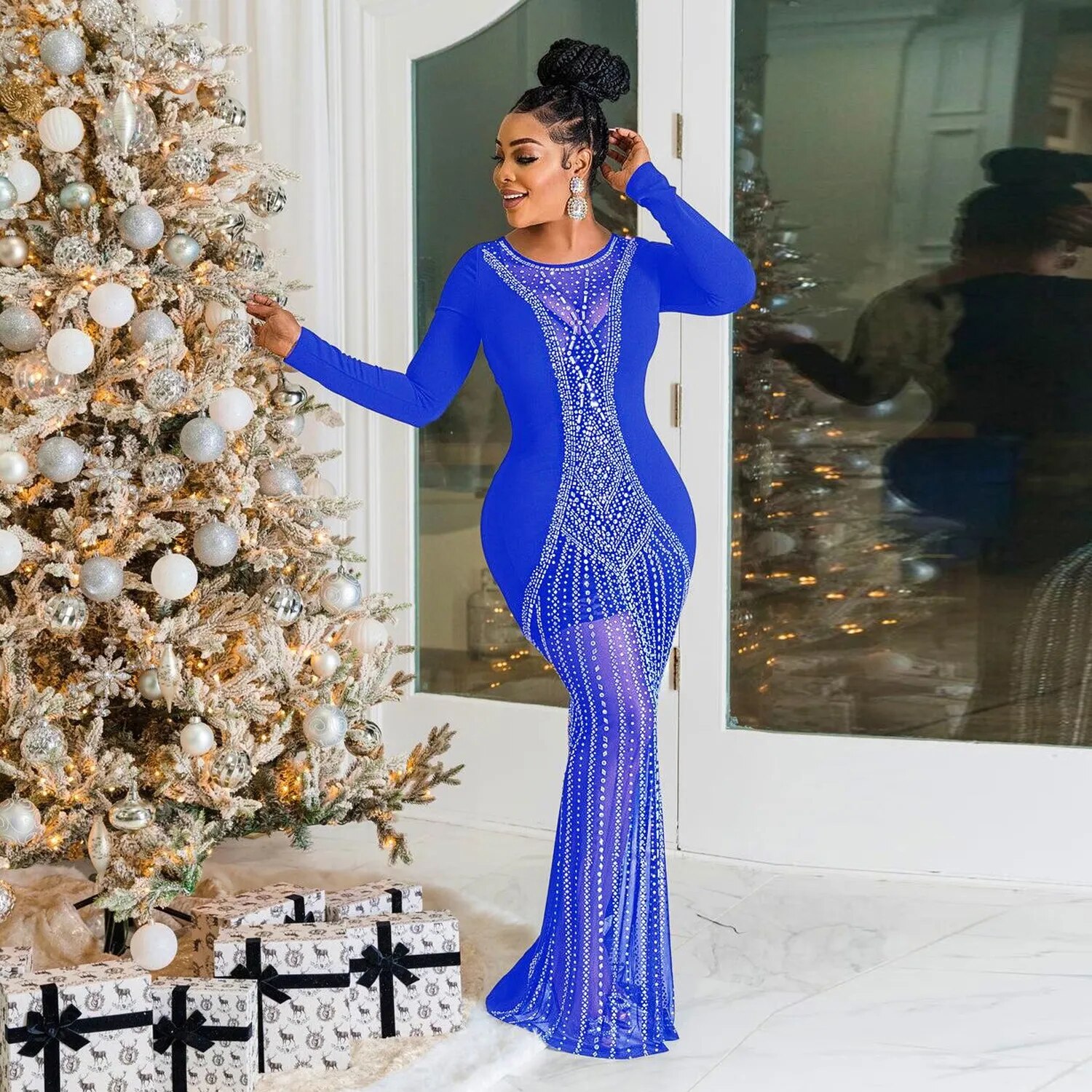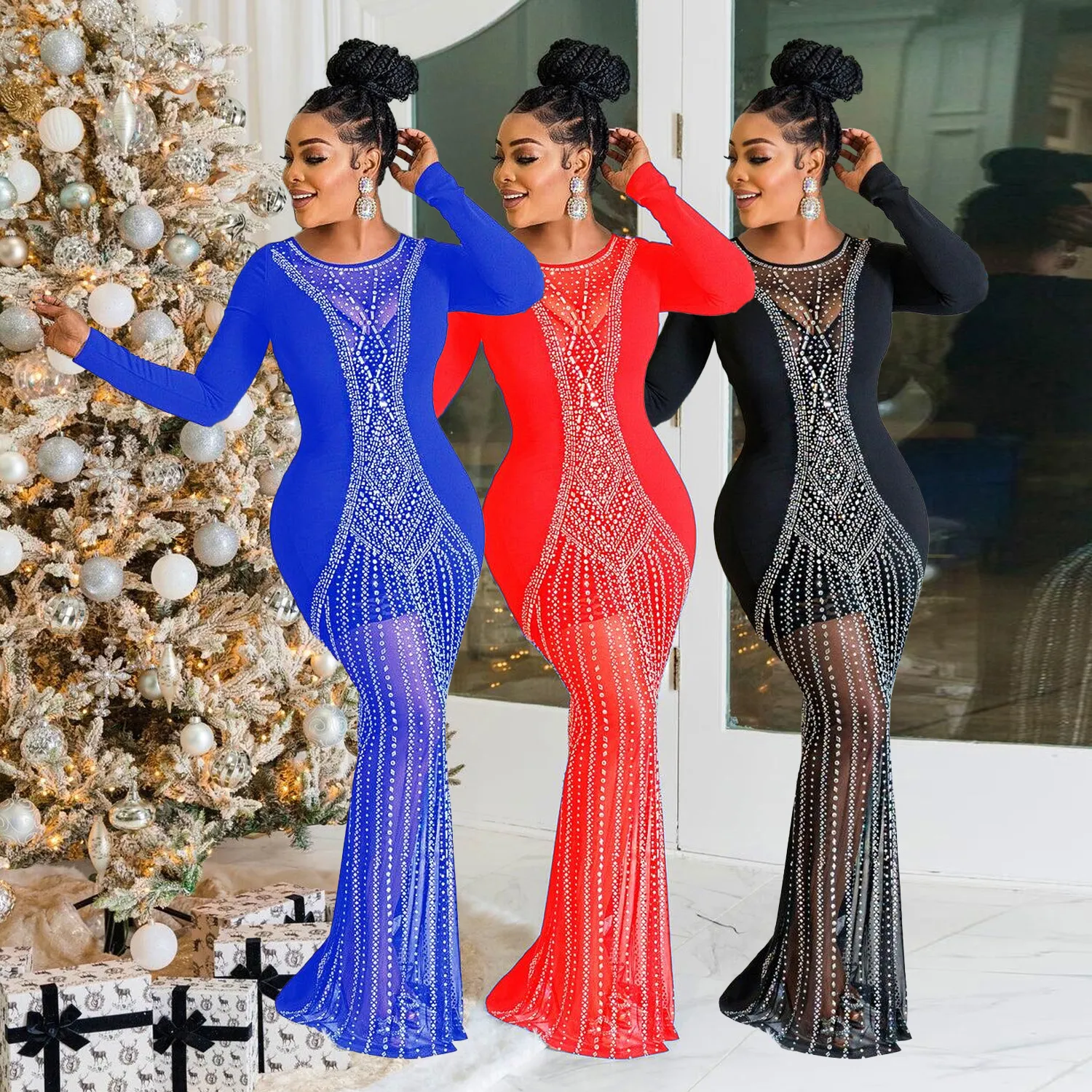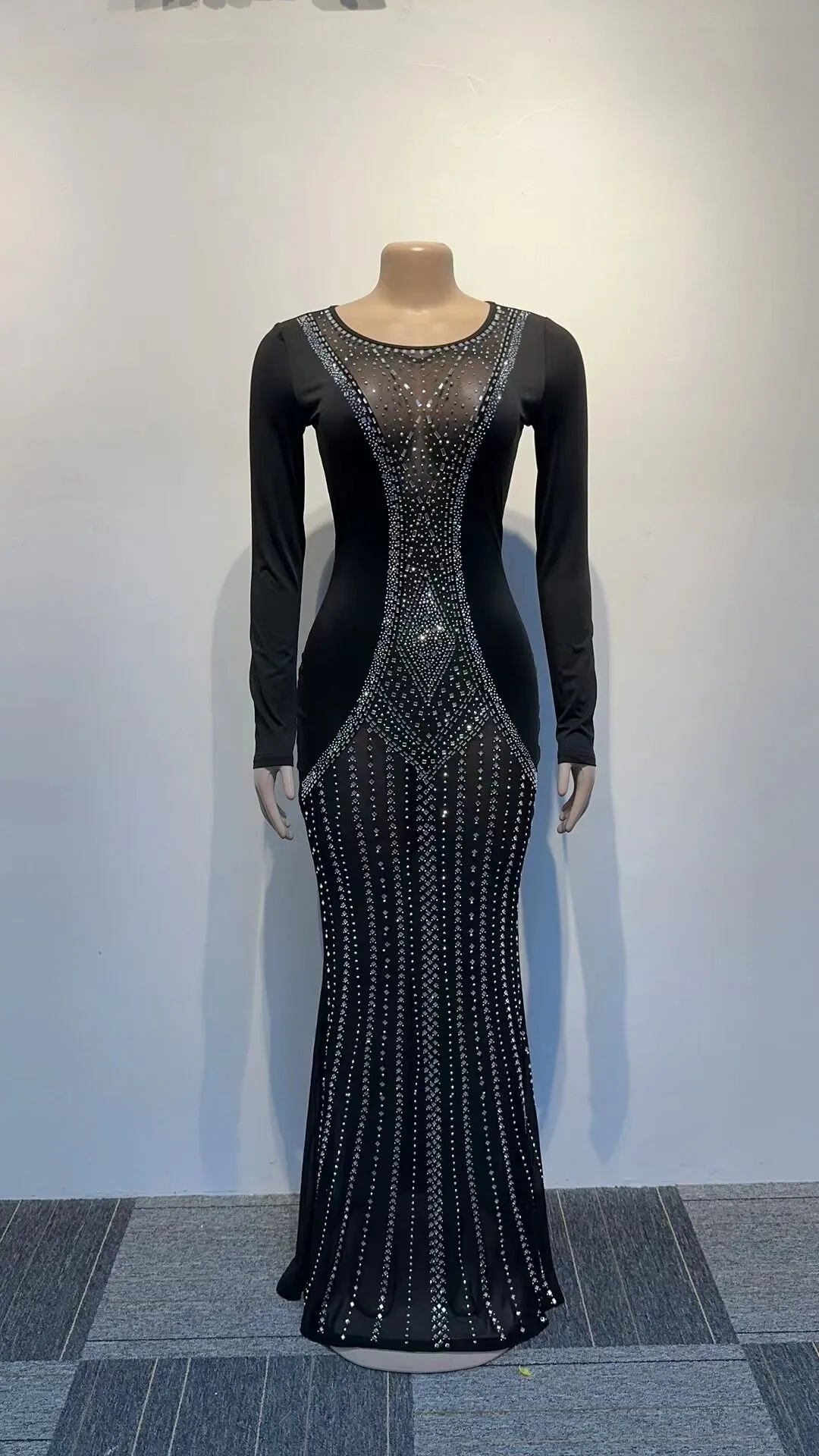Sexy Mesh Rhinestone Party Prom Maxi Dress Long Luxury See Through Night Club Wedding Evening Gowns For Women Bodycon Dresses