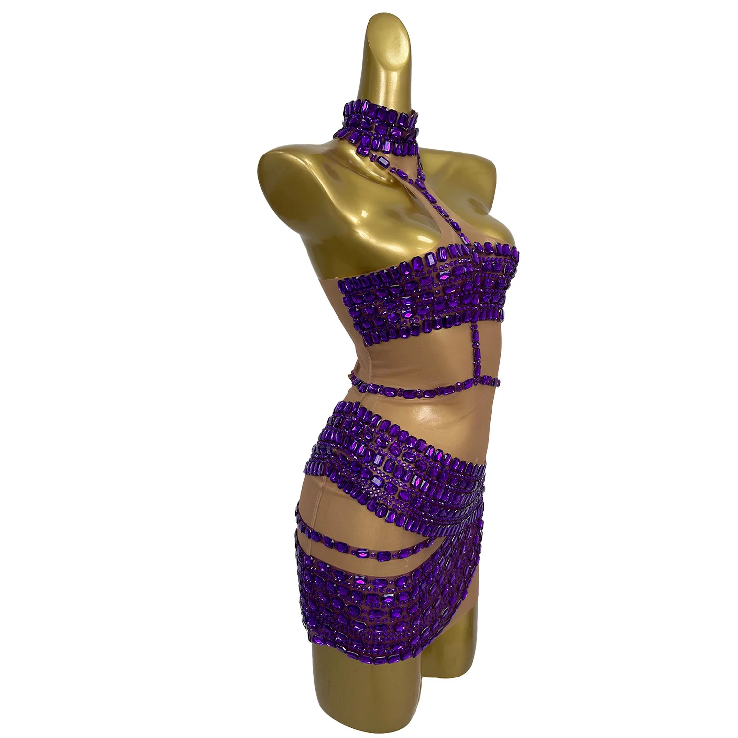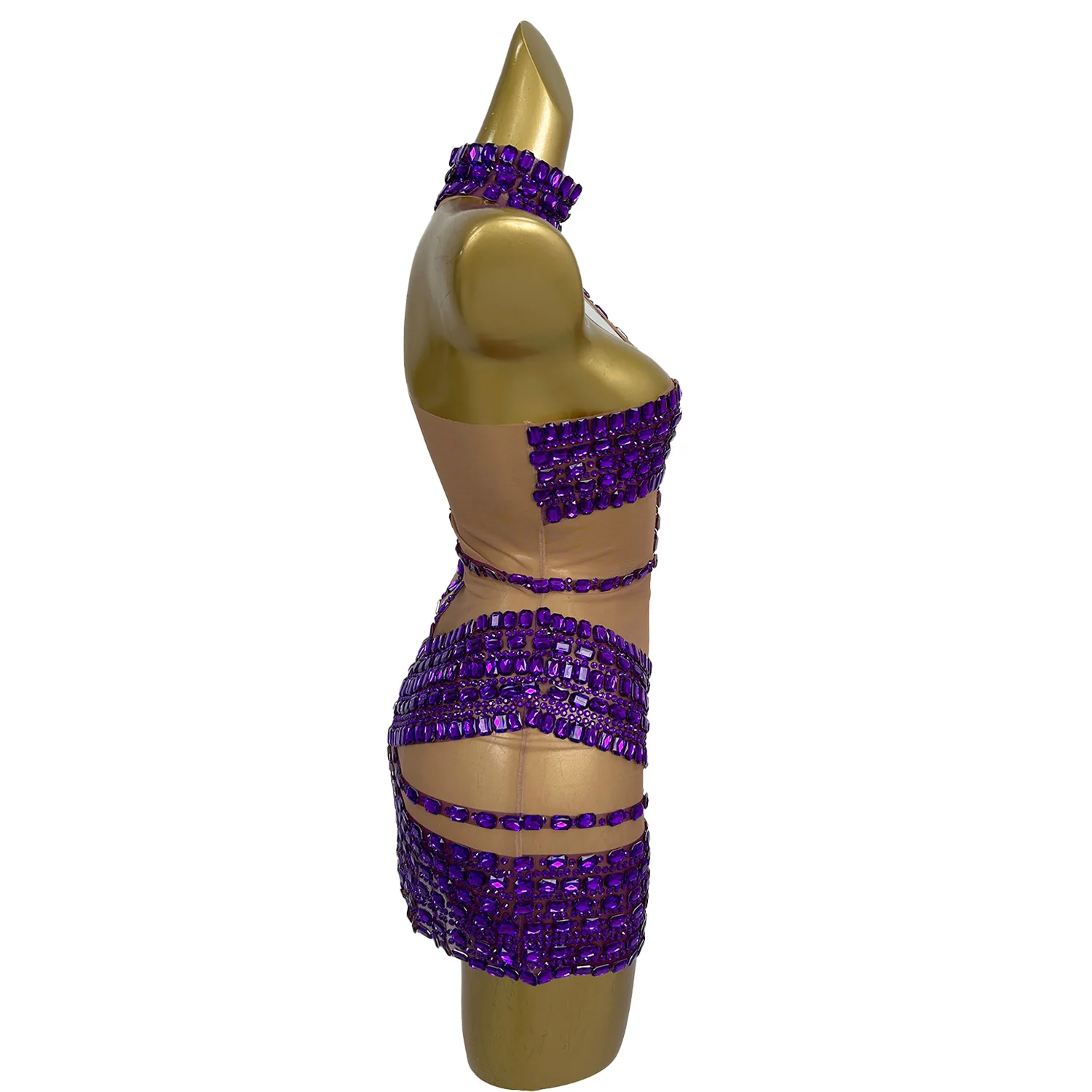 Sexy Pole Dance Sparkly Rhinestones Dress Evening Birthday Celebrate Prom Gown Party Dress Performance Outfit Fangtang