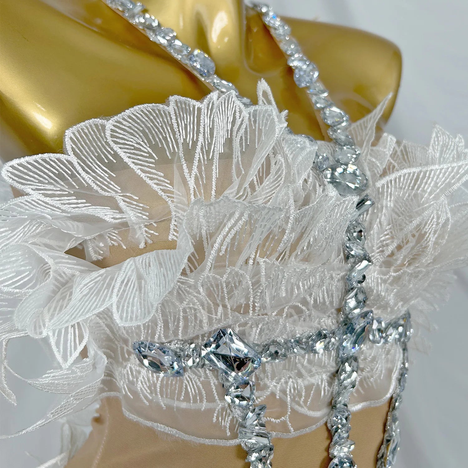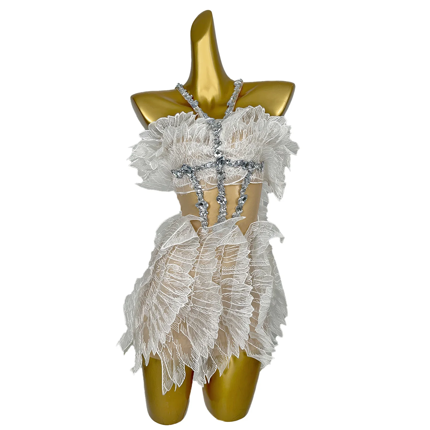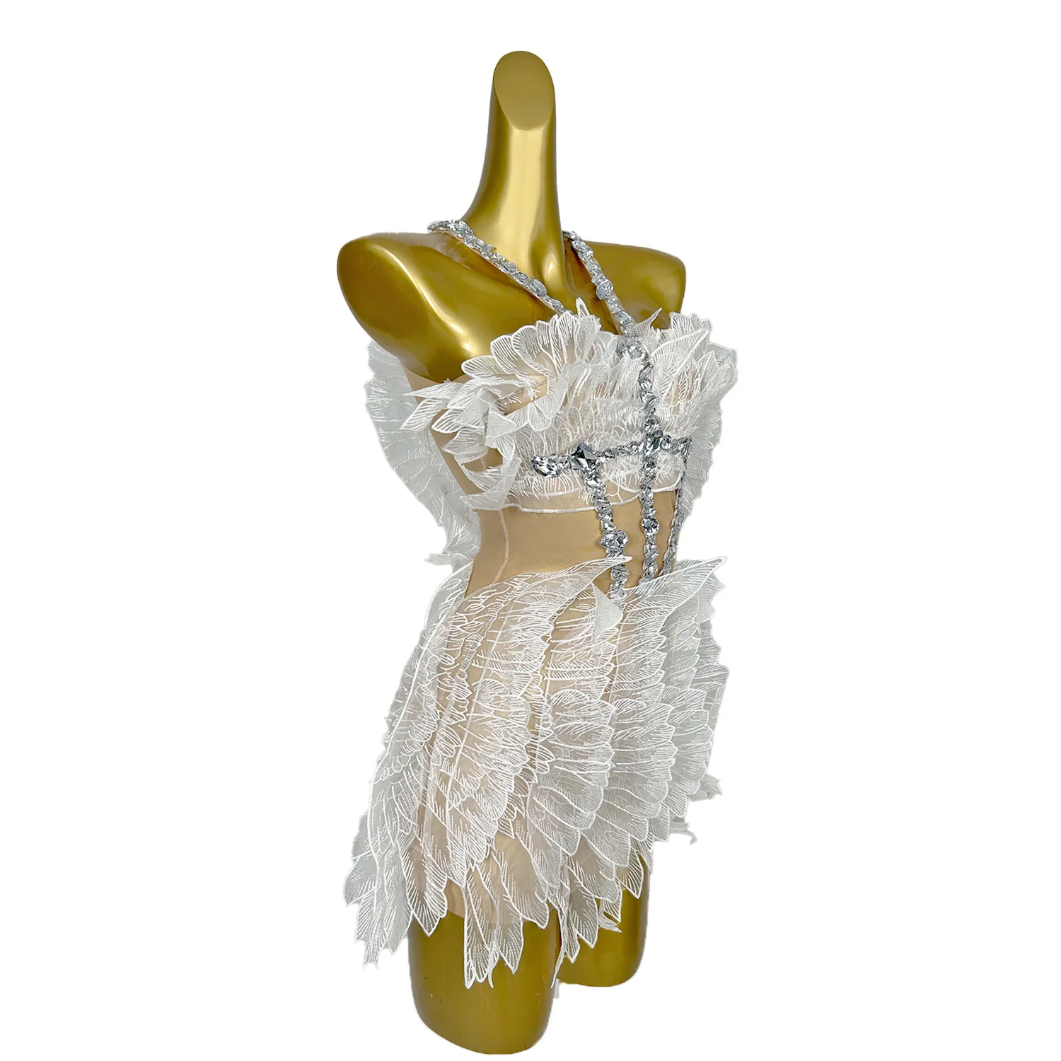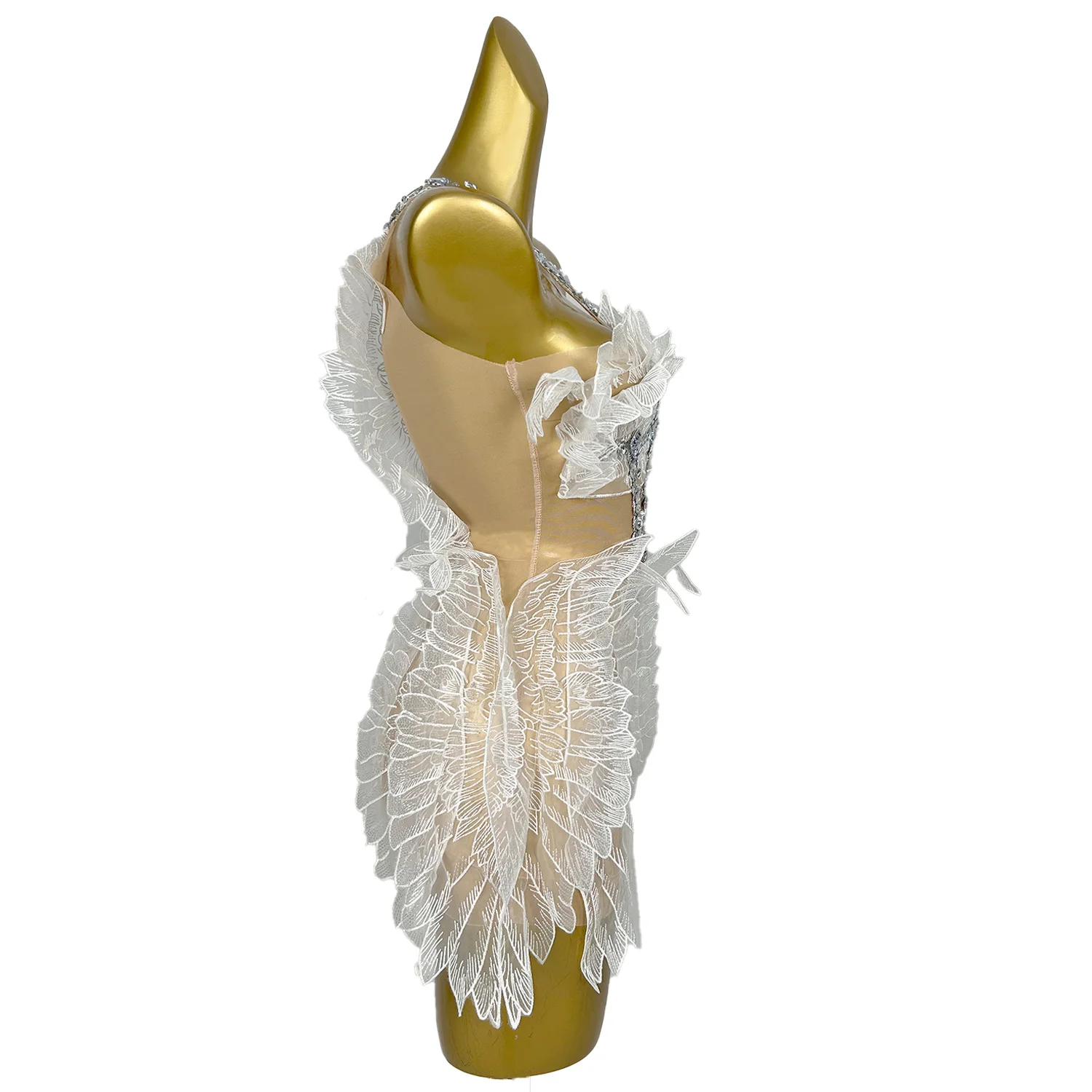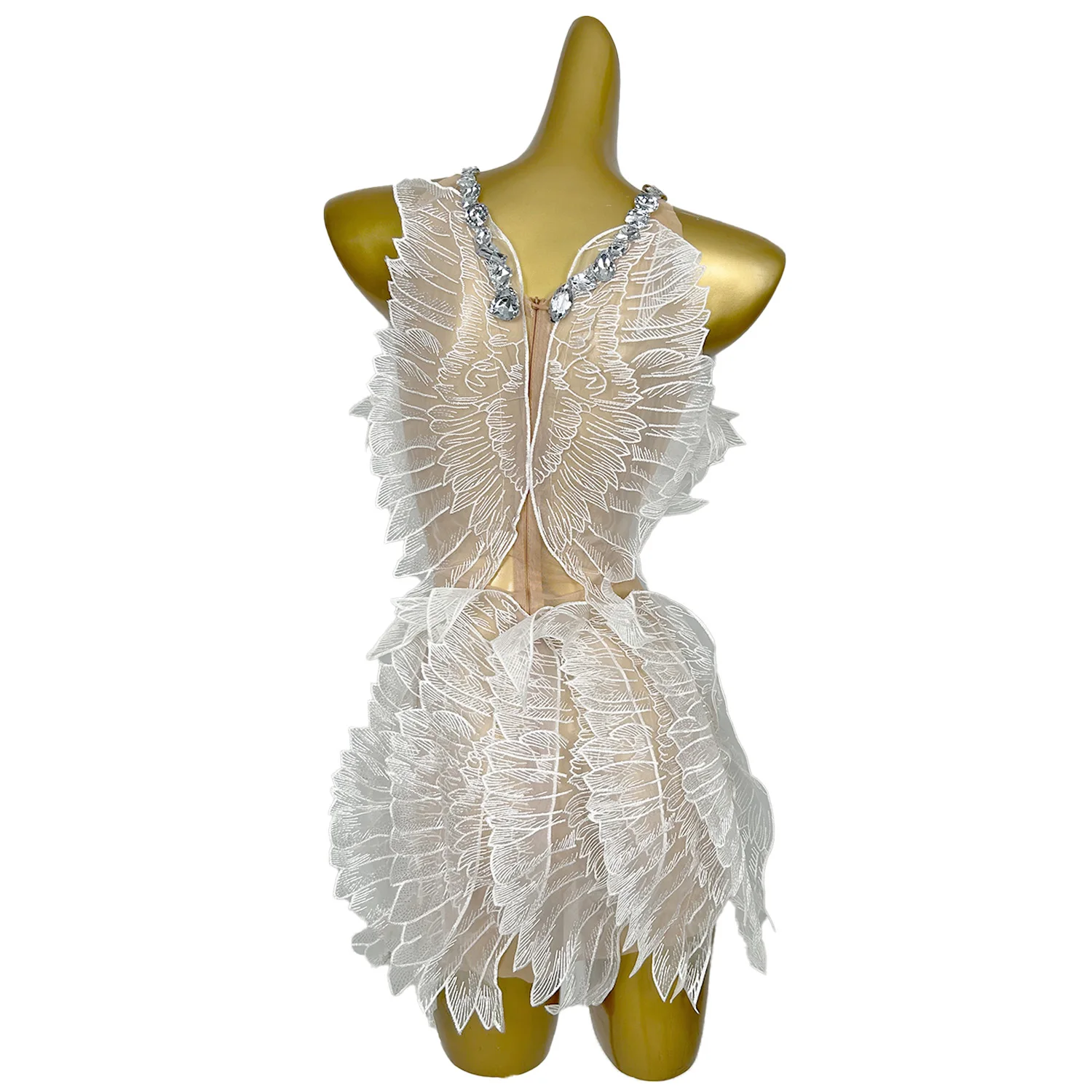 Sexy Rhinestones Halter Short White Wing Dresses for Women Celebrate Birthday Dress Performance Dance Costume Baichan