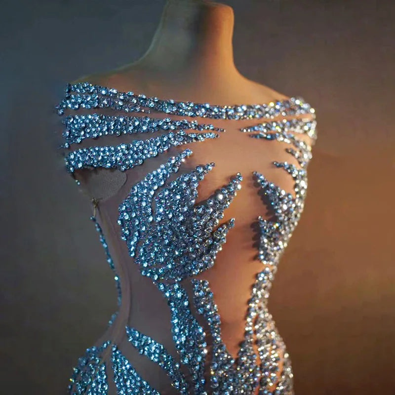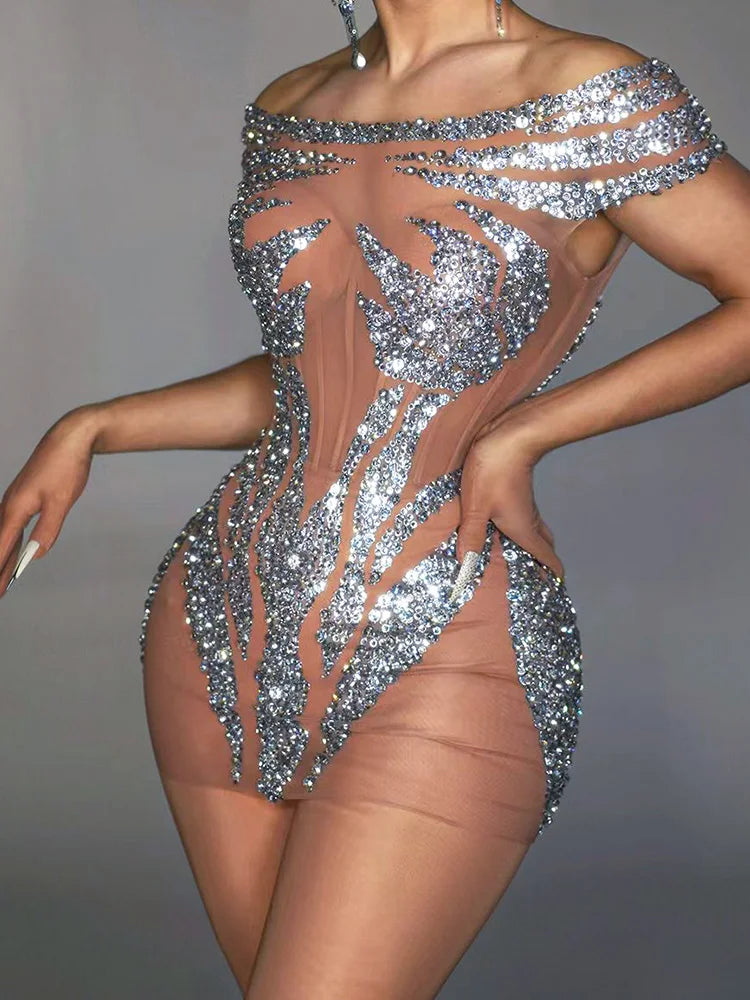 Turn heads in our Sexy See-Through Short Dress, adorned with sparkling rhinestones that will make you the star of the show! This dazzling outfit is perfect for dance events, birthday parties, club performances, and even pole dancing. Designed with a blend of elegance and allure, the see-through fabric offers a bold statement while allowing for comfortable movement. Ideal for drag queens and anyone looking to make an impression, this costume ensures you shine brightly at any bar or stage. Elevate your wardrobe and embrace your inner performer with this stunning outfit!
