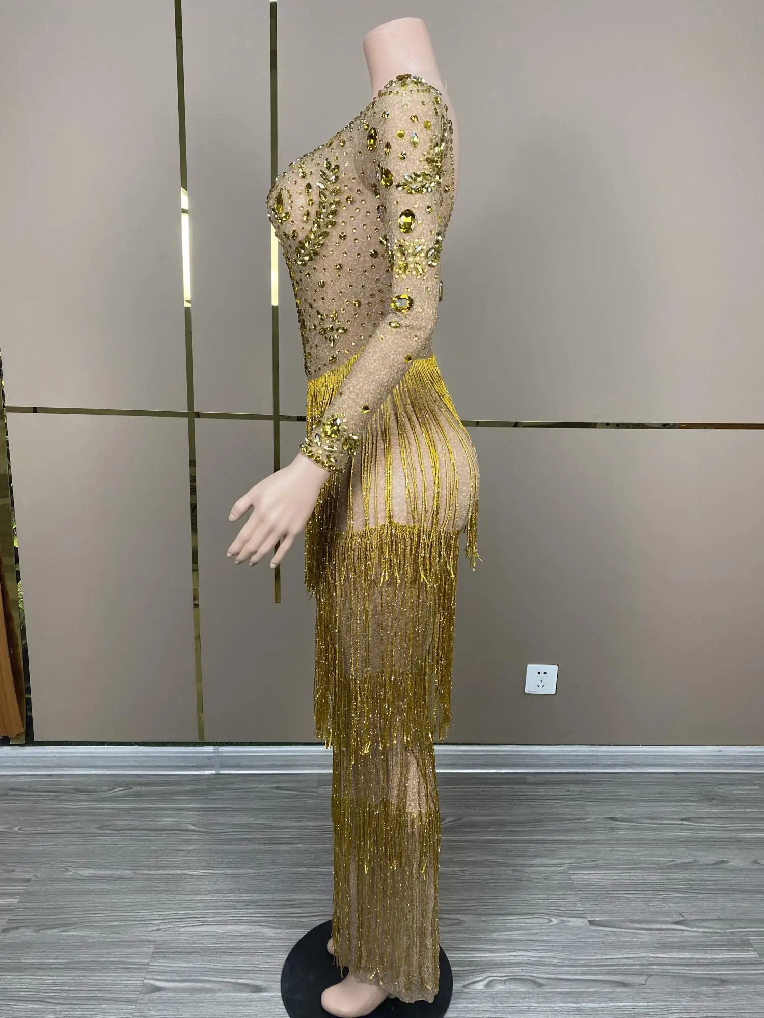 Sexy See Through Women Birthday Gowns Sheer Long Sleeve Sparkly Crystals Luxury Black Girl Long Prom Dresses 2024 Jinchai