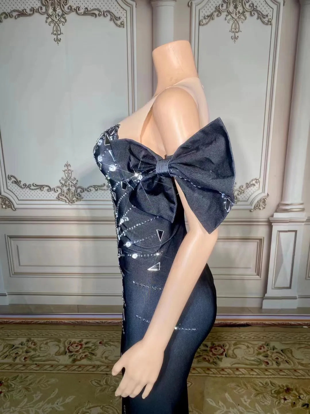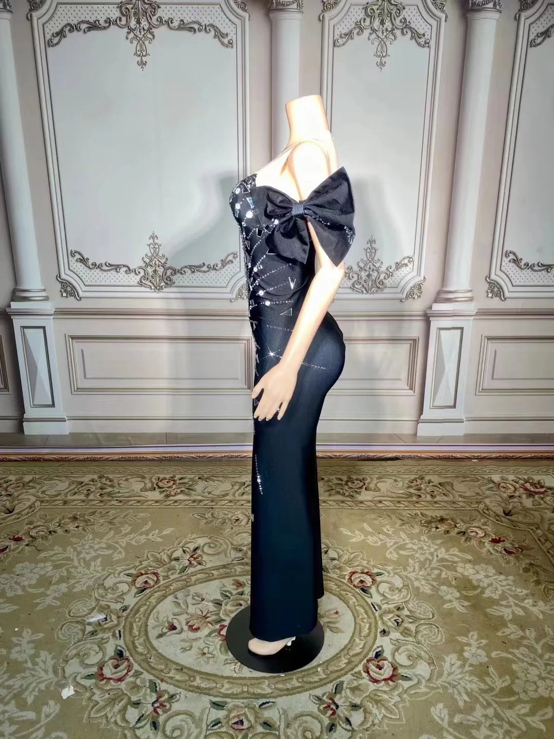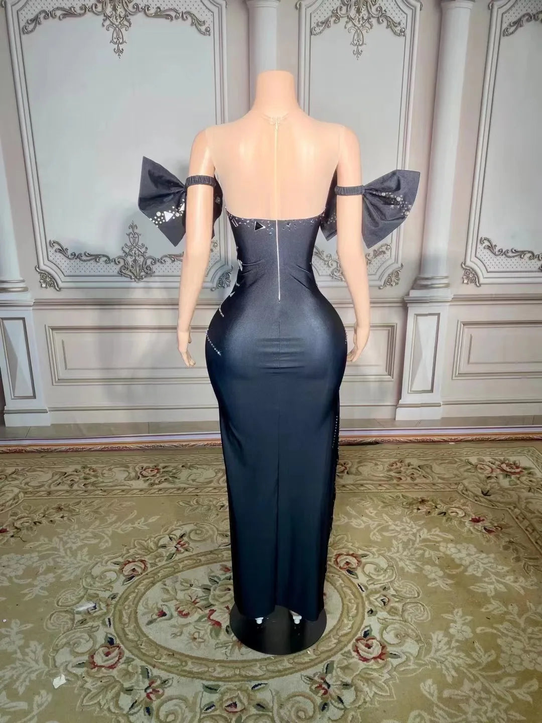 Turn heads in our Sexy Silver Rhinestones Mirror Black Slit Long Dress! This stunning gown is perfect for dance performances, parties, and special occasions. Adorned with dazzling rhinestones and a sultry slit, it offers a captivating silhouette that will make you the center of attention at birthdays and evening events. Whether you're posing for a photo shoot or hitting the dance floor, this elegant dress combines sophistication and allure for a show-stopping look!
