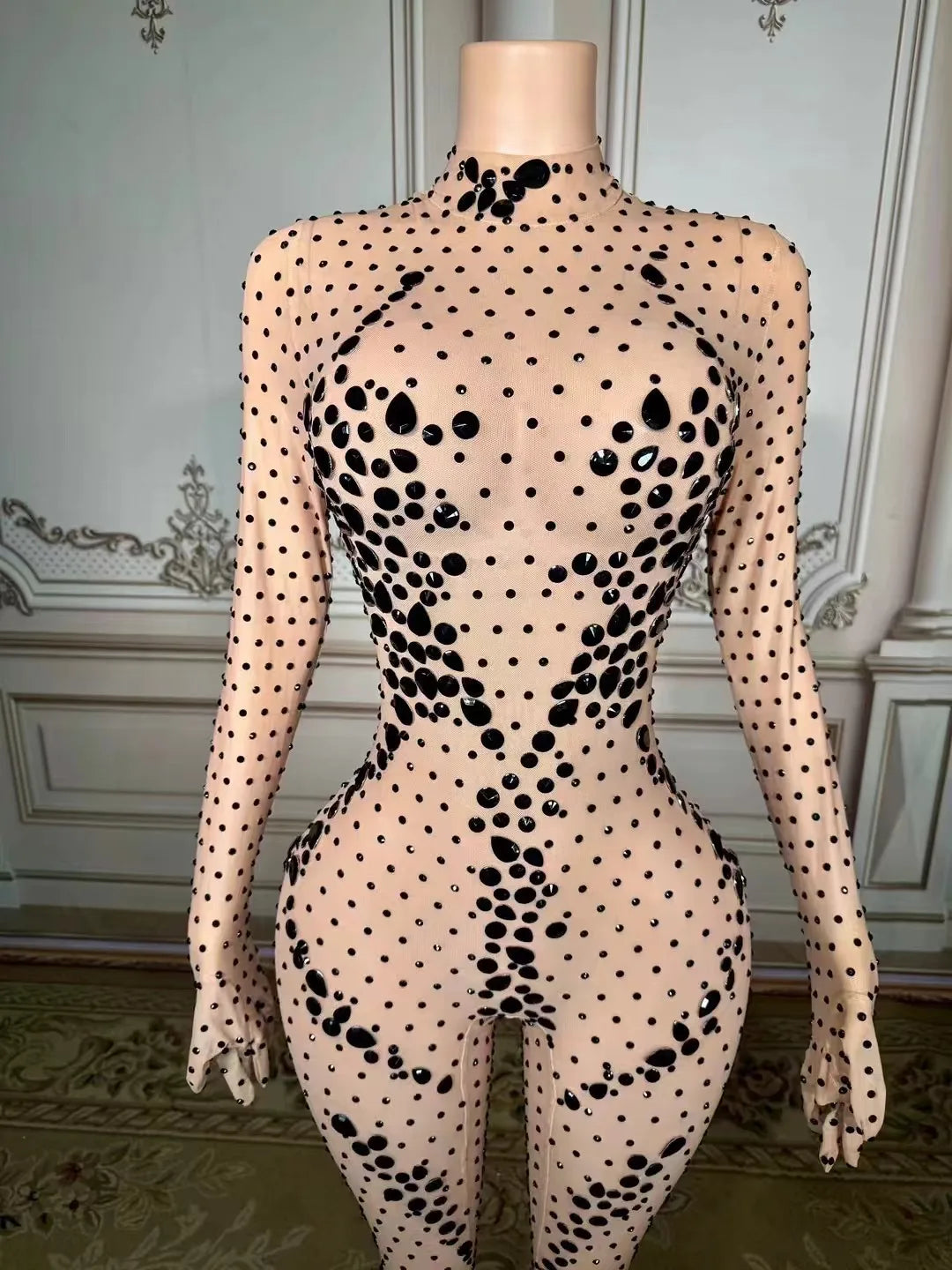 Elevate your performance with our sexy skinny sequins mirrors jumpsuit, designed for dancers who want to stand out. This eye-catching outfit features transparent leggings that highlight your movements while offering a sleek, slim fit. The shimmering sequins and mirrored detailing create a dazzling effect, ensuring you shine on stage. Perfect for dance wear or performance outfits, this jumpsuit is a must-have for any stylish performer looking to make an impact!