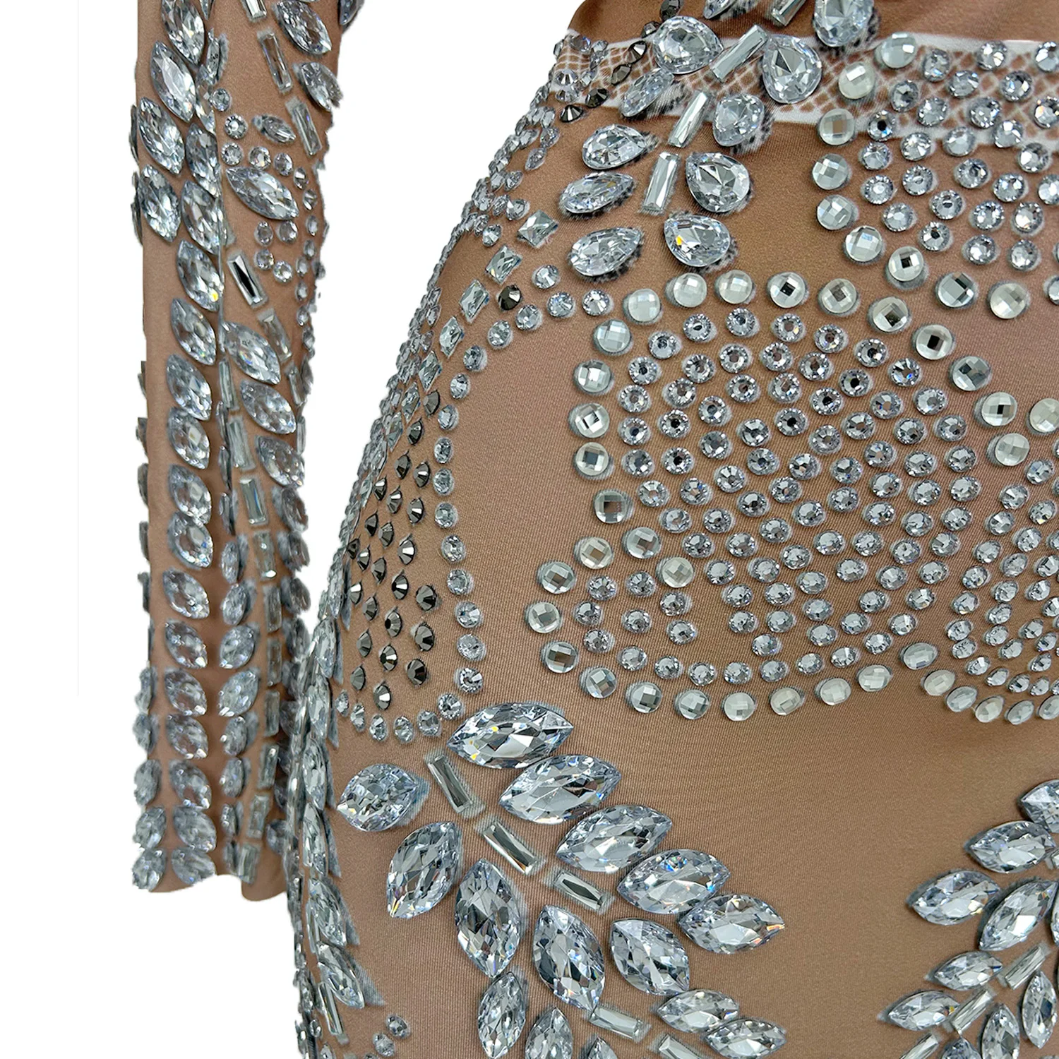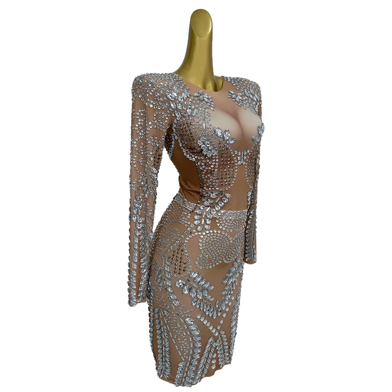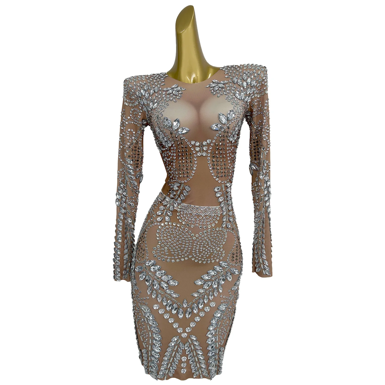 Sexy Slim Fit Crystal Party Gown Evening Dress Plus Size Women Short Birthday Prom Dress Lady Rhinestone Club Dress Liushu