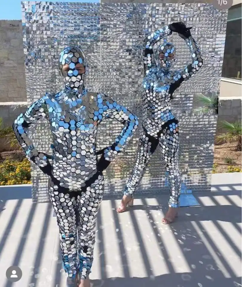 Sexy sparkly glass cloth Sexy Women Mirror Jumpsuit Customized Make Modern Singer Party Show Bodysuit