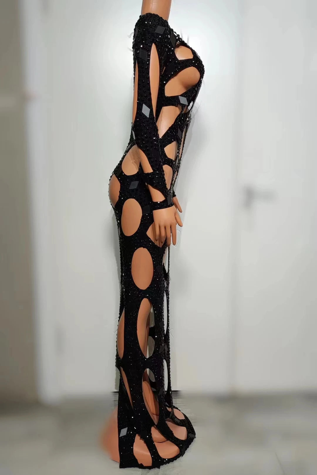 Step into the spotlight with this Sexy Stage Black Rhinestones Cutout Dress. Perfect for birthdays, dance performances, proms, photo shoots, and stage appearances, this dress is designed to make a statement. The black rhinestones add a touch of elegance and sparkle, while the cutout design adds a hint of allure and sexiness. Embrace the bold and stylish look of this dress and celebrate in style at your next event. Stand out and shine on stage in this eye-catching and glamorous costume that is sure to make you the center of attention.