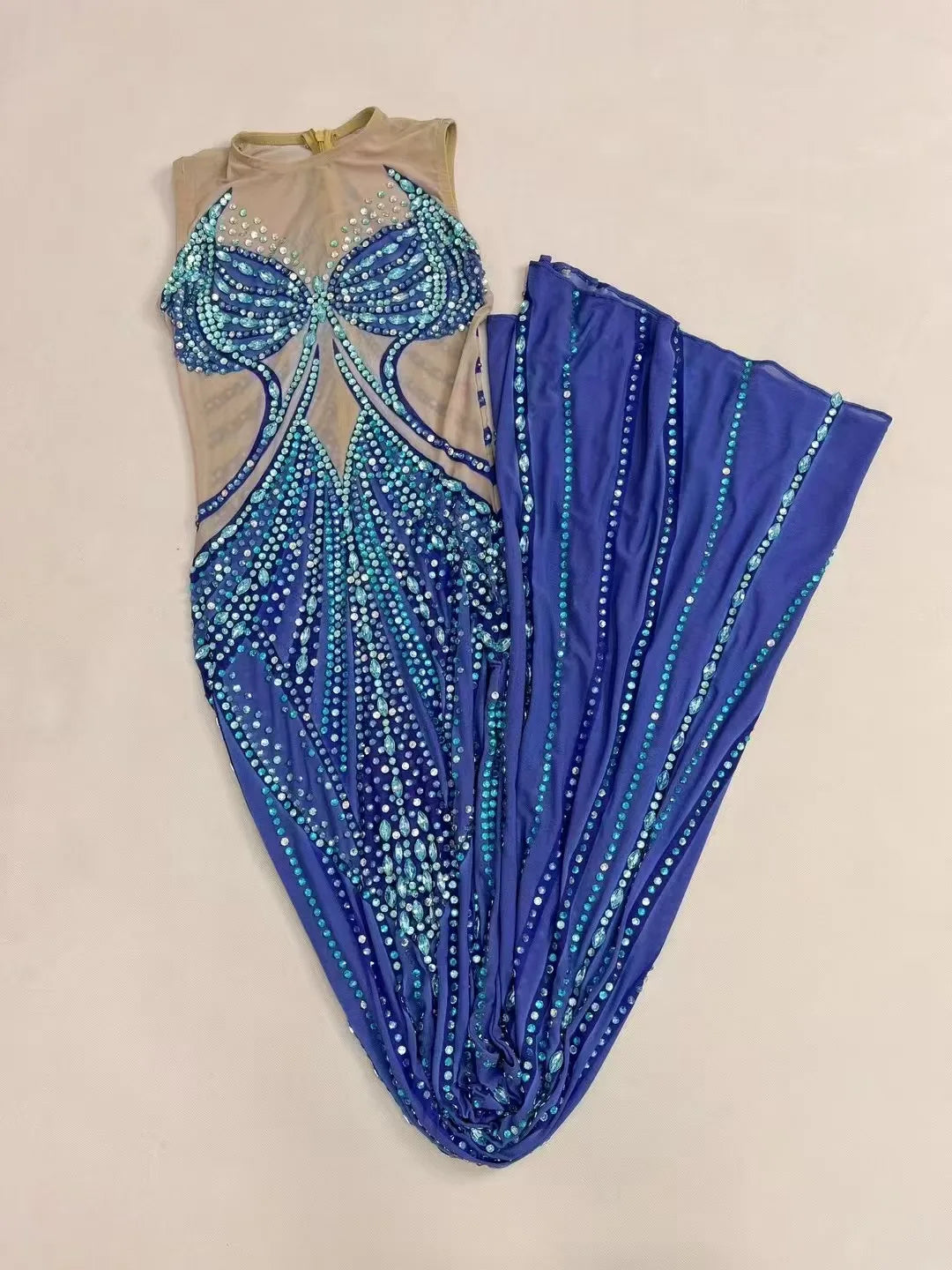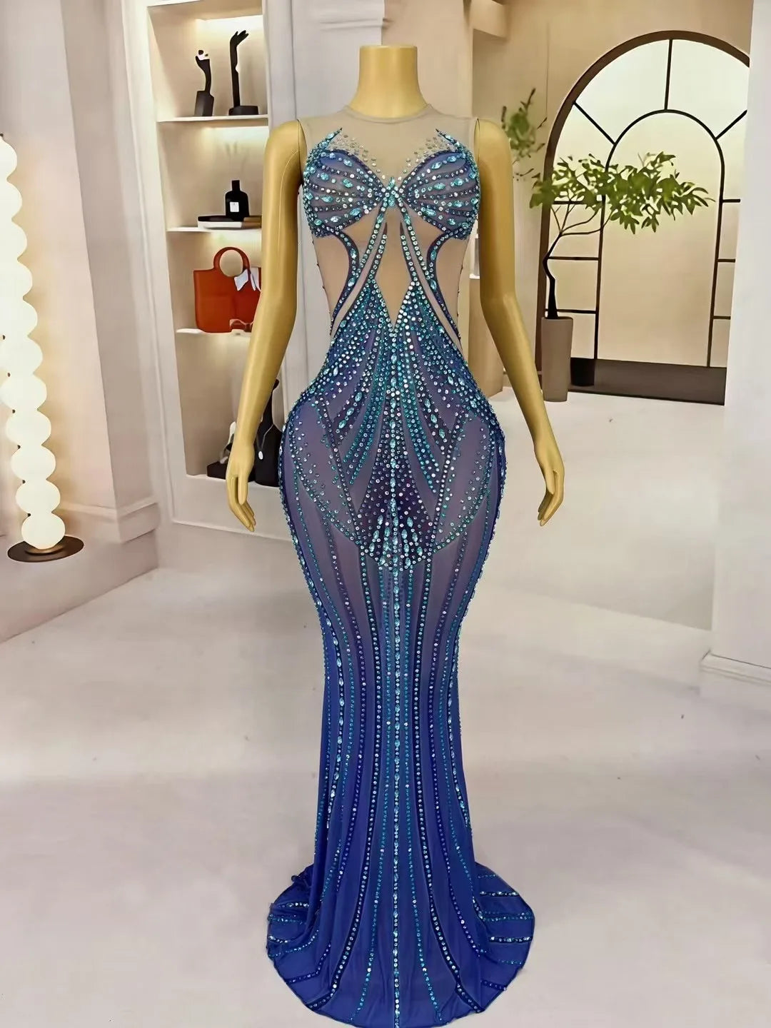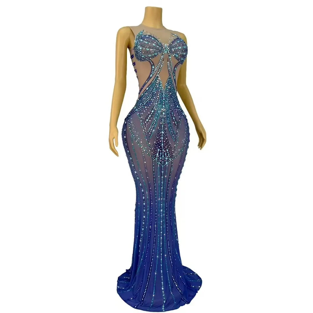Turn heads and own every spotlight with this Sexy Stage Handmade Sparkly Rhinestones Elegant Mermaid Dress — a show-stopping gown crafted for women who want birthday, evening, prom, or red-carpet moments to feel cinematic. Designed with performance and glamour in mind, this mermaid silhouette celebrates the curves: fitted through the bodice and hips, it flares dramatically at the knees into a sweeping, stage-ready train that moves like liquid satin. The body of the dress is expertly hand-embellished with thousands of individually set rhinestones, sequins, and beads that catch and multiply every light source — from camera flashes to nightclub spotlights — creating a living constellation across your frame.