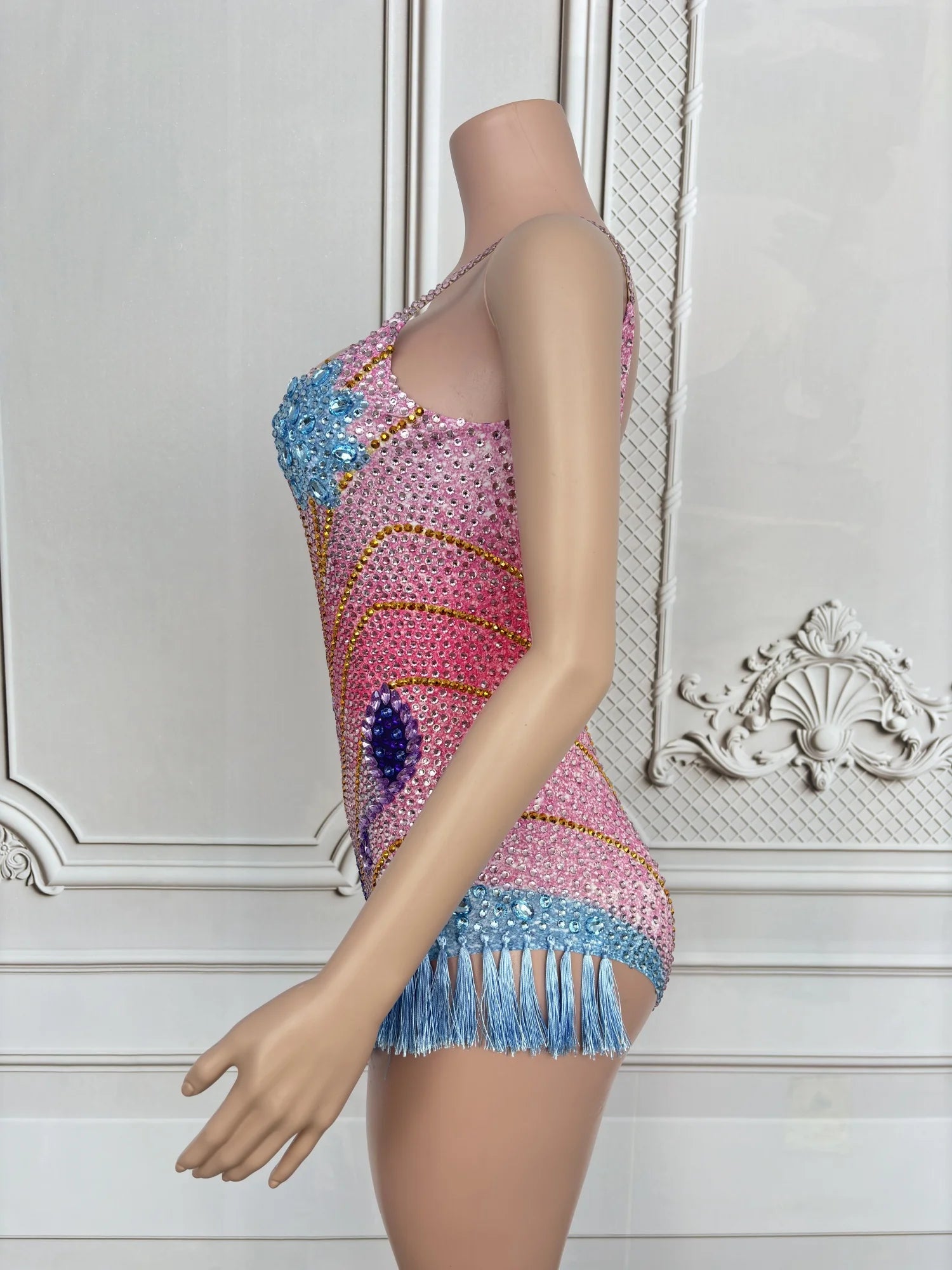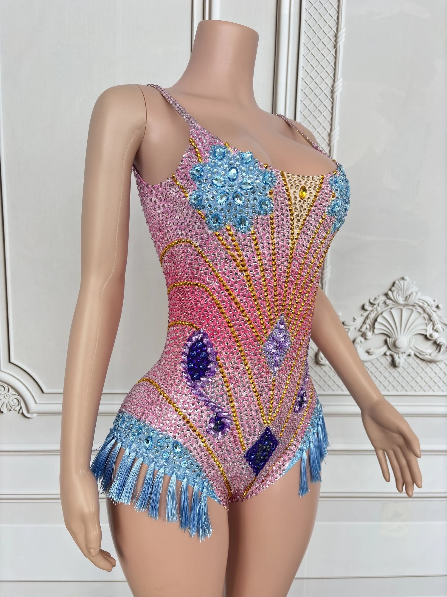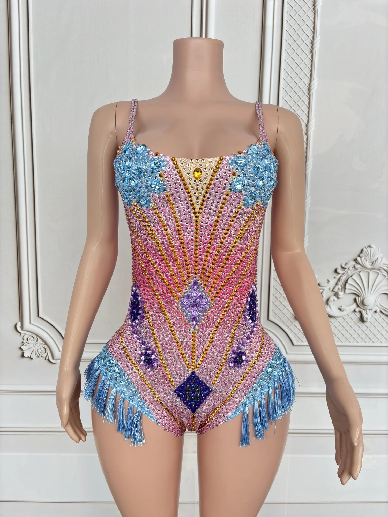 Sexy Stage Rhinestone Bodysuit Gogo Dancer Costume Birthday Nightclub Bar Club Dancewear Sexy Fringe Party Rave Outfit