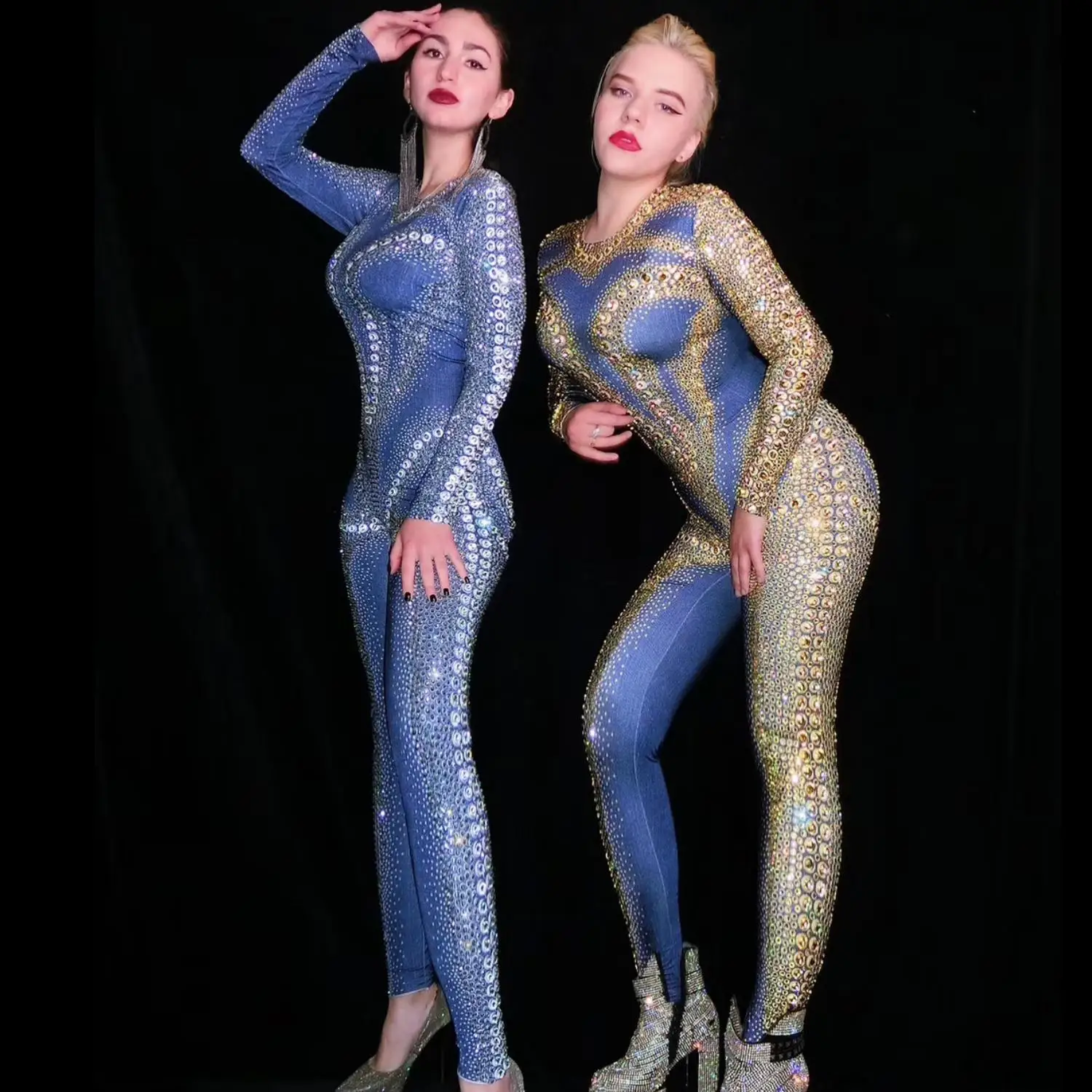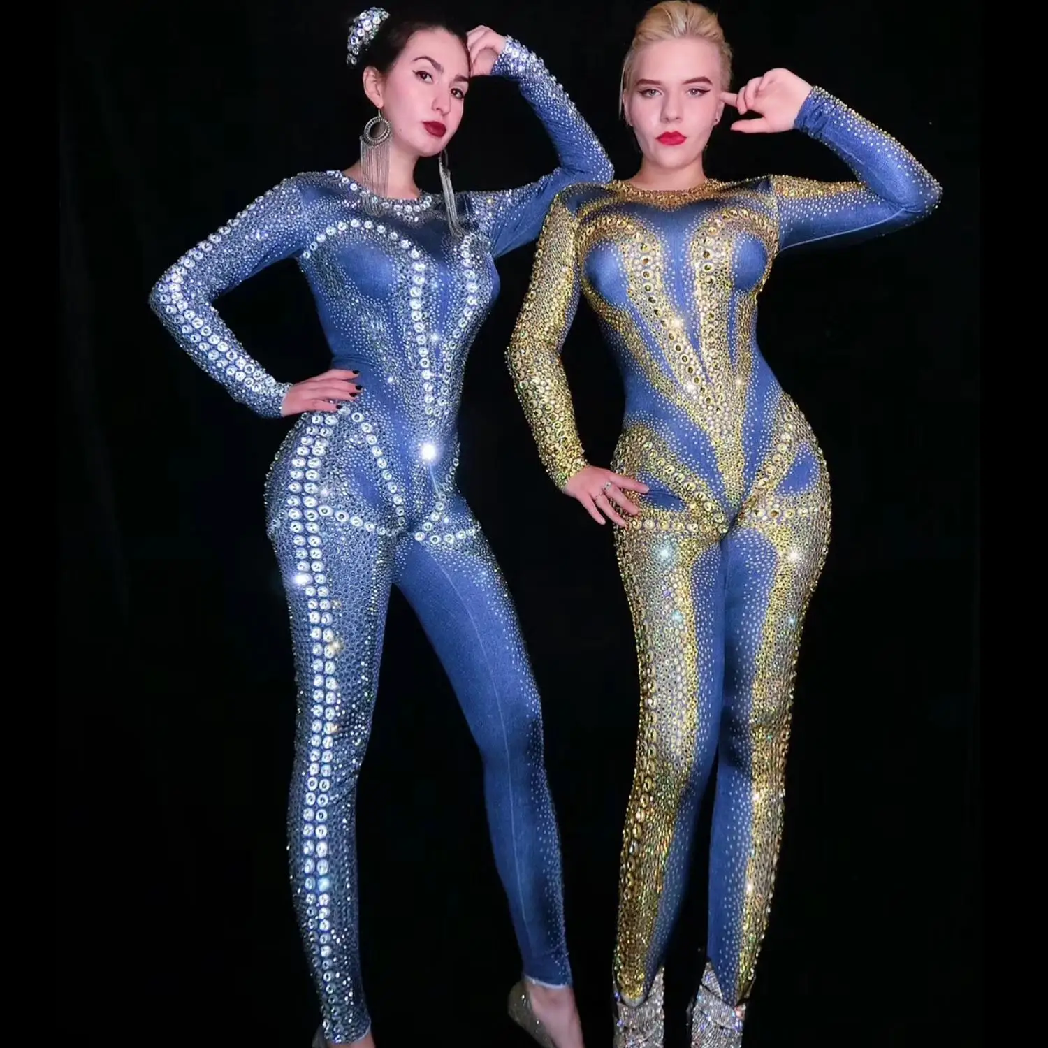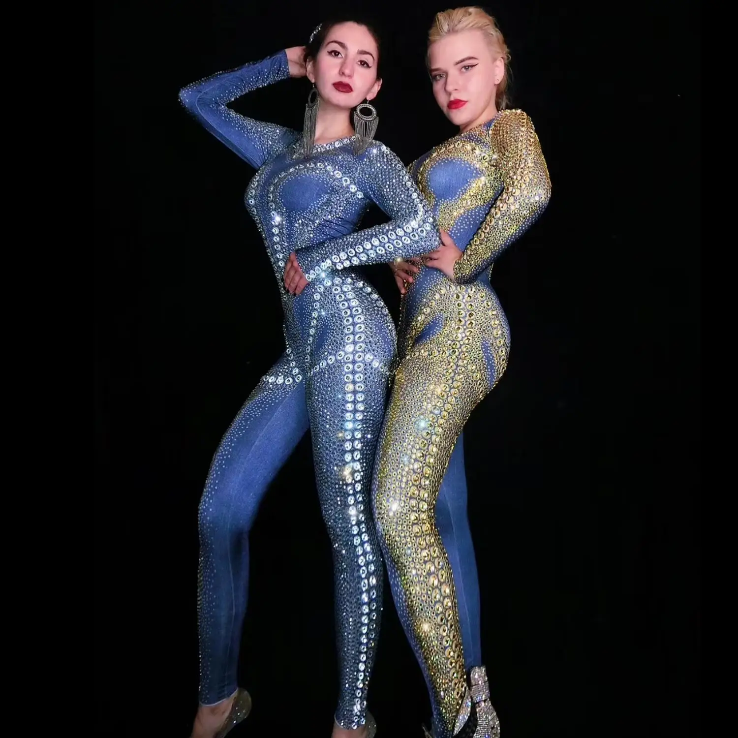 Sexy Stage Rhinestones Jumpsuit Women Evening Celebrate Outfit Nightclub Birthday Singer Stage Performance Dance Costume Niuzai