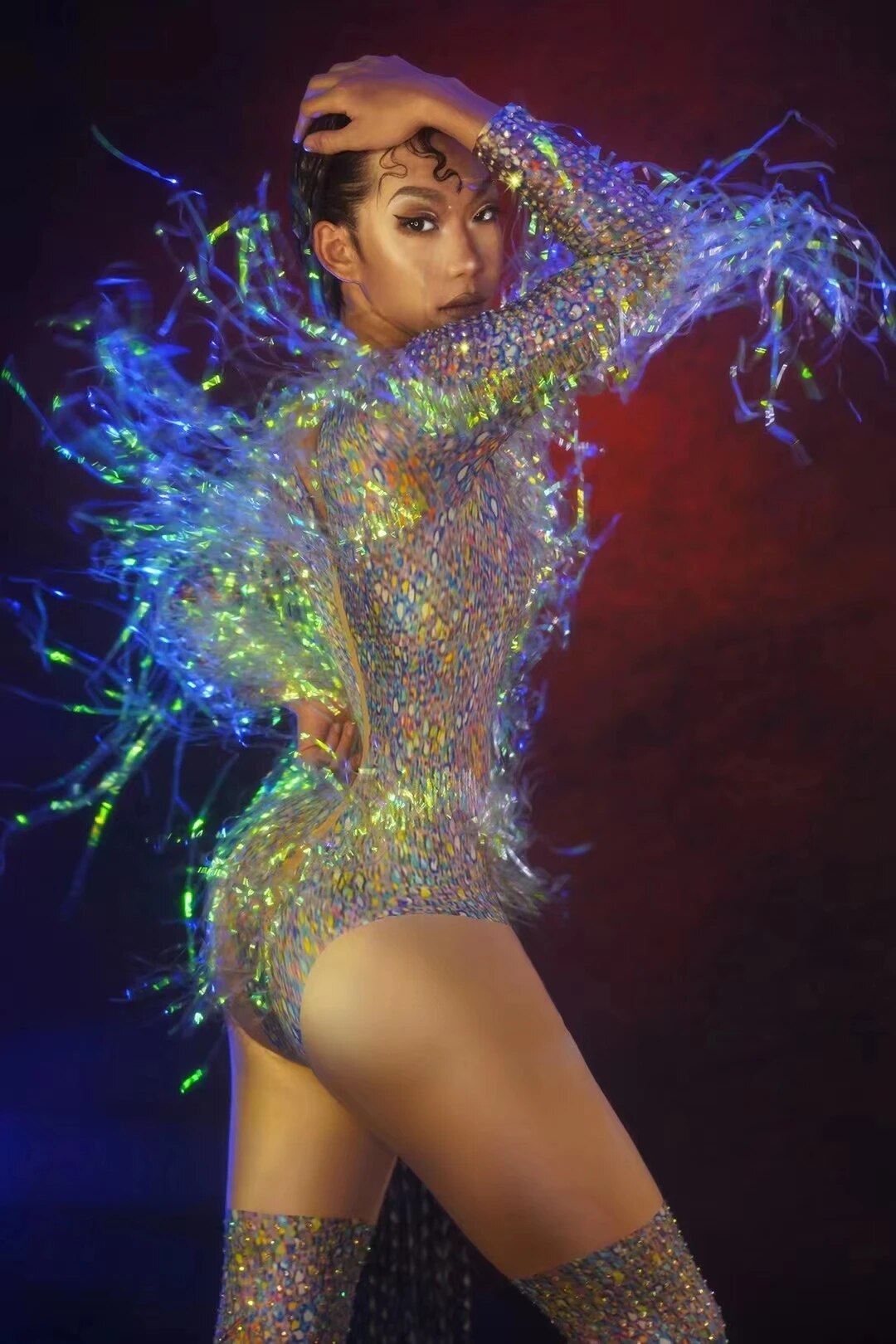 Sexy Stage Wear Crystals Spandex TasseJumpsuit for Women Nightclub BirthdavCelebrate Party Outfit Performance DanceCostume