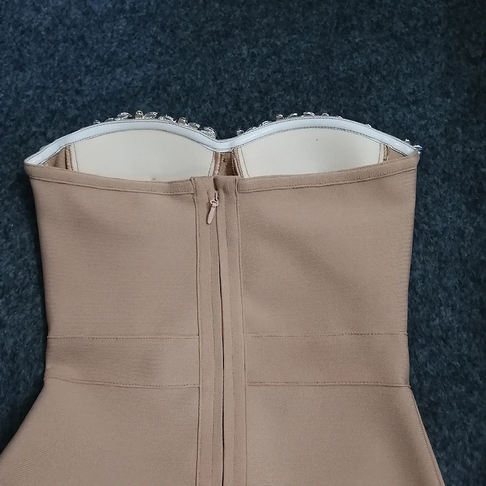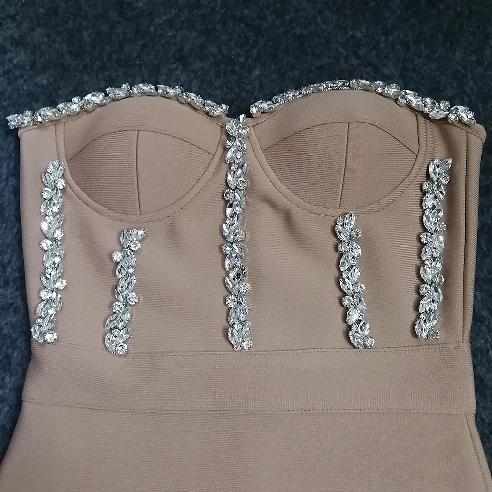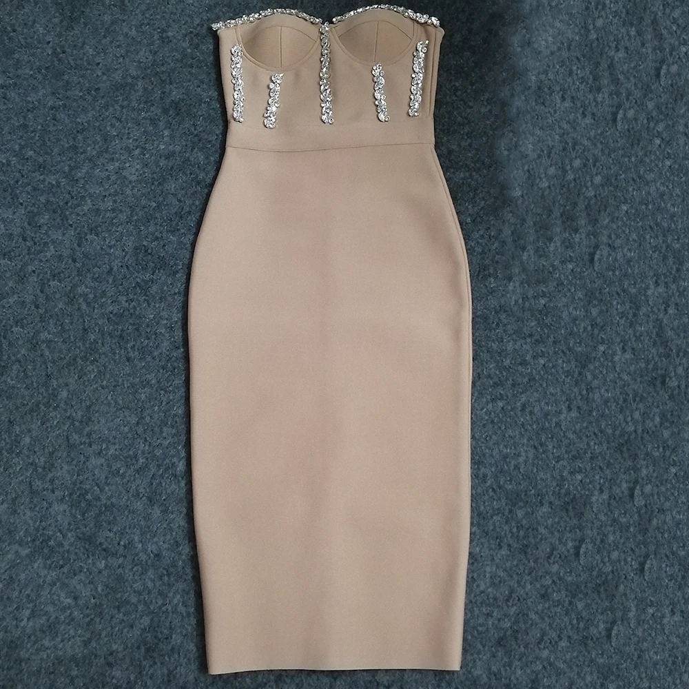 Sexy Strapless Women Dress Bandage Bodycon Elegant Beading Party Evening Club Midi Dresses Summer Autumn Clothes