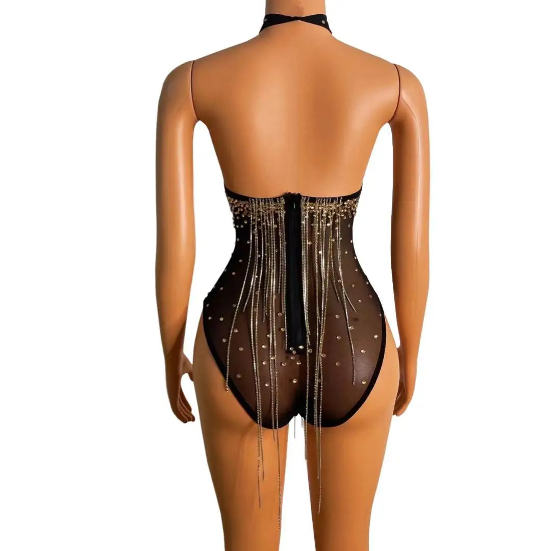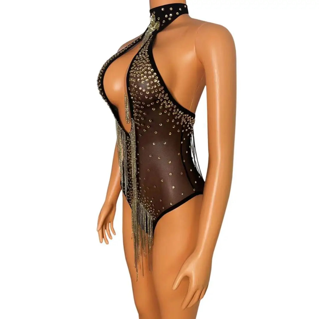 Sexy Tassel Hollow Out Rhinestones Bodysuit Women Singer Host Nightclub Bar Stage Wear Evening Party Performance Clothing
