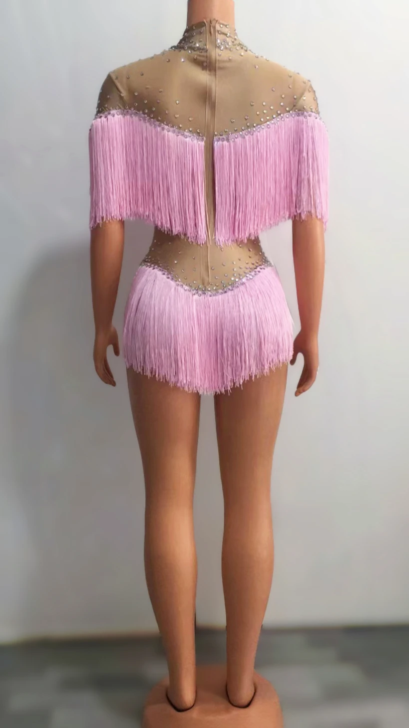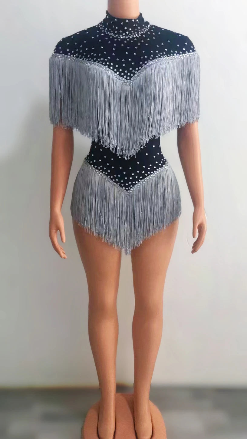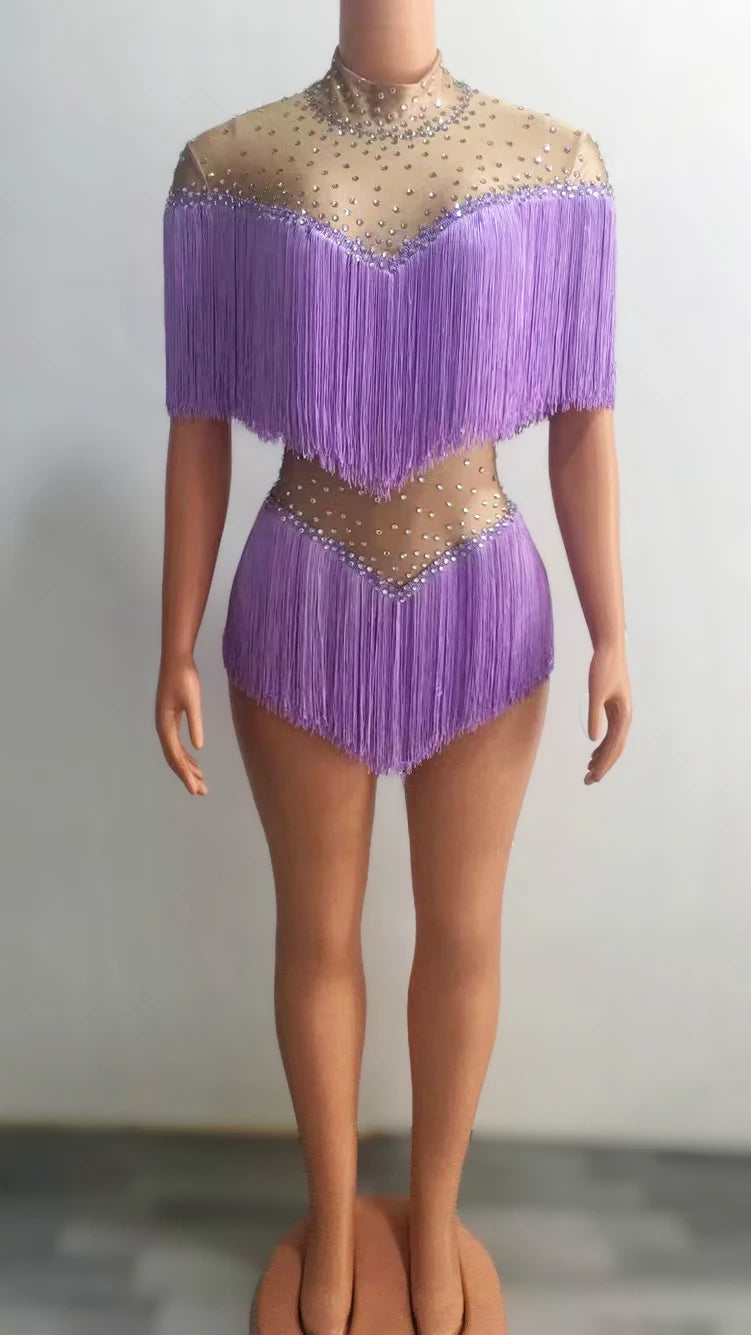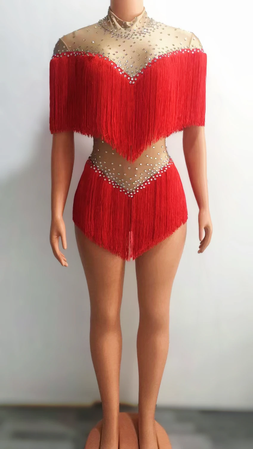 Sexy Tassels 7 Colors Fringes Latin Dance Leotard Outfit Birthday Celebrate Costume Performance Bodysuit Costume