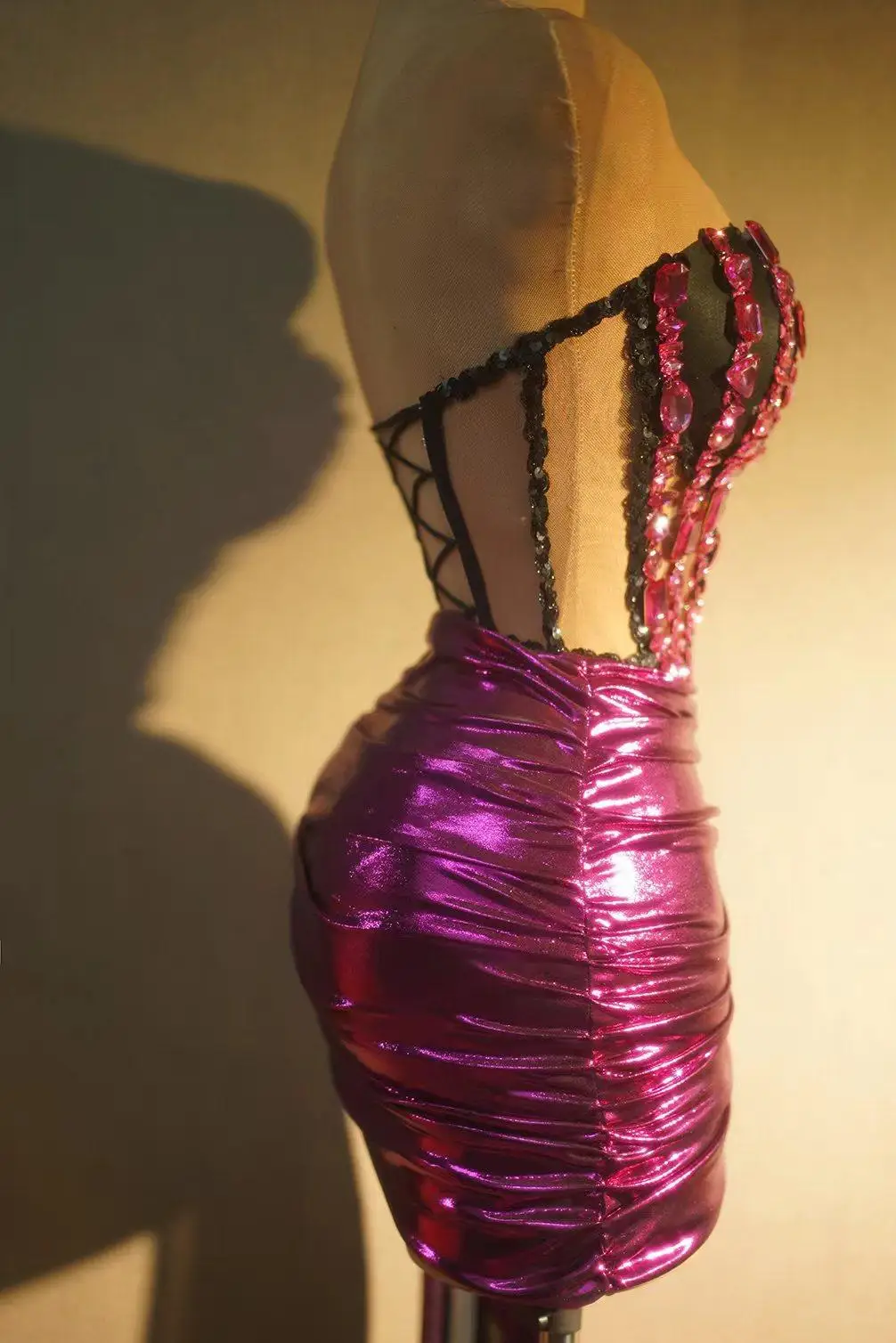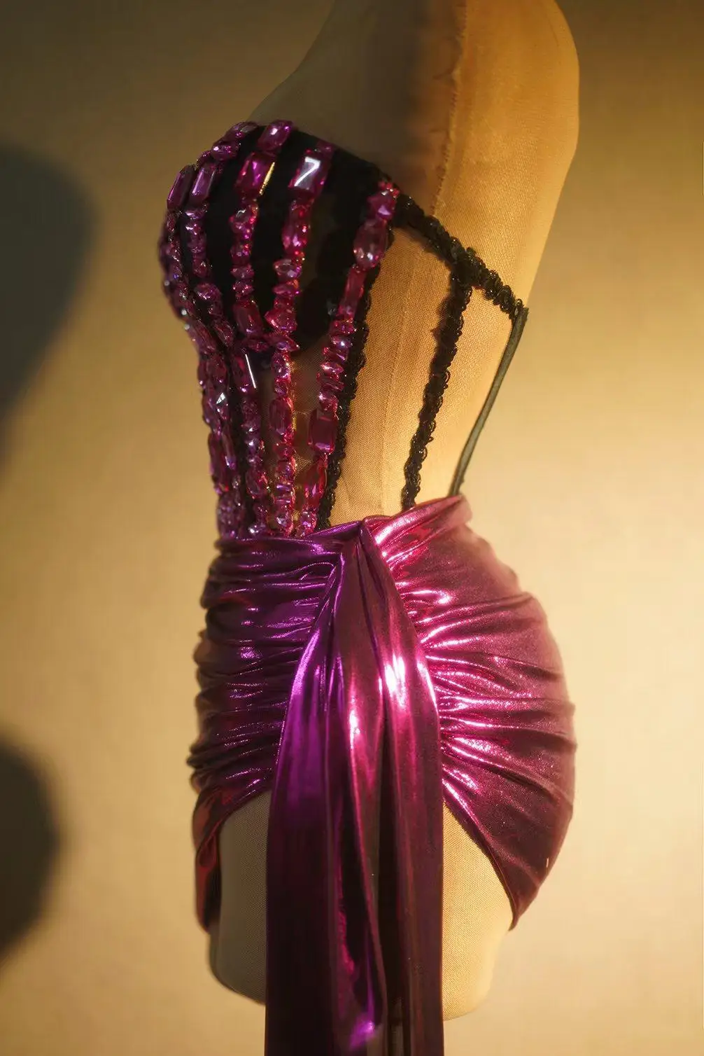 Sexy Tube Bandage Short Dress for Women Crystal 2 piece Set Party Evening Prom Celebrate Birthday Photography Dress Guojiang
