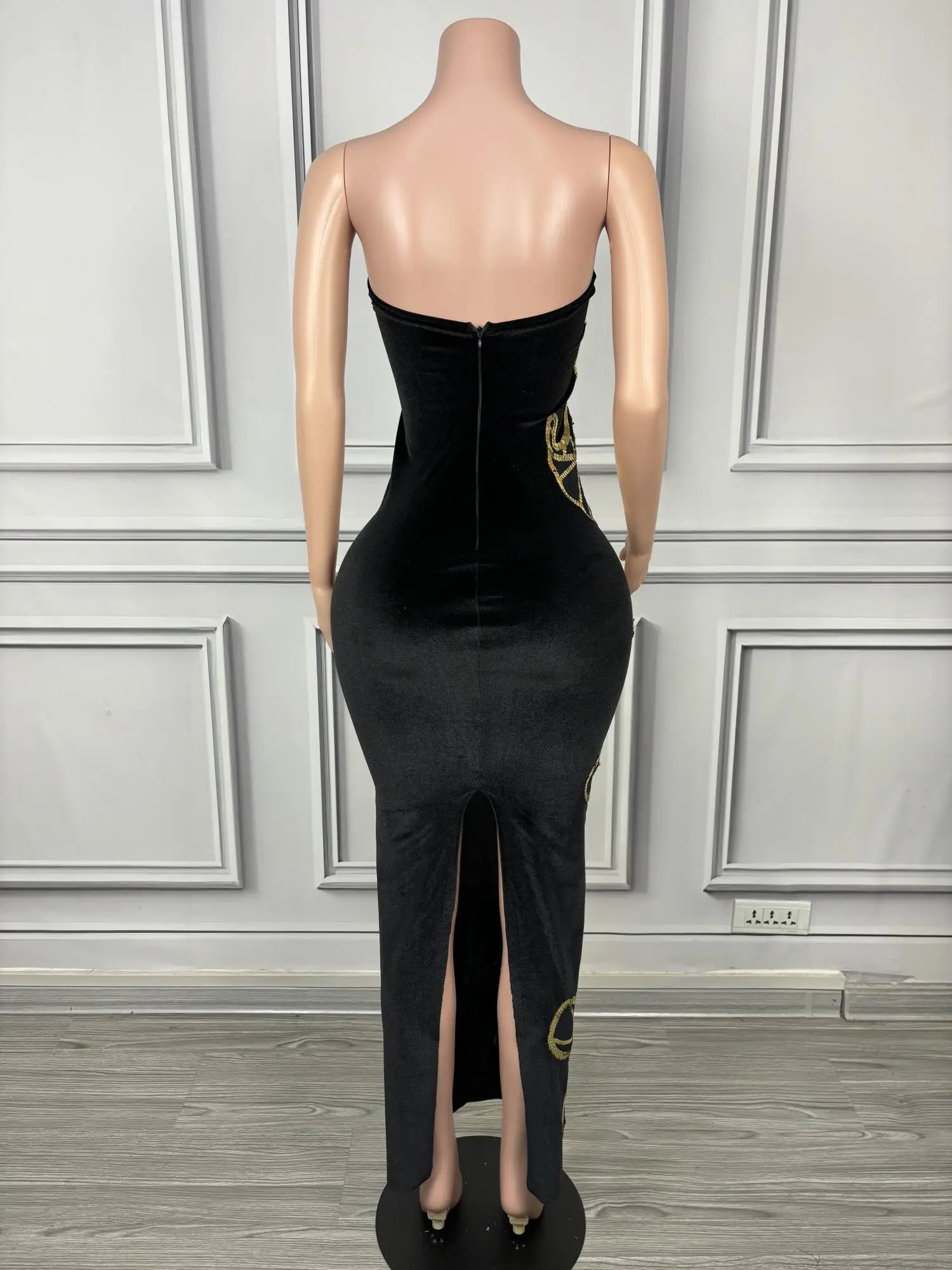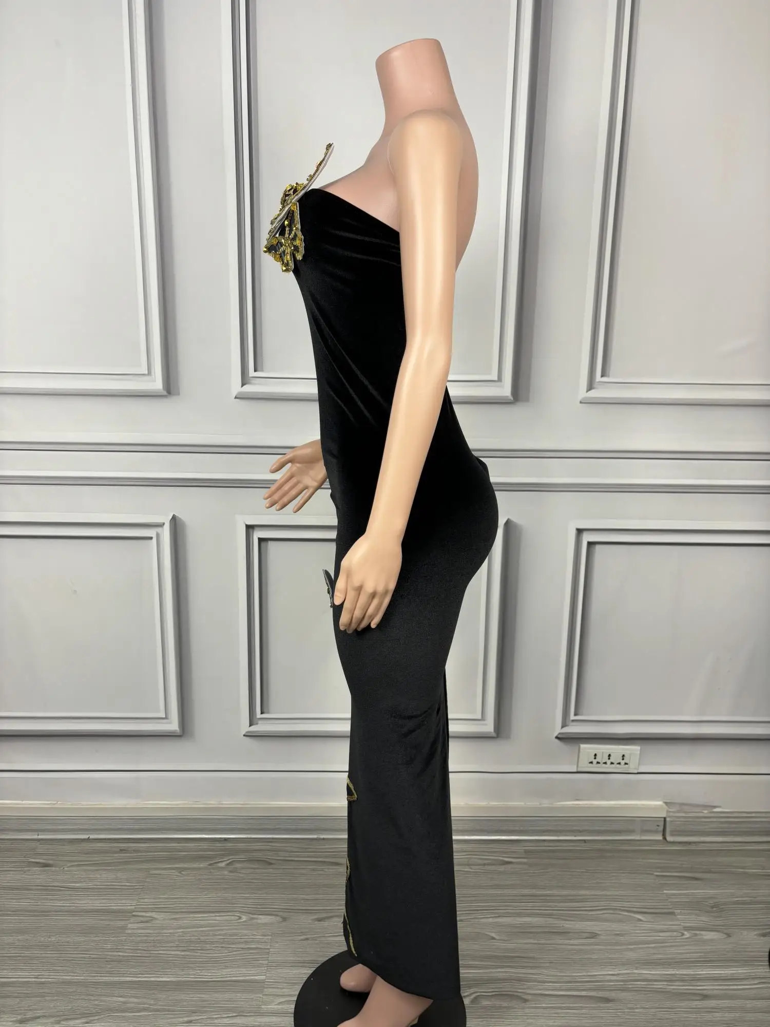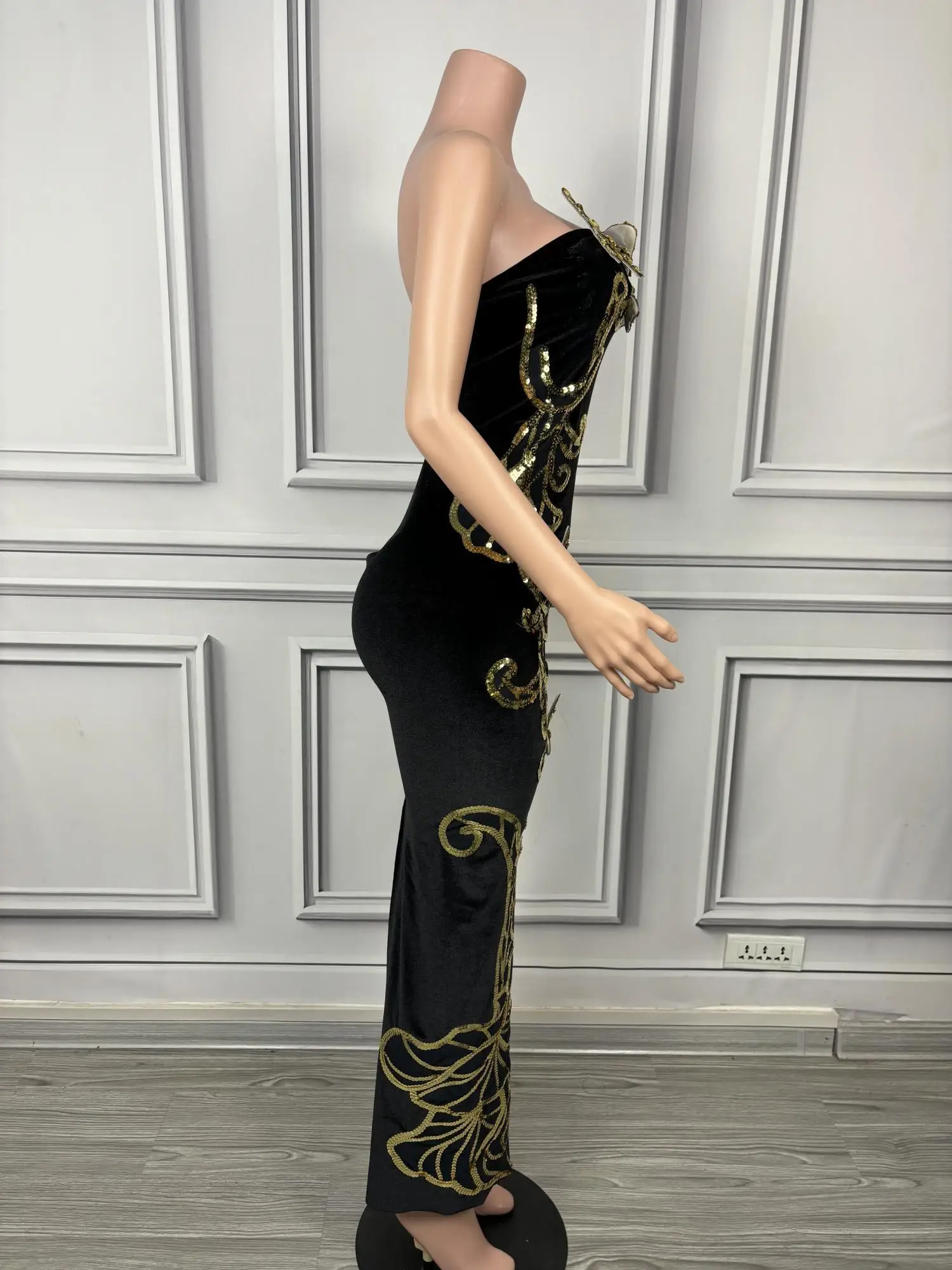 Sexy Velour Sheath Dress Sequine Butterfly Appliques Strapless Evening Party Dresses Nightclub Singer Stage Wear Sironghudie