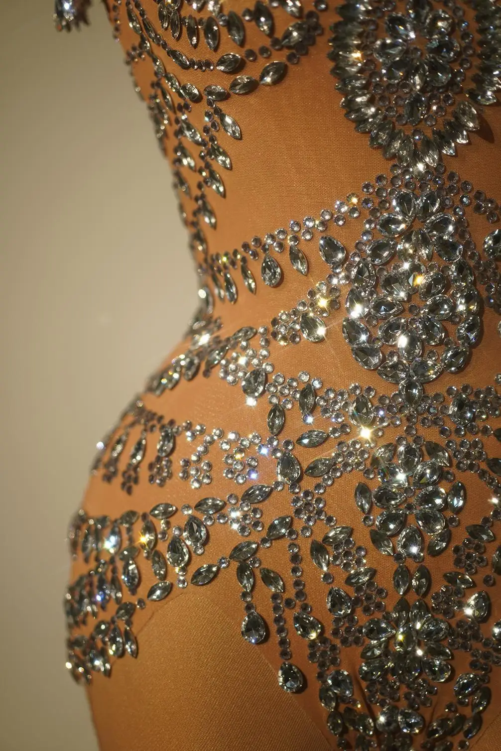 Sexy Women See Through Crystal Bodysuits Club Birthday Leotard Dancer Playsuit Performance Wear Mesh Rhinestone Jumpsuit Wuniang