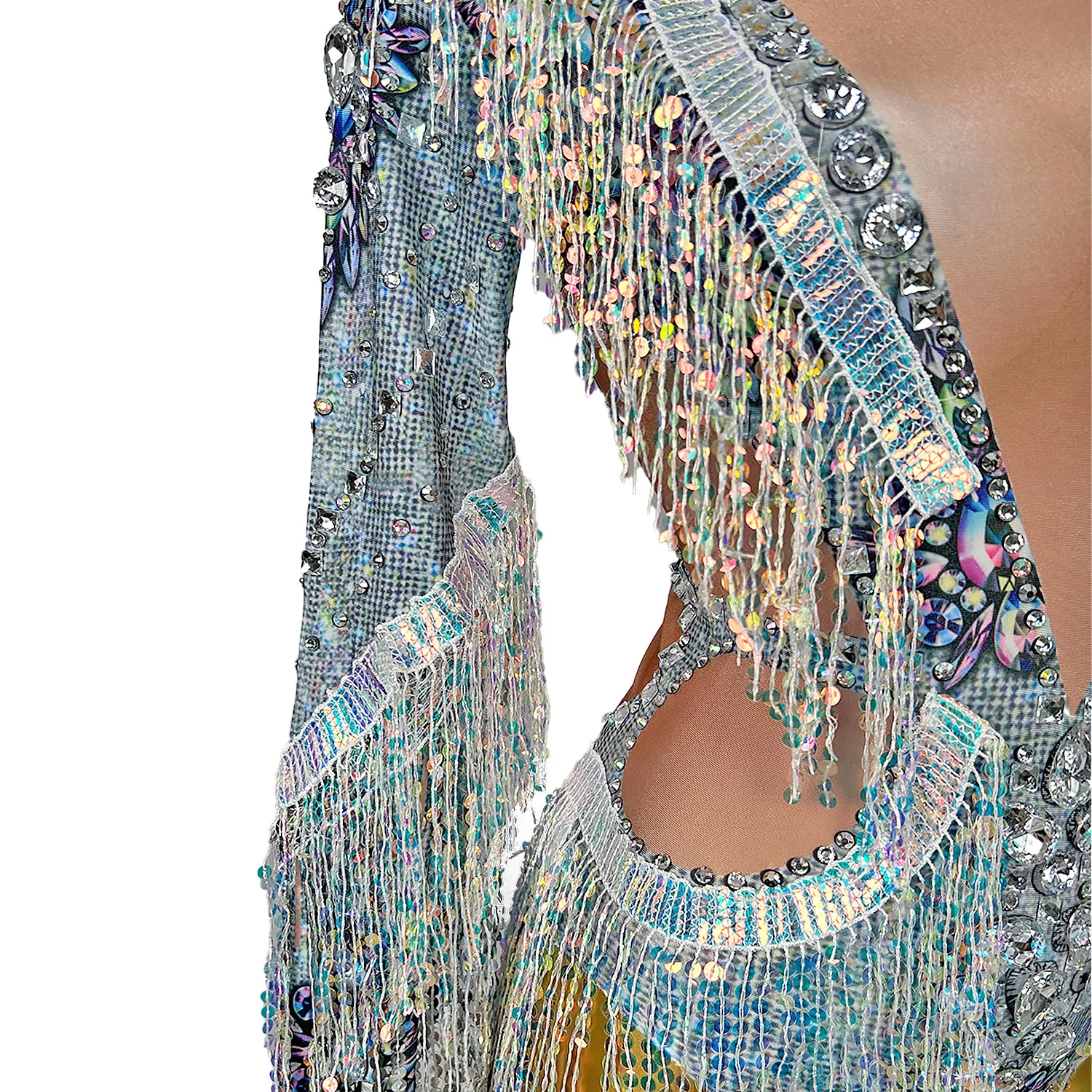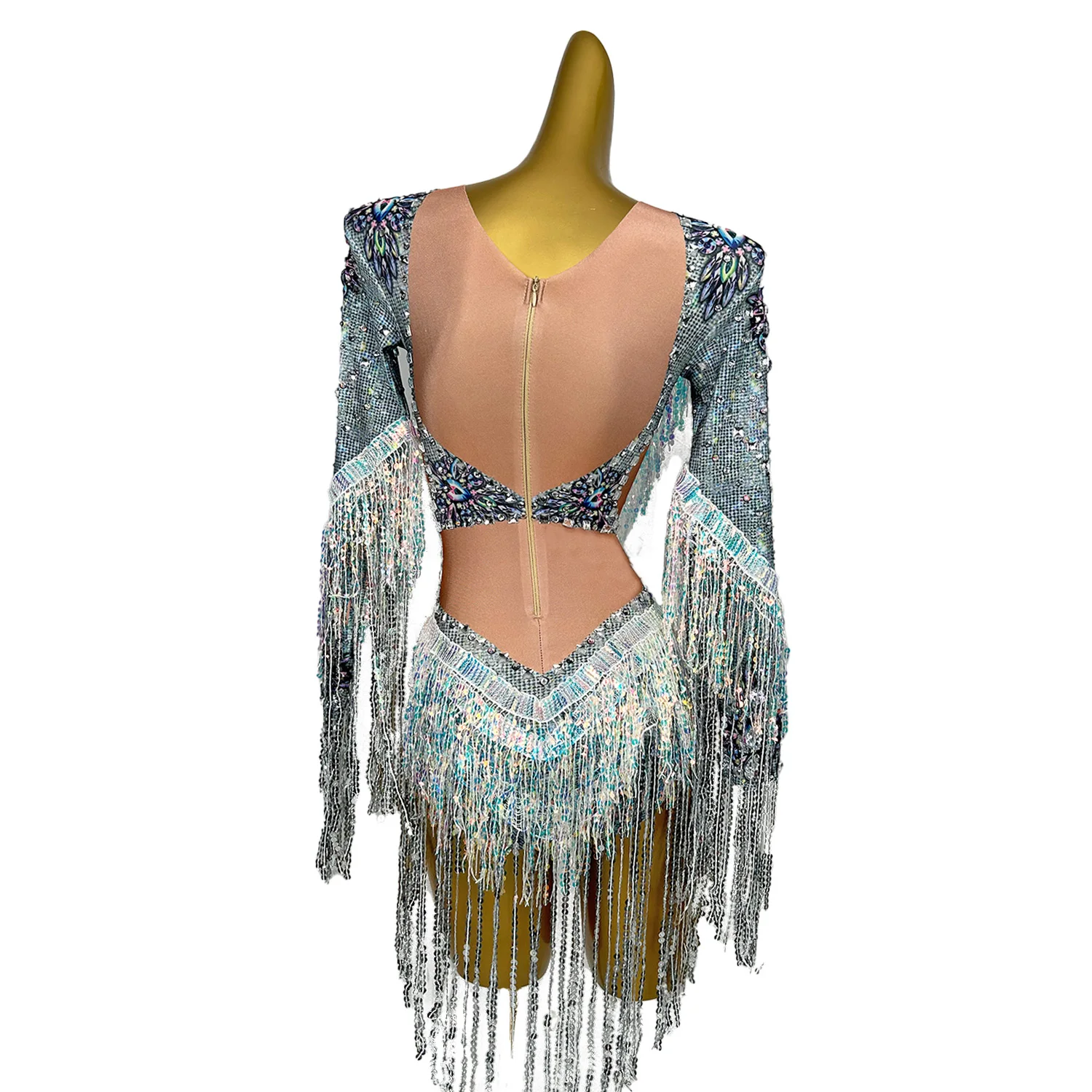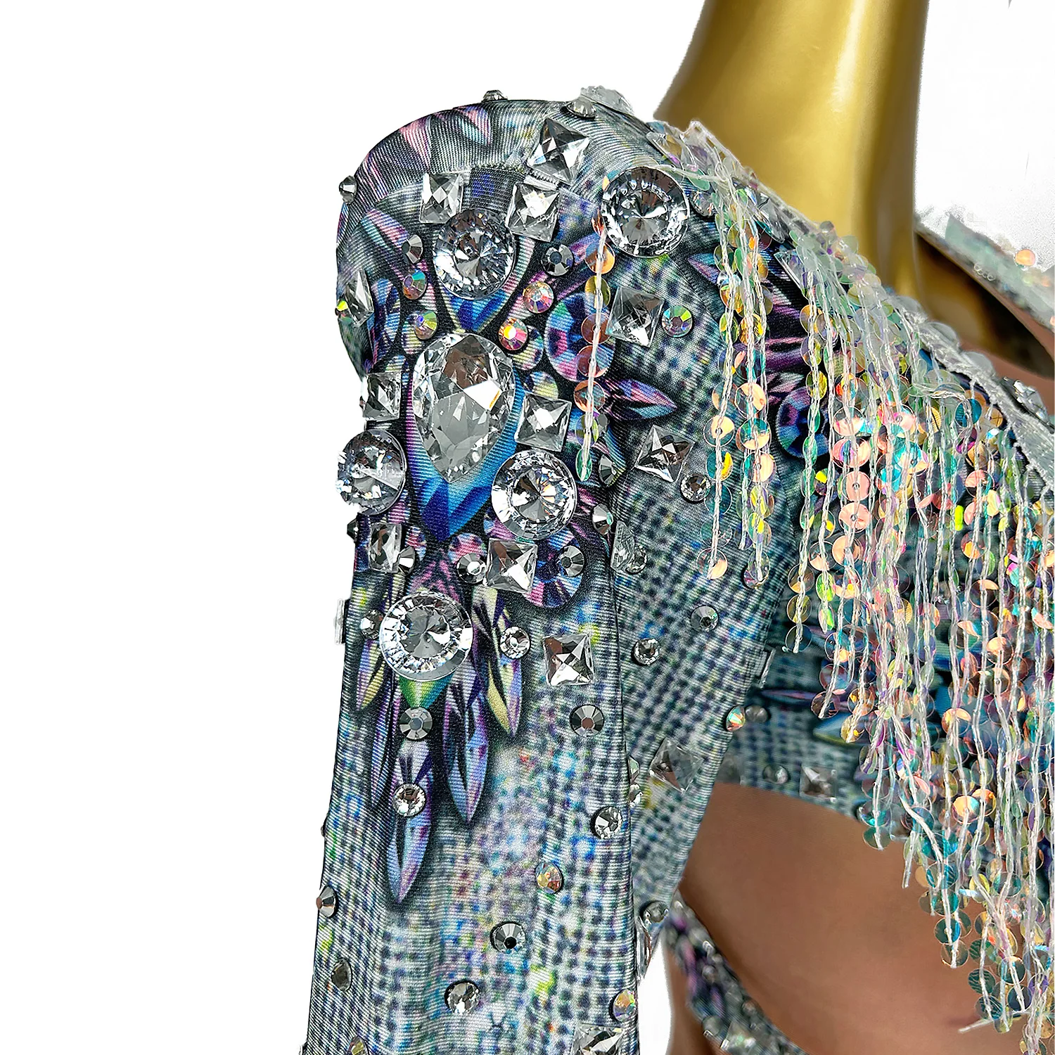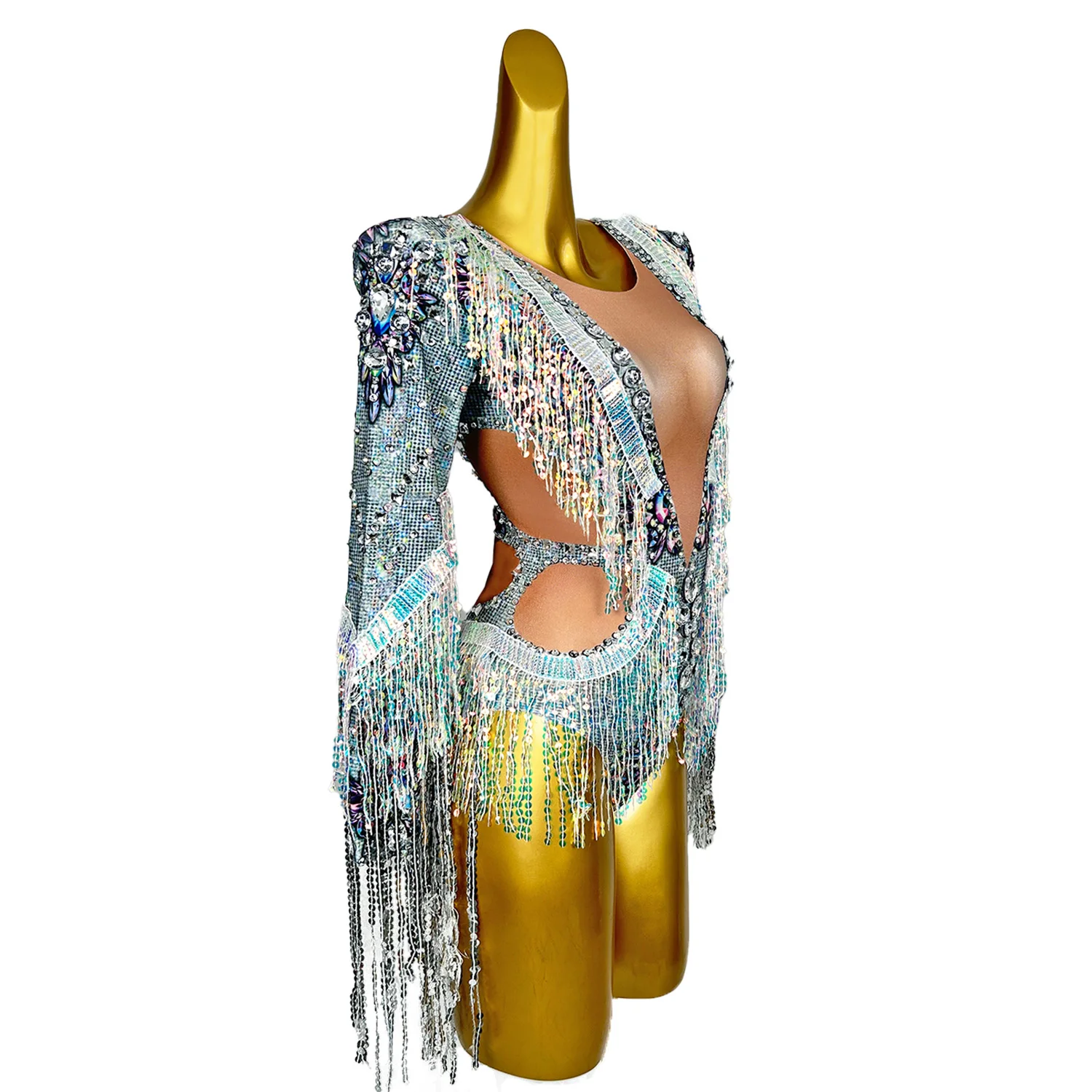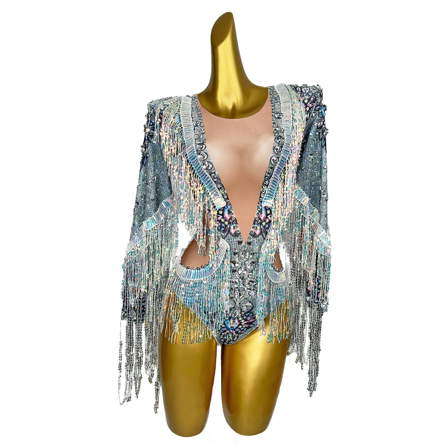 Shining Diamond Sequins Tassel Skinny Bodysuit for Women Nightclub Party Jumpsuit Singer Costume Evening Prom Outfit Qiaqia