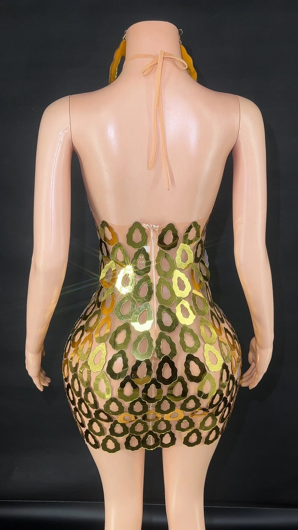 Shining Gold Mirrors Celebrate Evening Party Birthday Dress Women Sexy Mesh See Through Show Dance Short Dress Singer Stage Wear