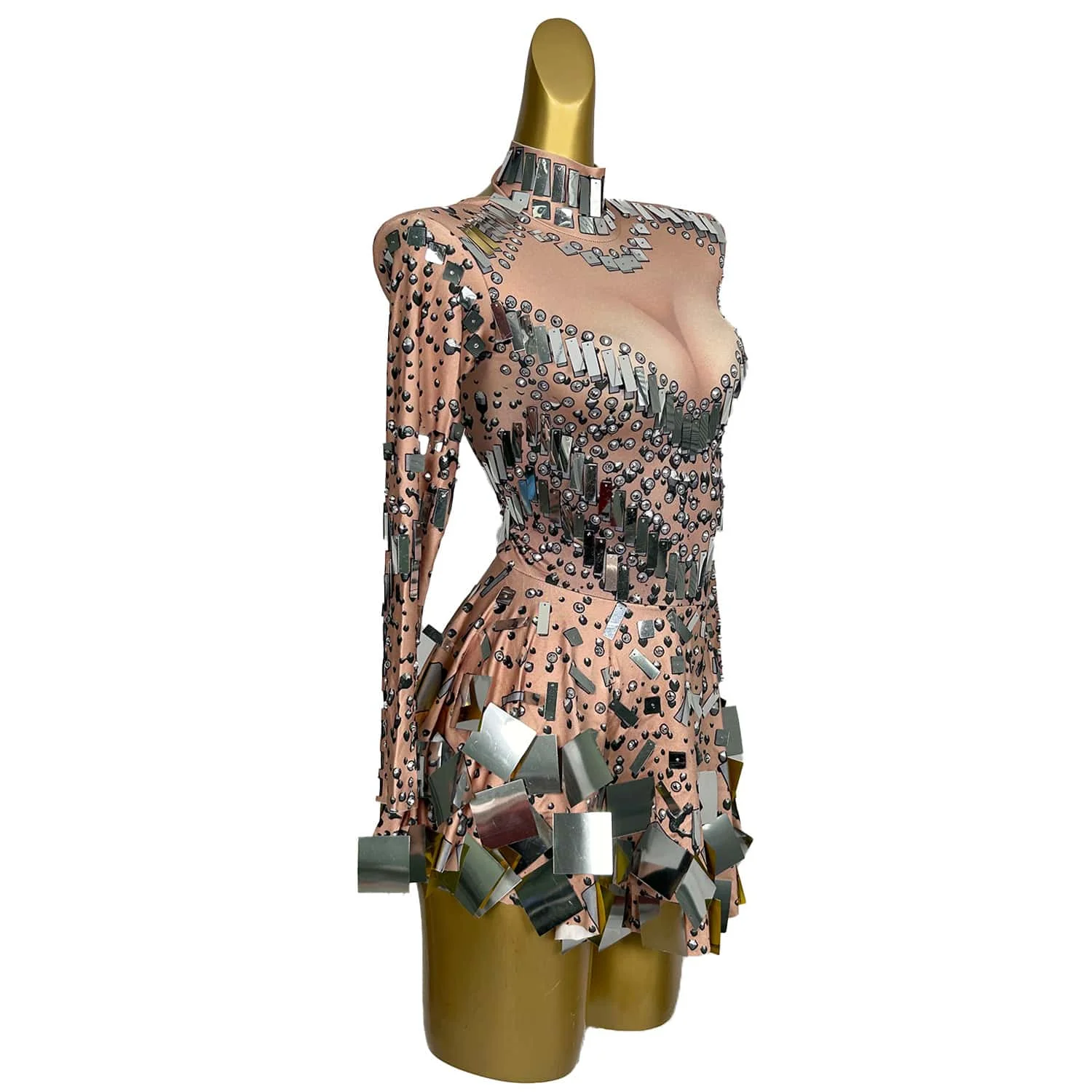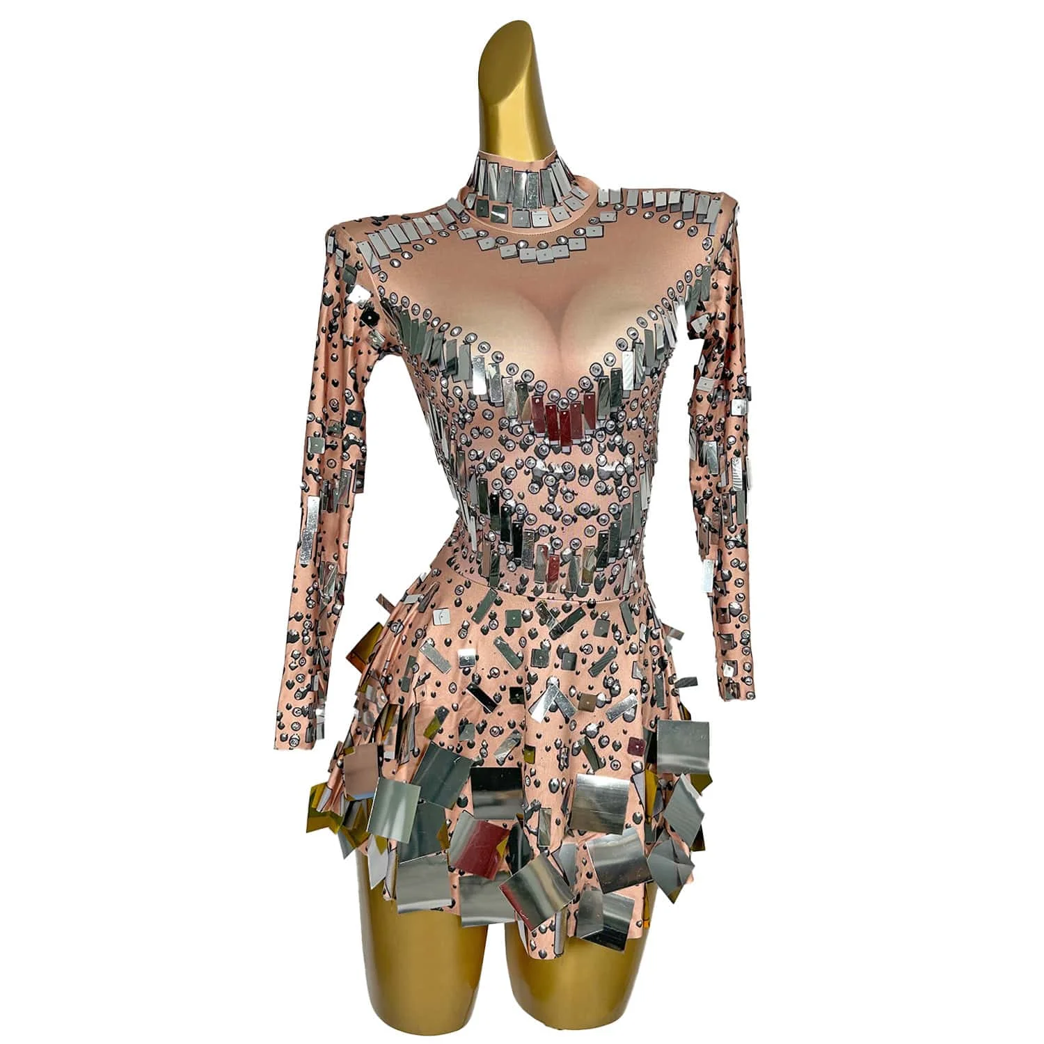 Shining Mirrors Dress Female Singer Dancer Bright Bodysuit Costume One-piece Nightclub Dress Outfit Party Dresses Liangpianqun