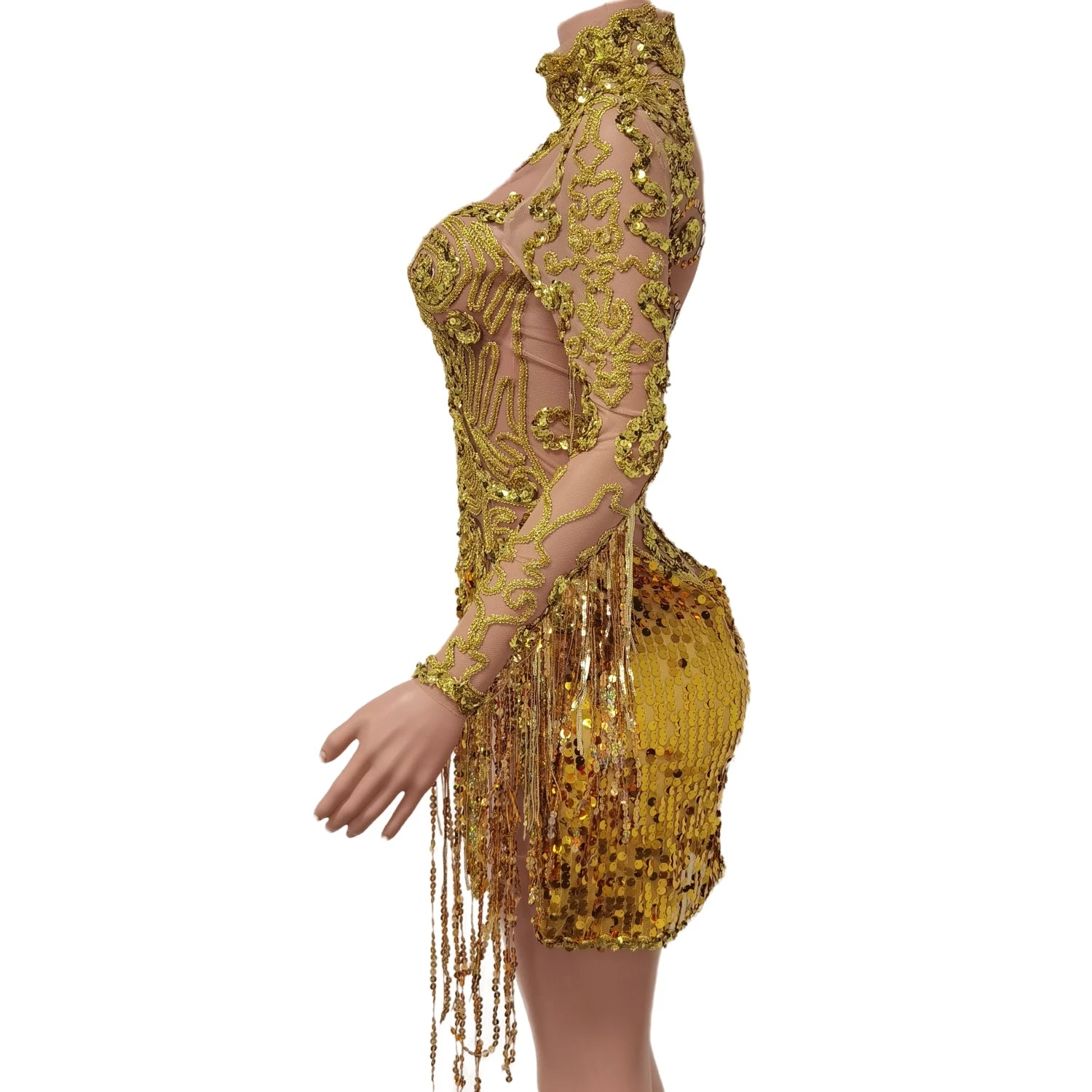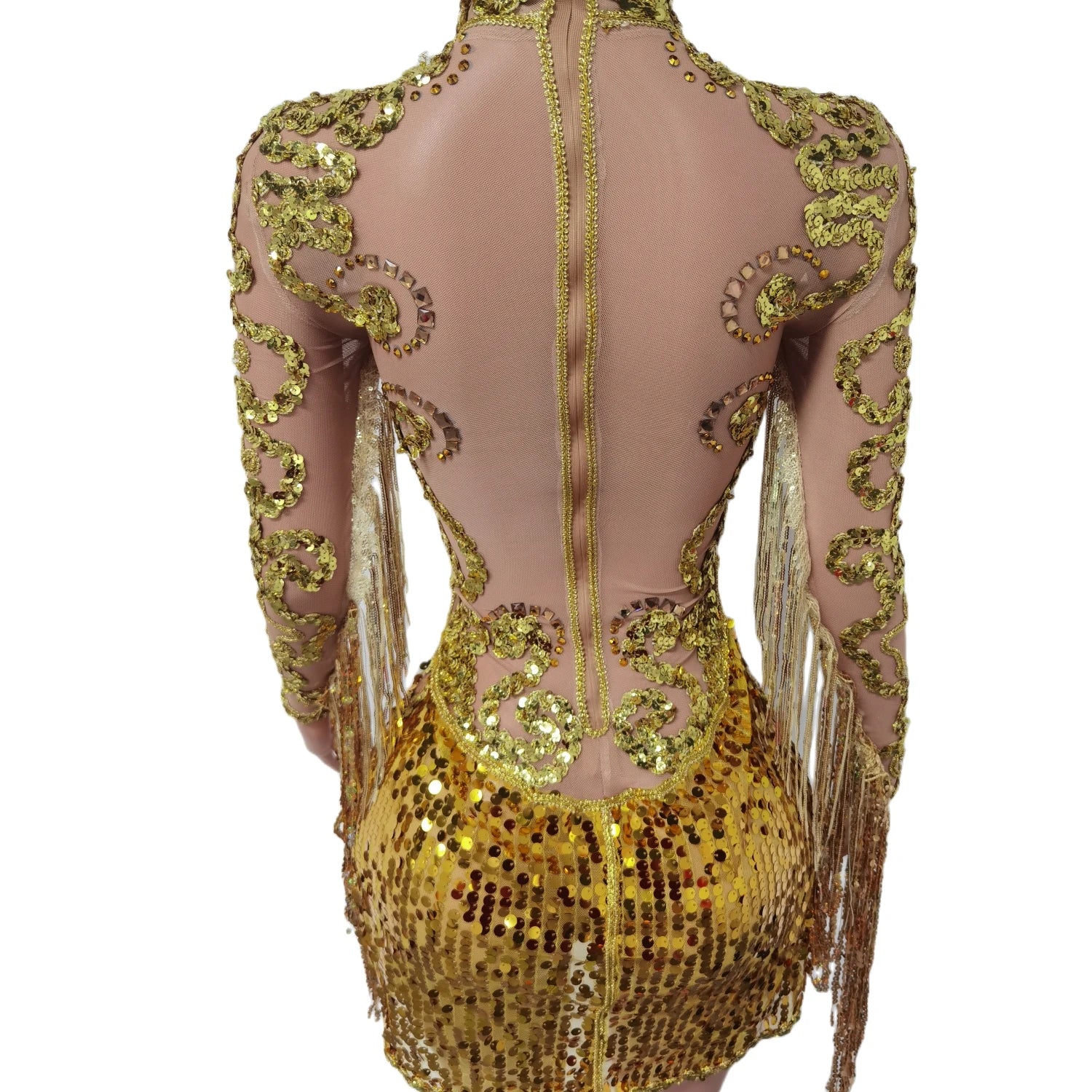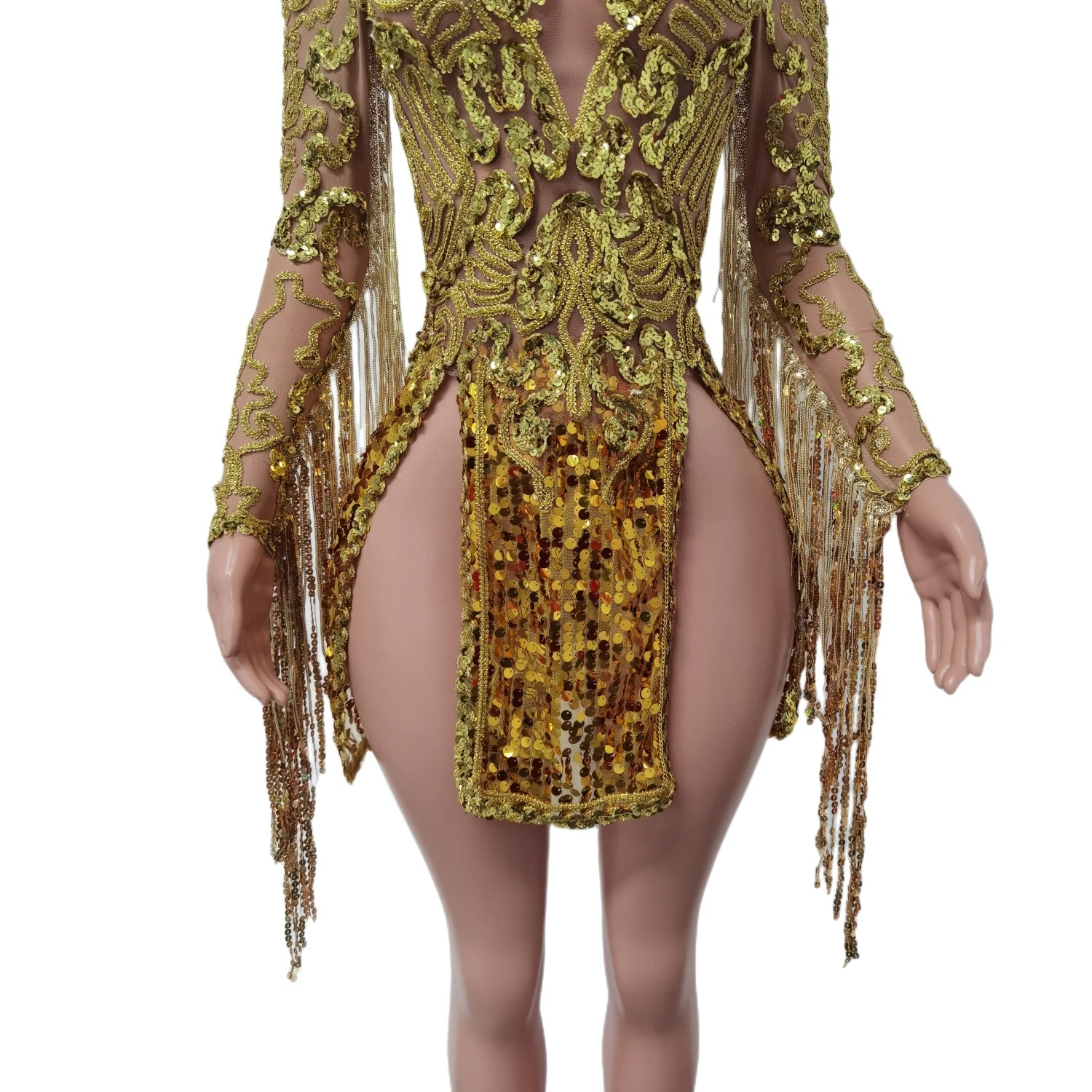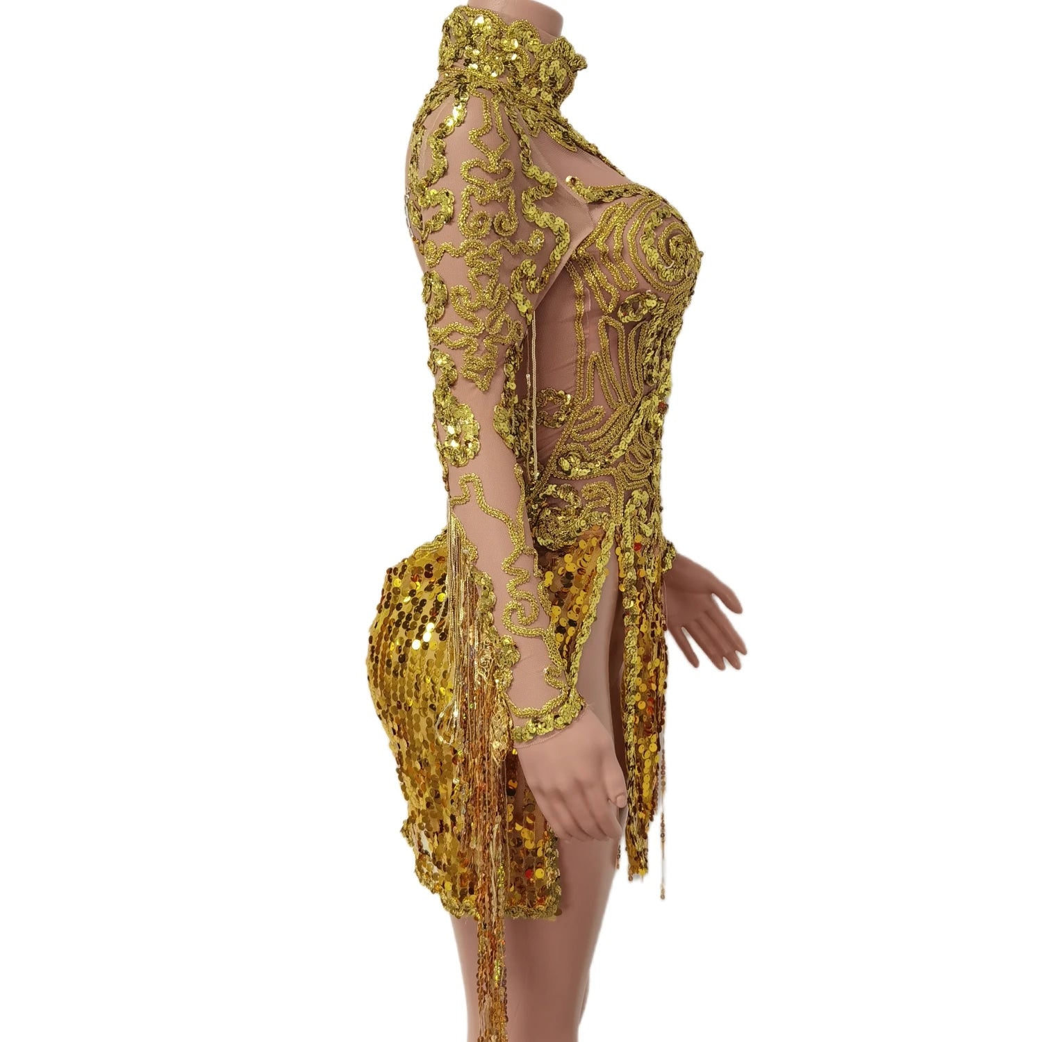 Step into motion and light with thisShining Sequins Tassels Split Short Dress, designed for nightclub singers, dancers, performers, and anyone who needs a dramatic, camera‑ready outfit that moves and sparkles. The design pairs high-impact sequin coverage with playful tassels and a bold leg split to create a look that reads beautifully on stage and in photos.