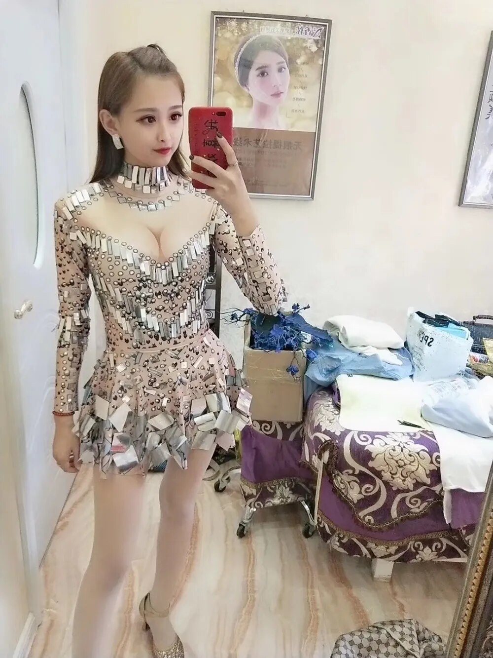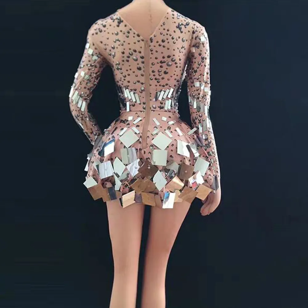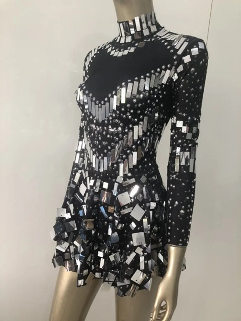 Sparkly Silver Sequins Bodysuit Dress Rhinestone Costume