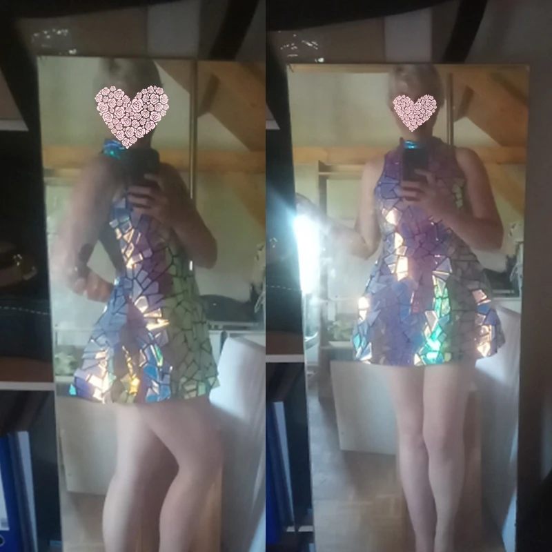 Shiny Laser Mirror Nightclub Dress Sleeveless Bar Dj Gogo Dancer Singer Stage Costume Women Evening Birthday Outfit