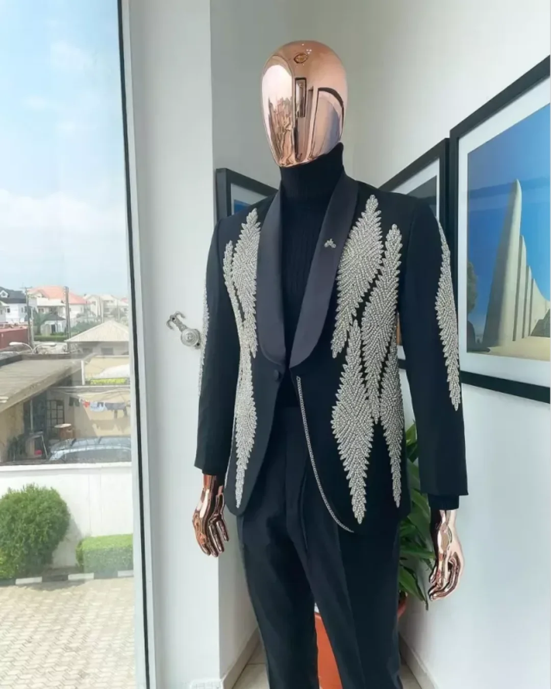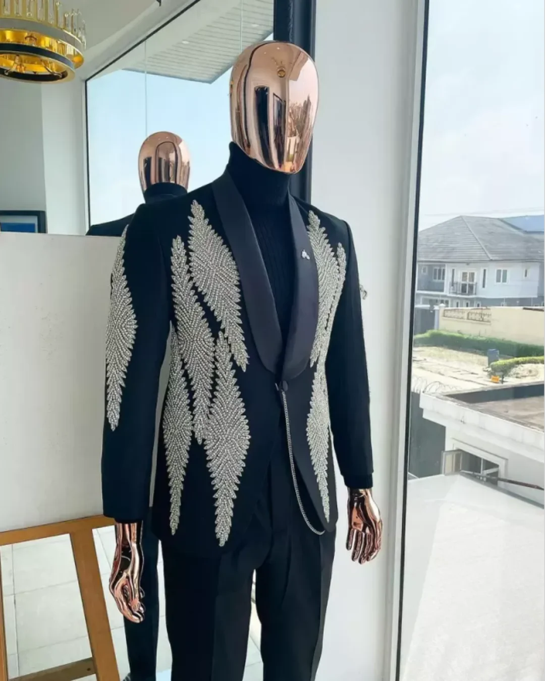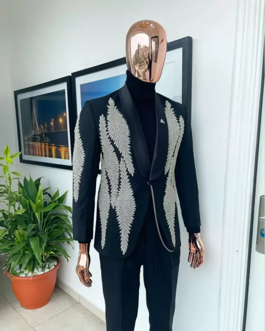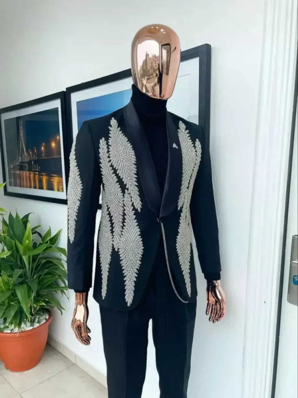 Shiny Men's Suits 2 Pieces Blazer Single Breasted Beads Wedding Groom Tuxedos Business Prom Customized Trajes Para Hombre