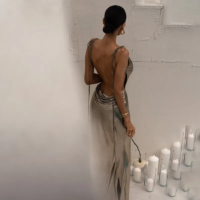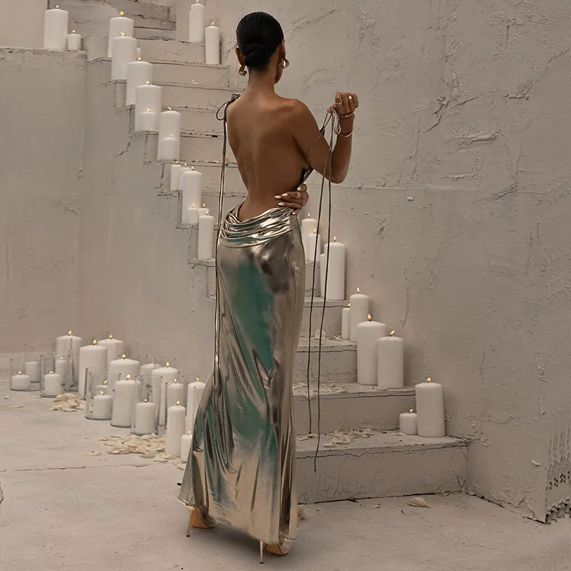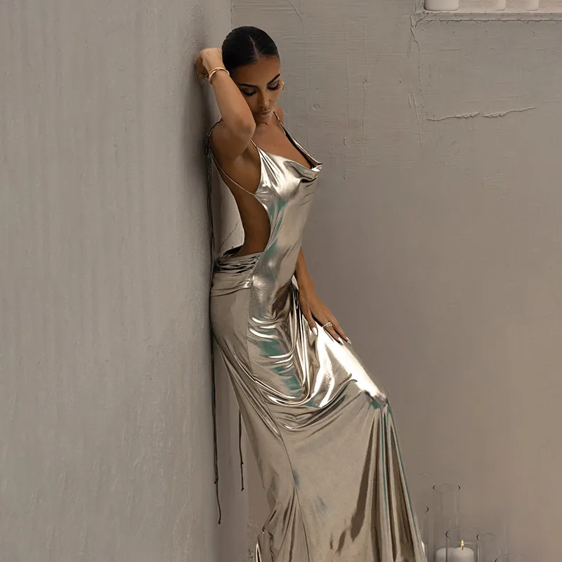 Shiny Sheath Long Prom Dress Summer Strap Sexy Backless Sleeveless Party Evening Gown Celebrity Cocktail Robe