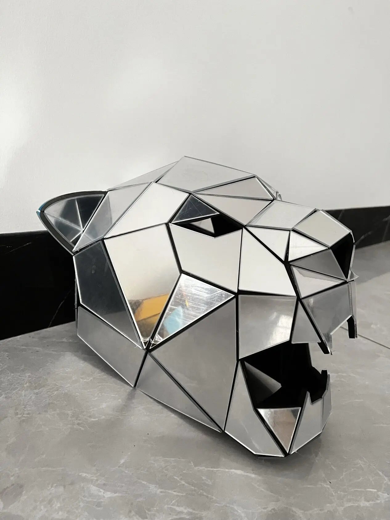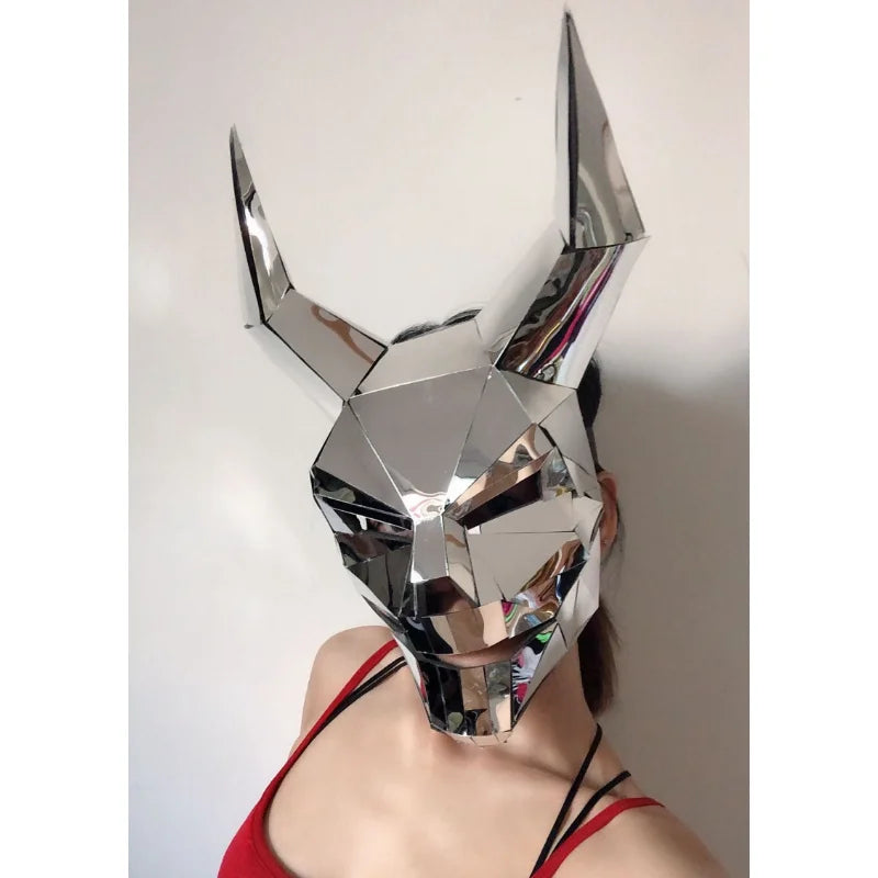 Elevate your festival look with this Silver Mirror 3D Horned Demon Mask, a striking and futuristic accessory that is sure to make you stand out in the crowd. This Cosplay Leopard Tiger Helmet combines elements of a horned demon and a fierce feline, creating a unique and eye-catching design that is perfect for music festivals, club dance parties, and DJ performances. The silver mirror finish adds a touch of glamour and mystery to the mask, reflecting light and creating a mesmerizing effect. Whether you're looking to unleash your wild side or simply want to make a bold statement, this Animal Headdress is the perfect choice for those who love to make a dramatic entrance. Channel your inner beast and command attention with this avant-garde mask that promises to add a touch of edge and sophistication to your festival ensemble.