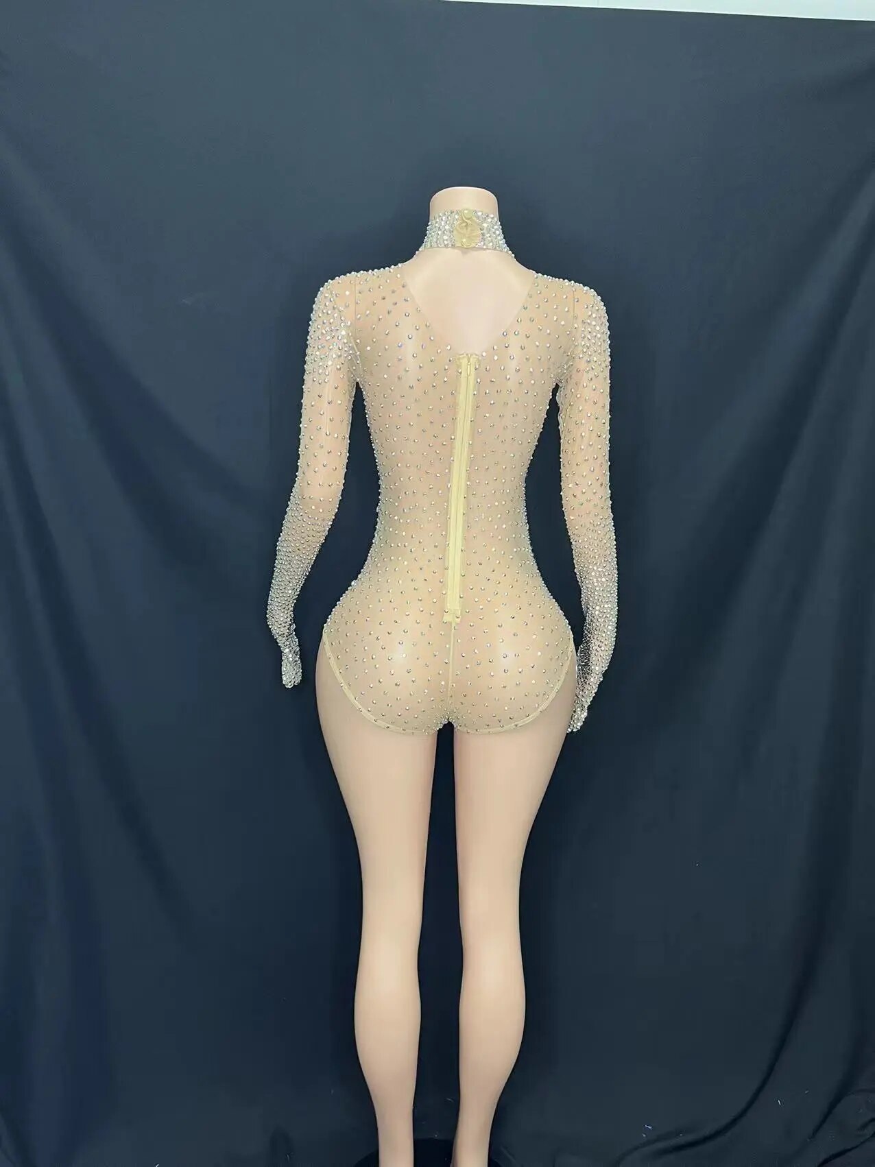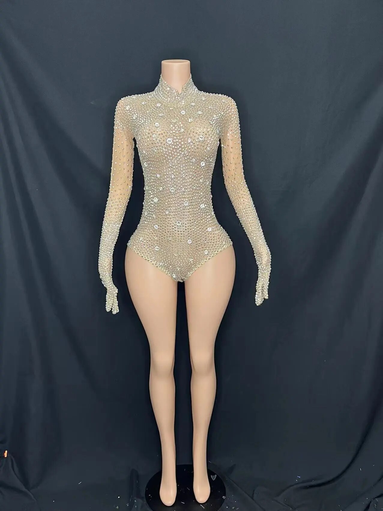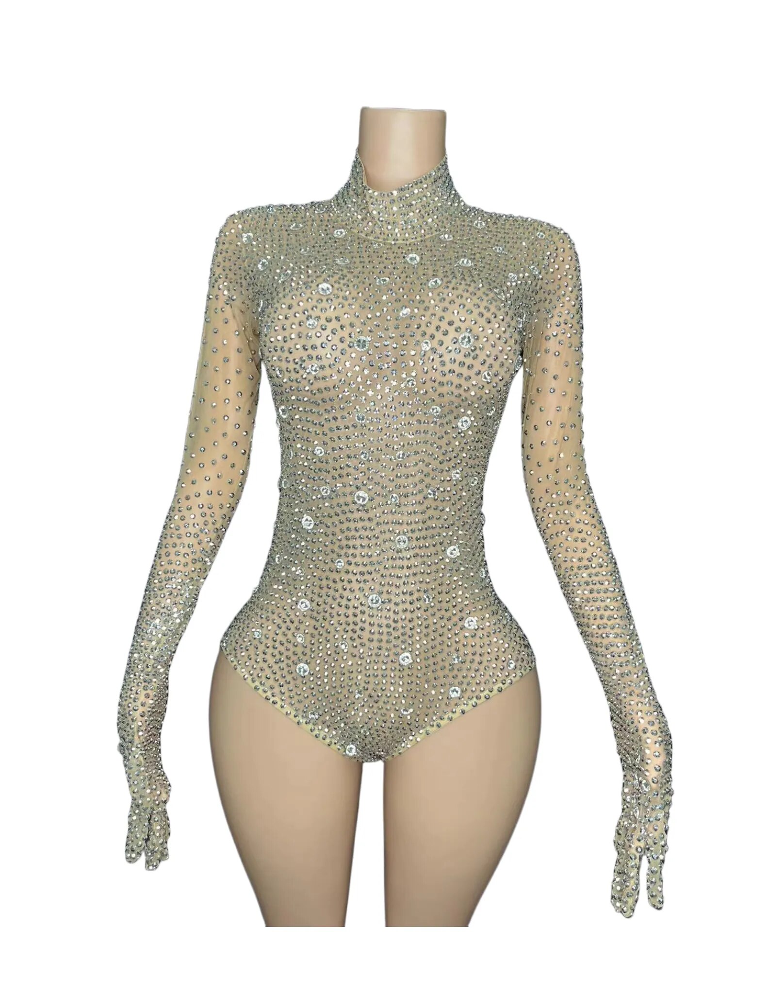 Silver Rhinestones Gloves Jumpsuit TransparentMesh Stones Bodysuit Pants Birthday CelebrateOutfit Evening Plus Size