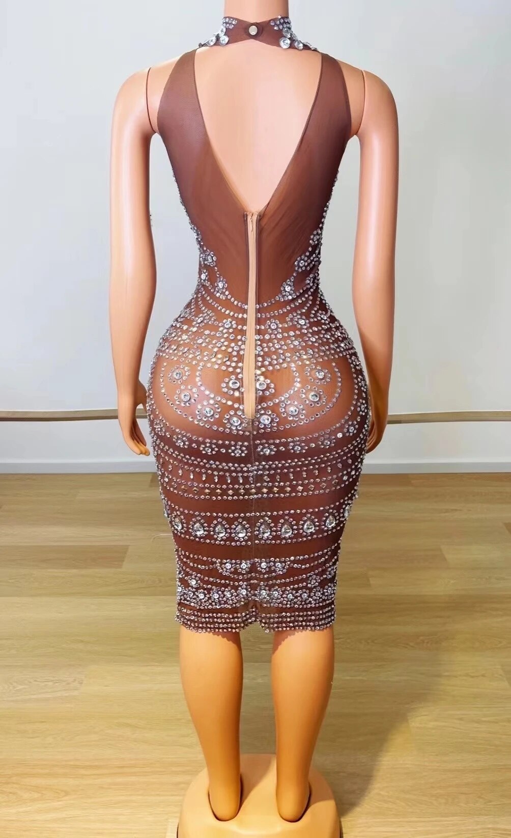 Singer Hosts Sexy And Translucent Mesh WaterDiamond Stretch Bag Buttocks Short Skirt DressPerformance Stage Woman